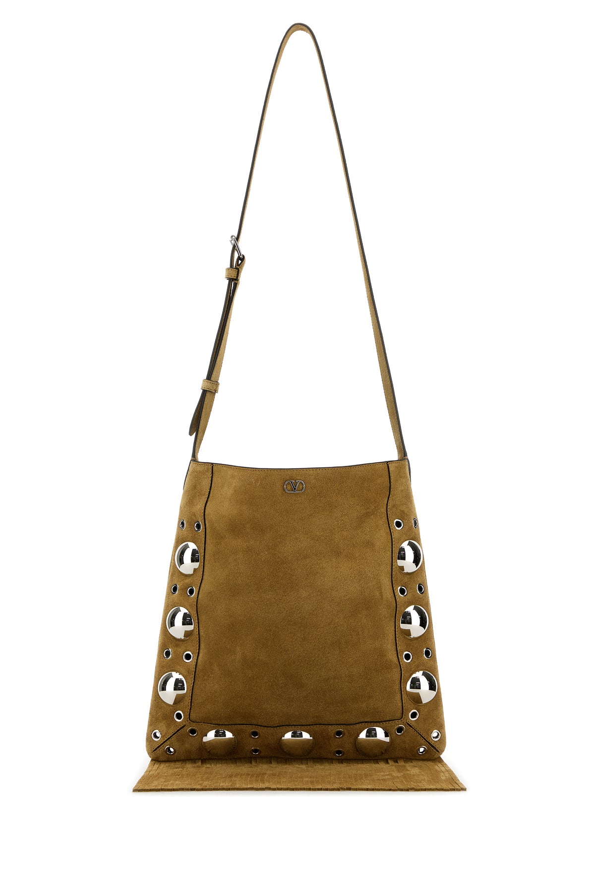 Crossbody bag realized in suede enriched by VLogo Signature metal detail at the top.