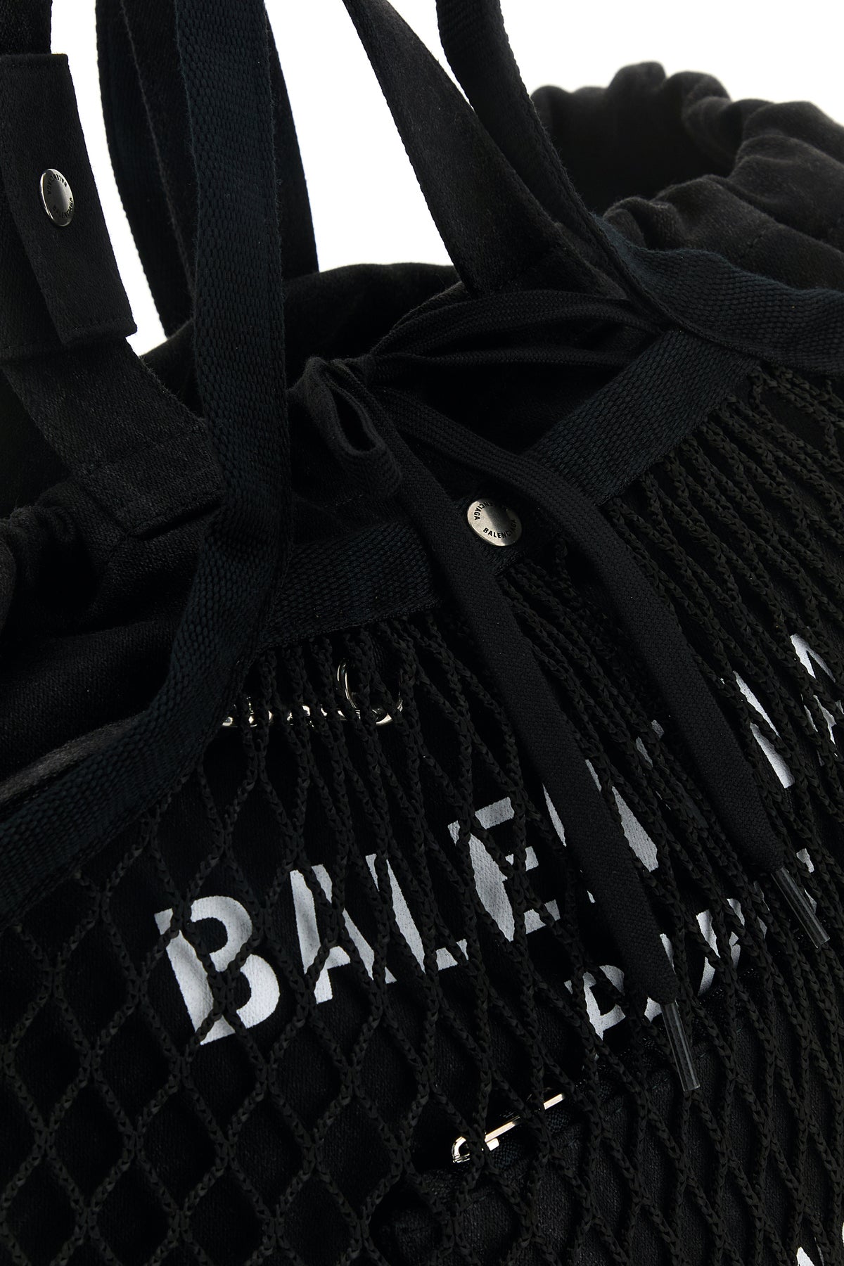 Shopping bag realized in pure cotton canvas and mesh characterized by contrasting Balenciaga Paris print at the front.