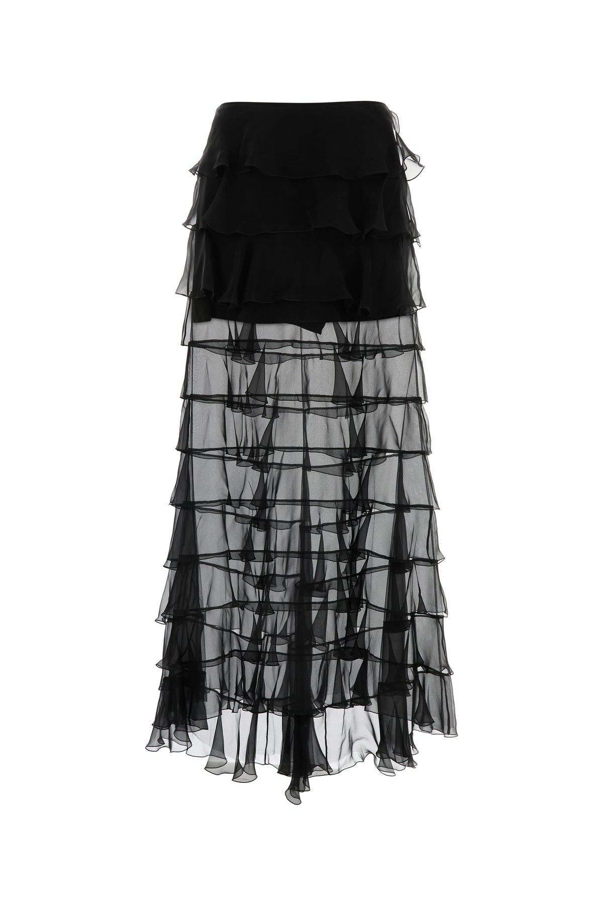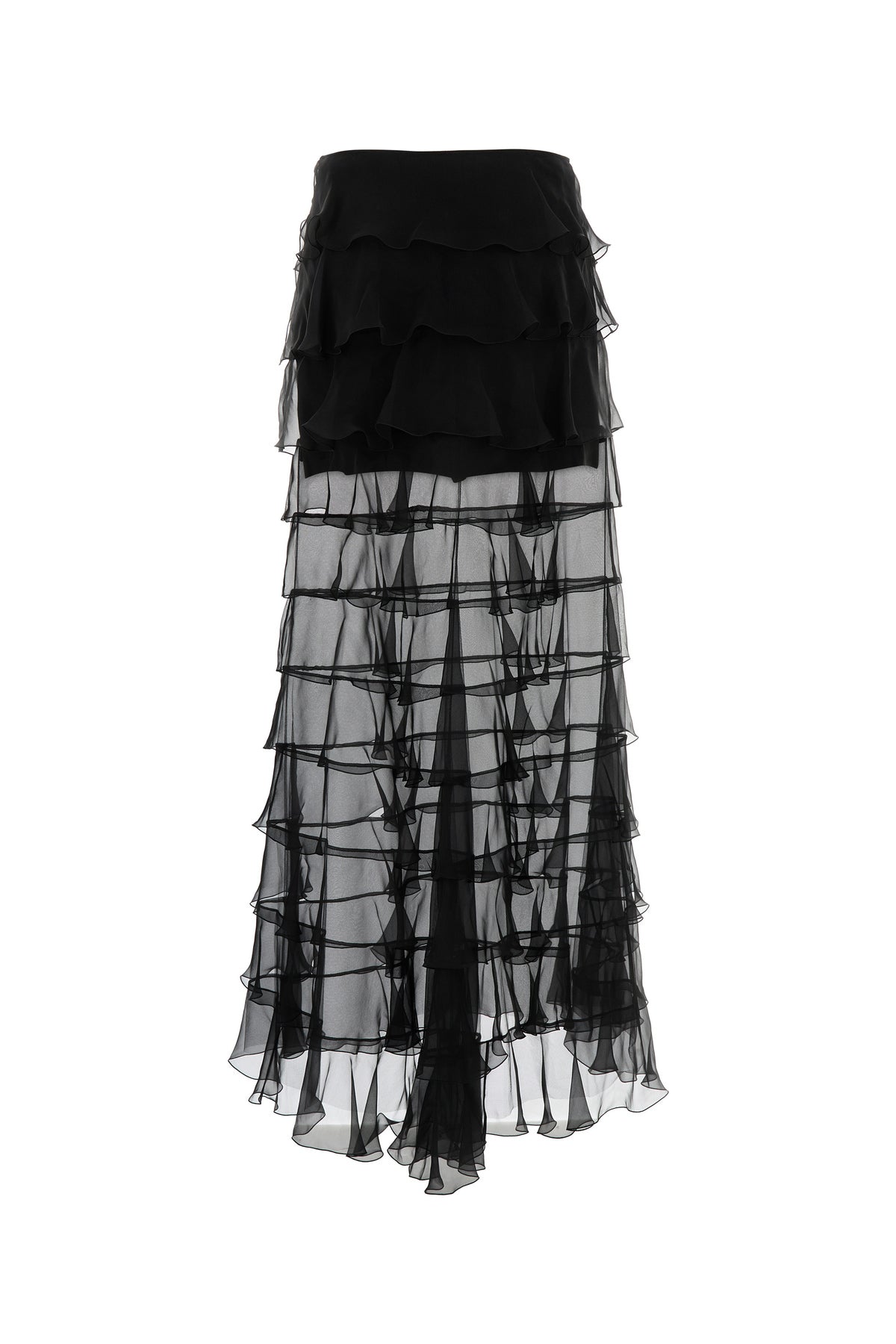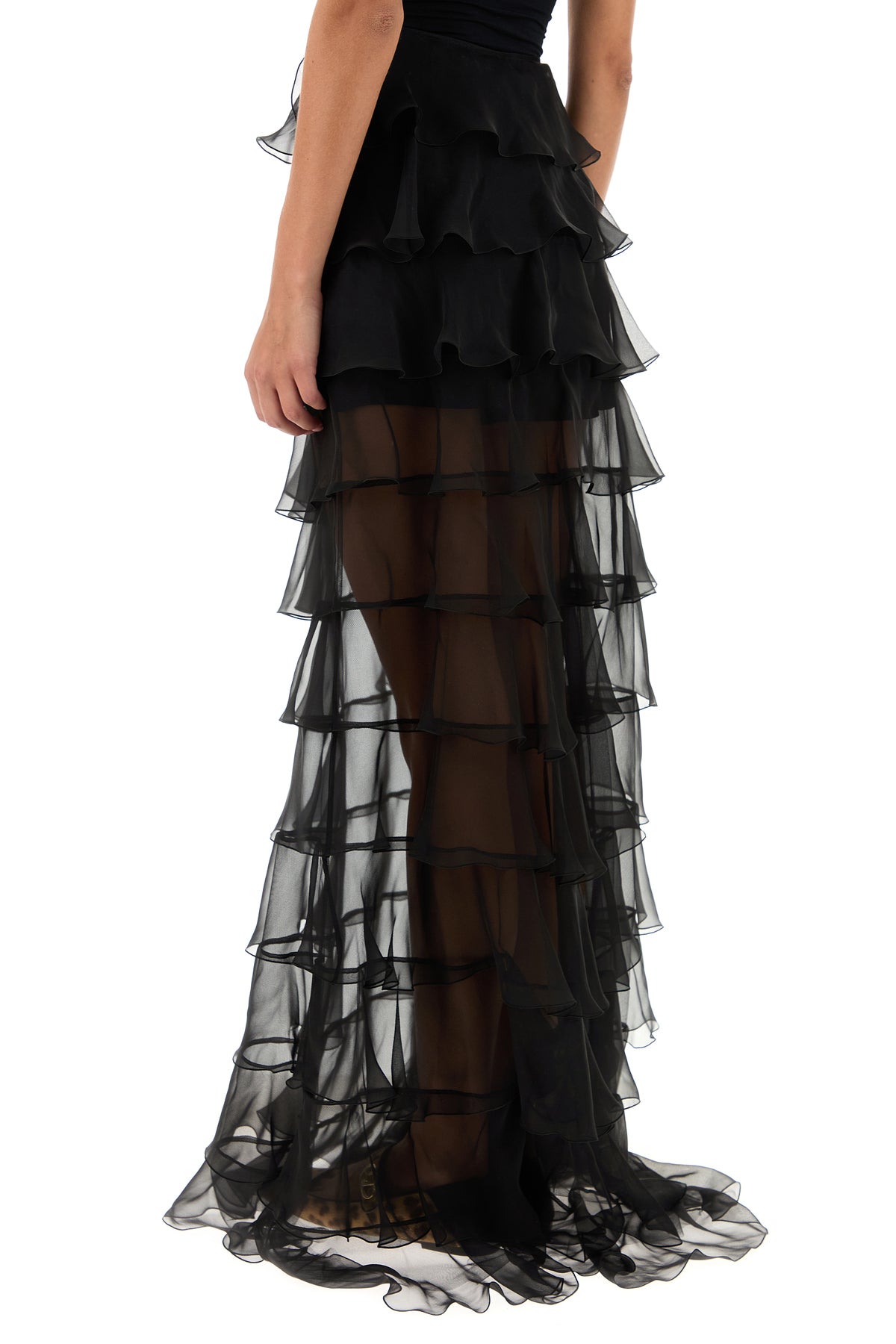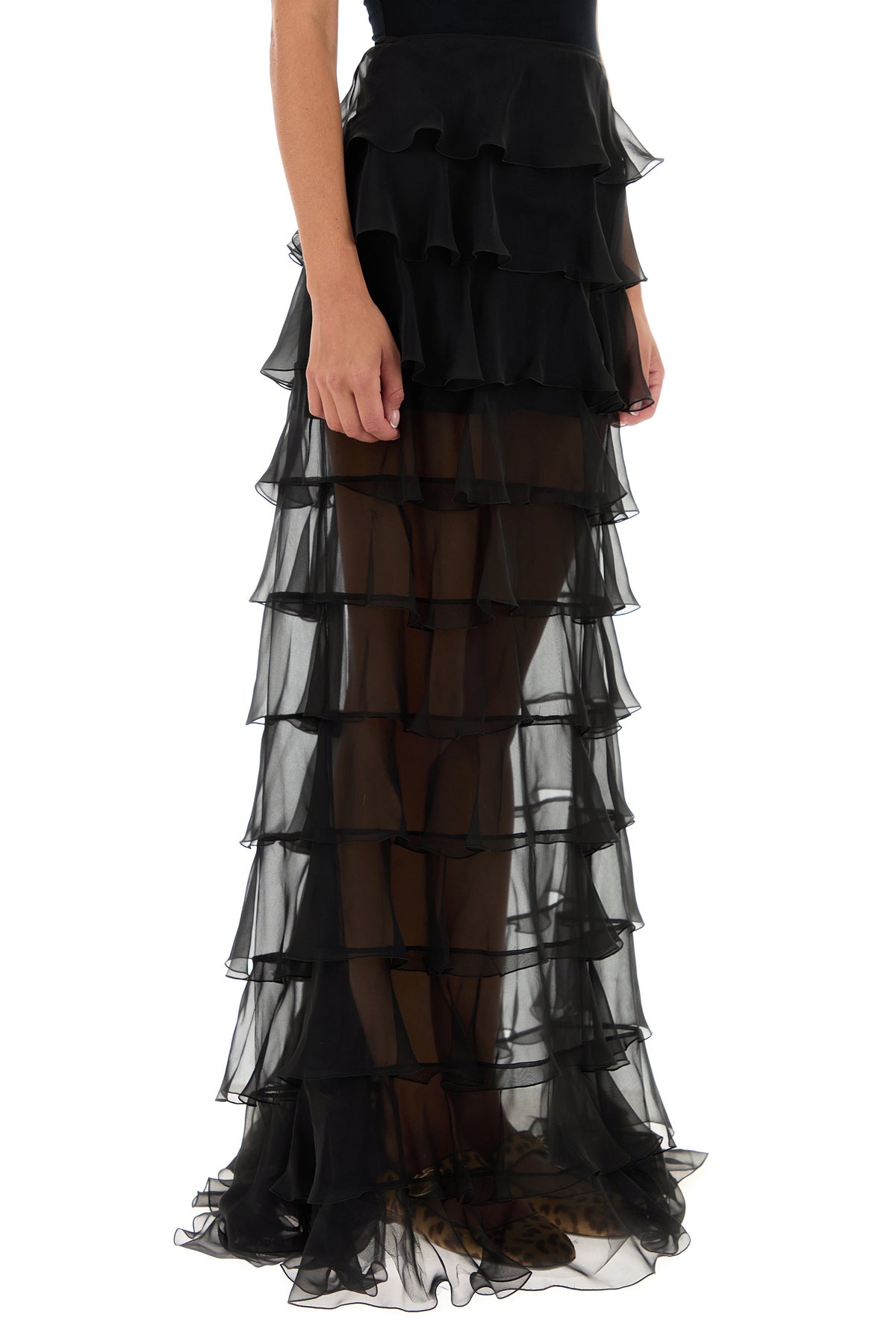 Long skirt realized in pure silk chiffon characterized by ruffles on the entire surface.