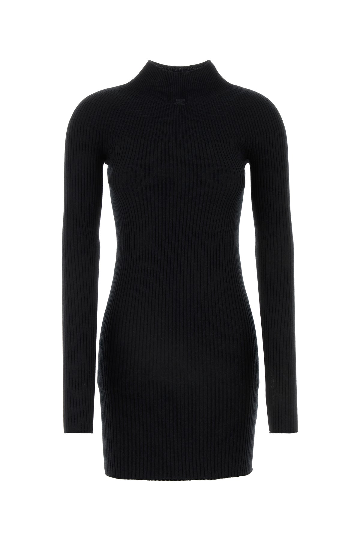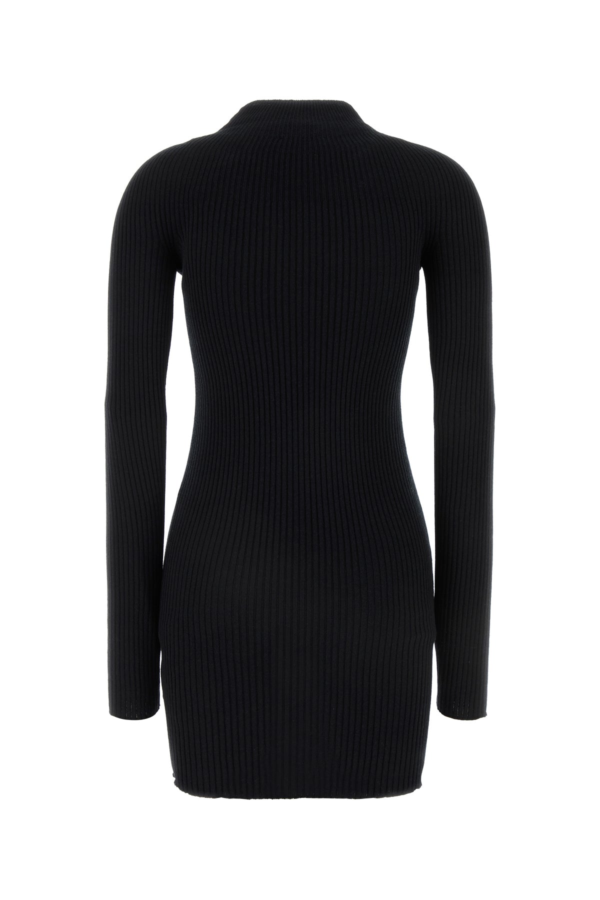 Fitted mini dress realized in ribbed cotton and merino wool enriched by tonal fabric logoed patch at the front.
