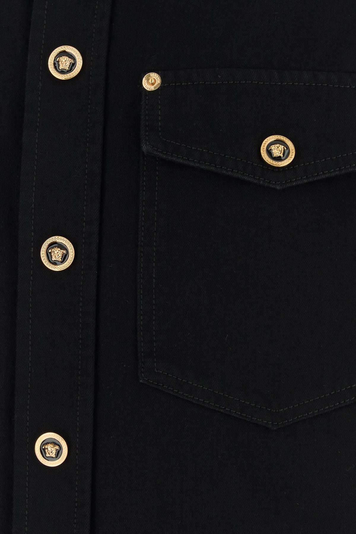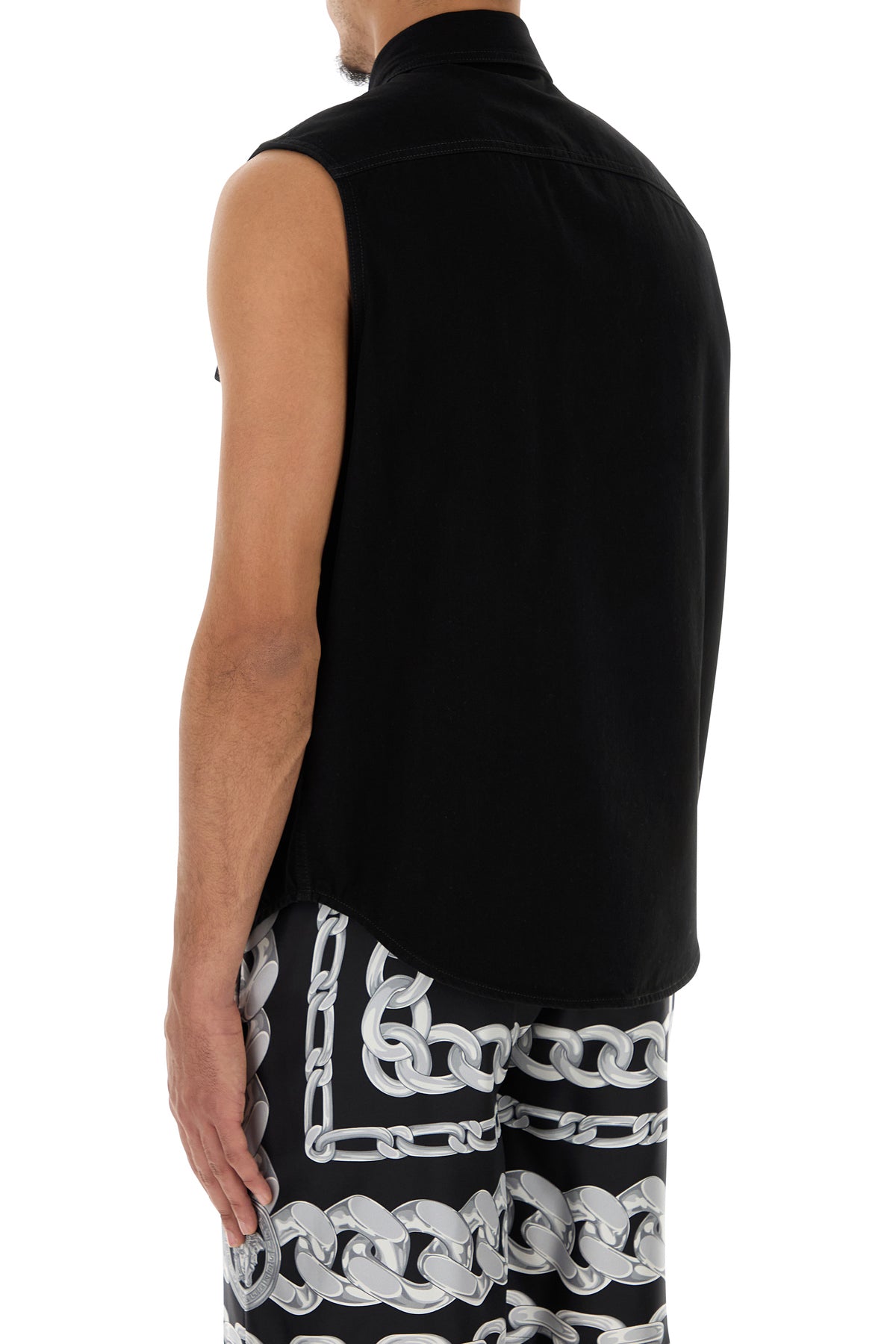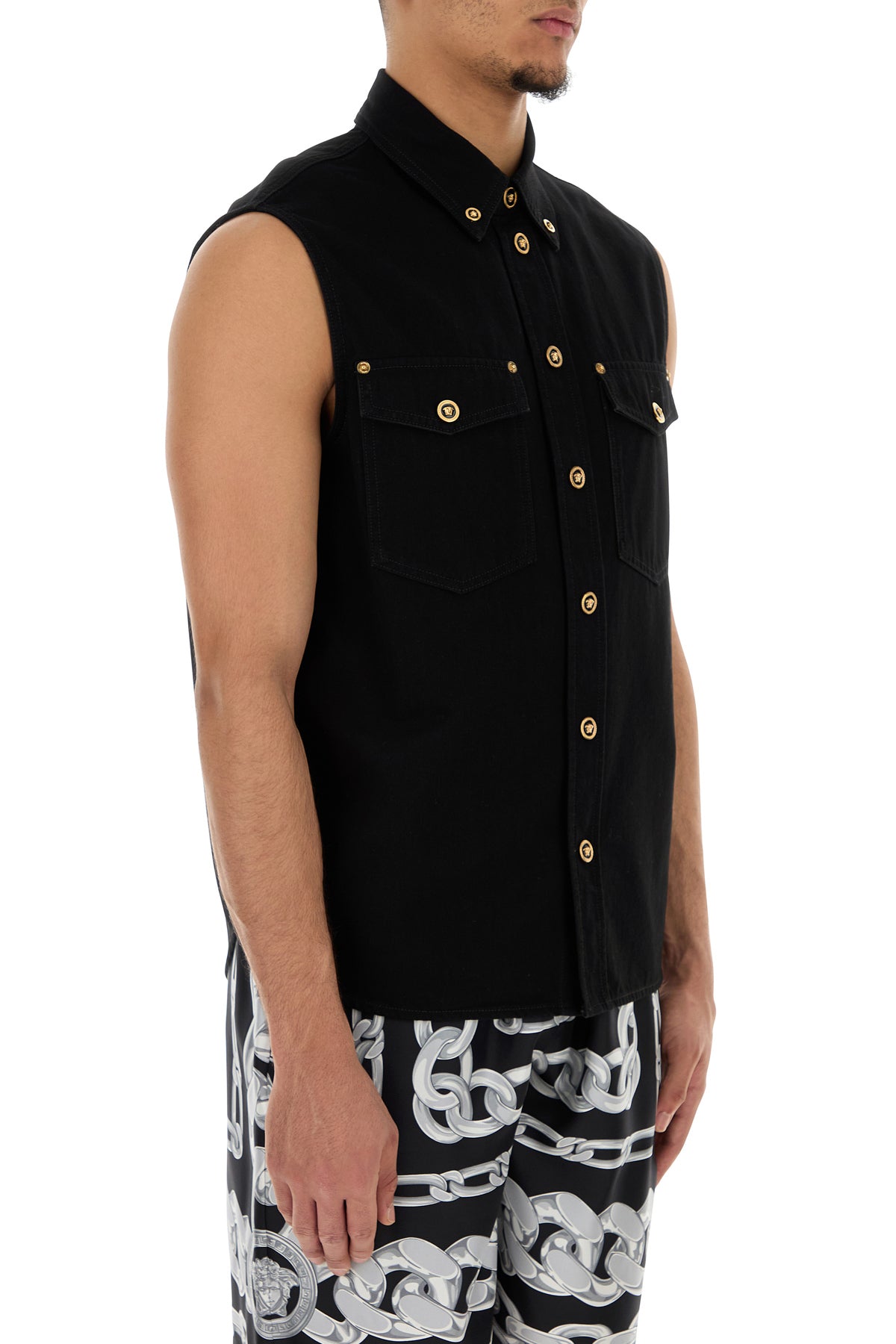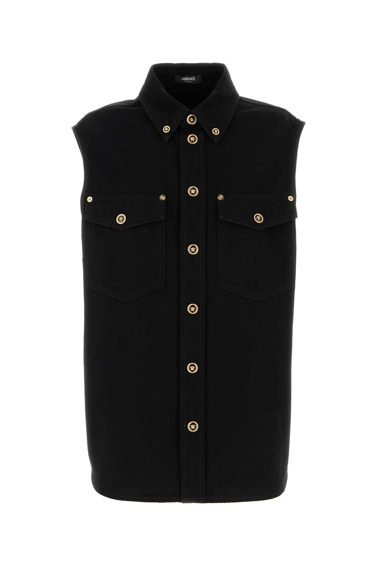 Vest realized in pure cotton denim enriched by metal Hardware Medusa details at the front.