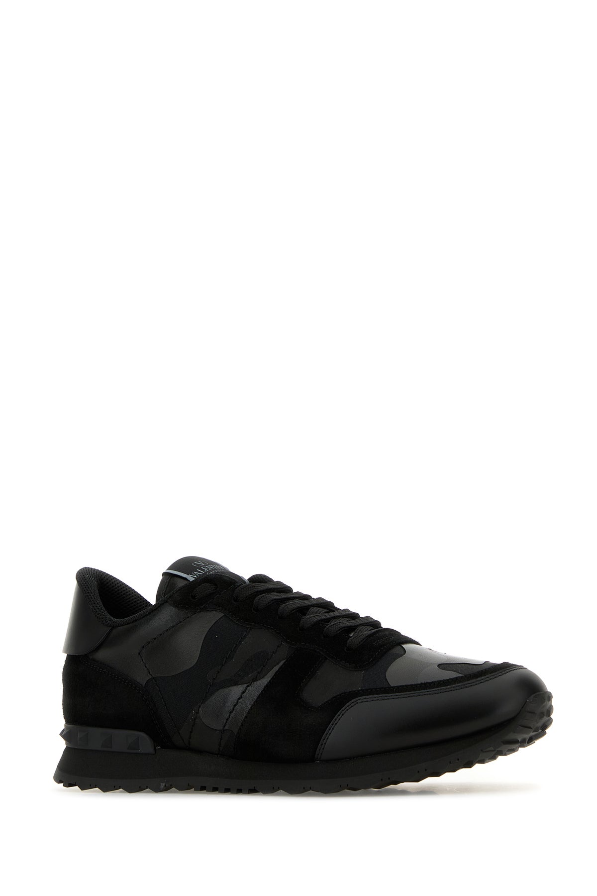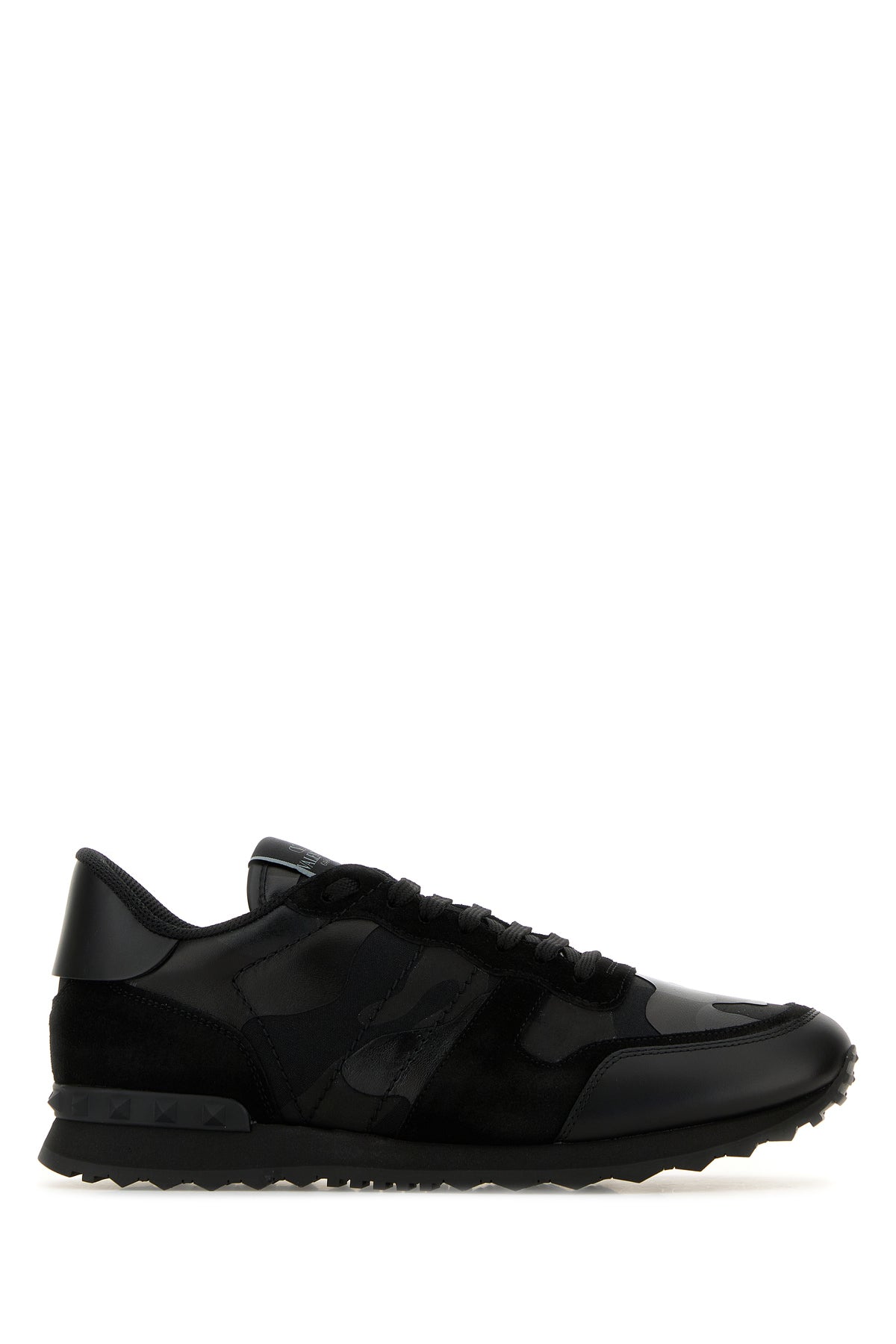 Sneakers realized in fabric and leather with suede inserts characterized by camouflage embroidery at the front and on the side enriched by rubberized studs at the back.