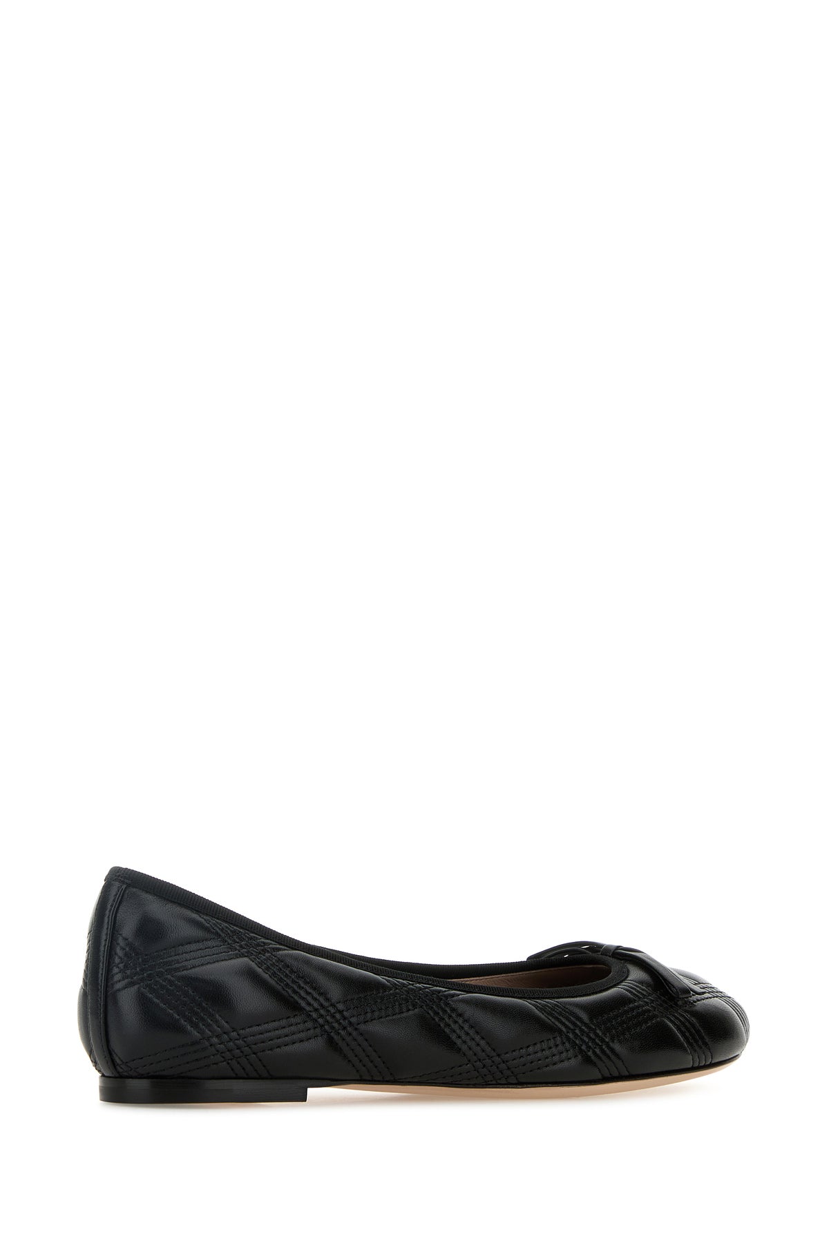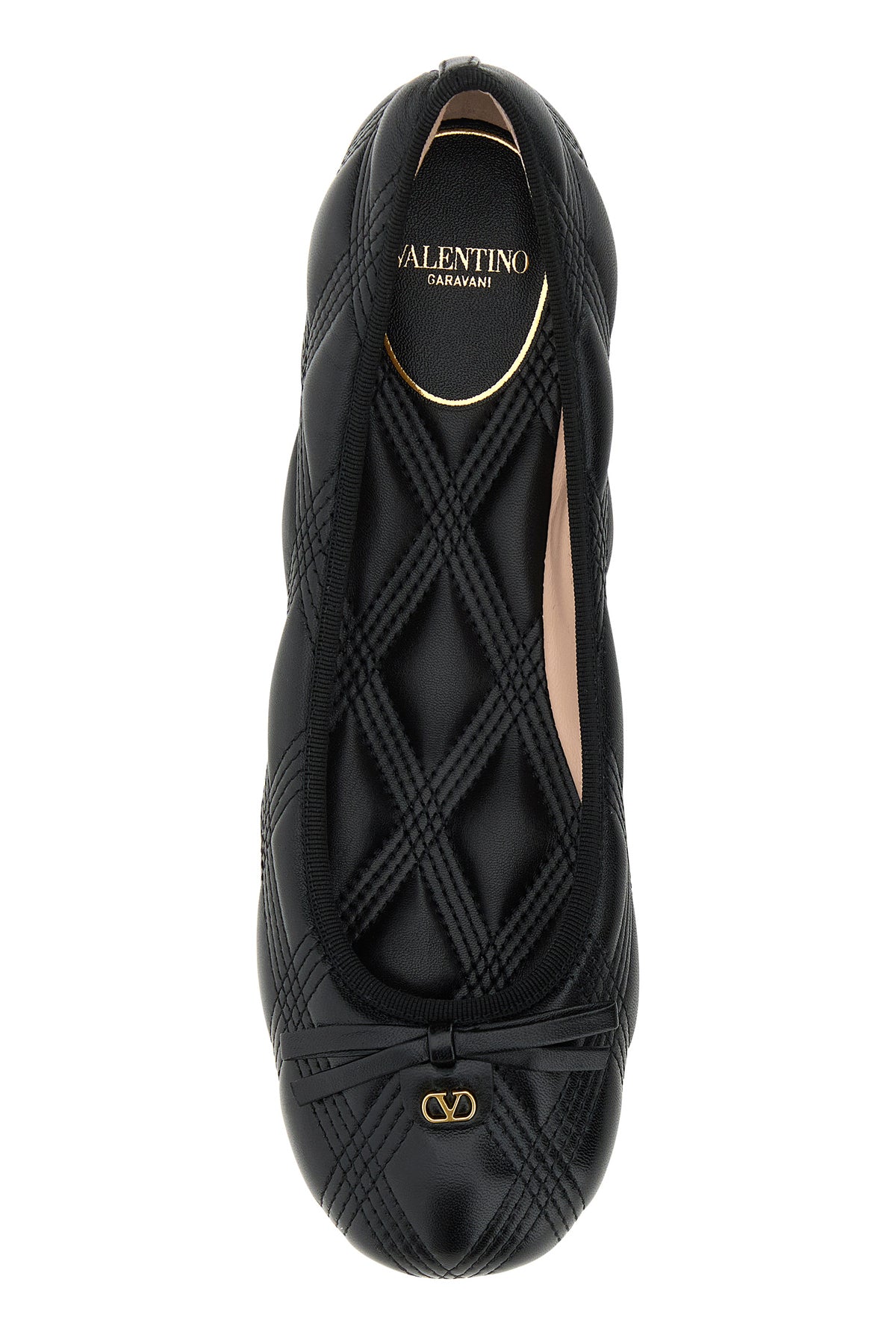 Ballerinas realized in quilted leather enriched by metal VLogo detail and decorative tonal leather bow at the front.