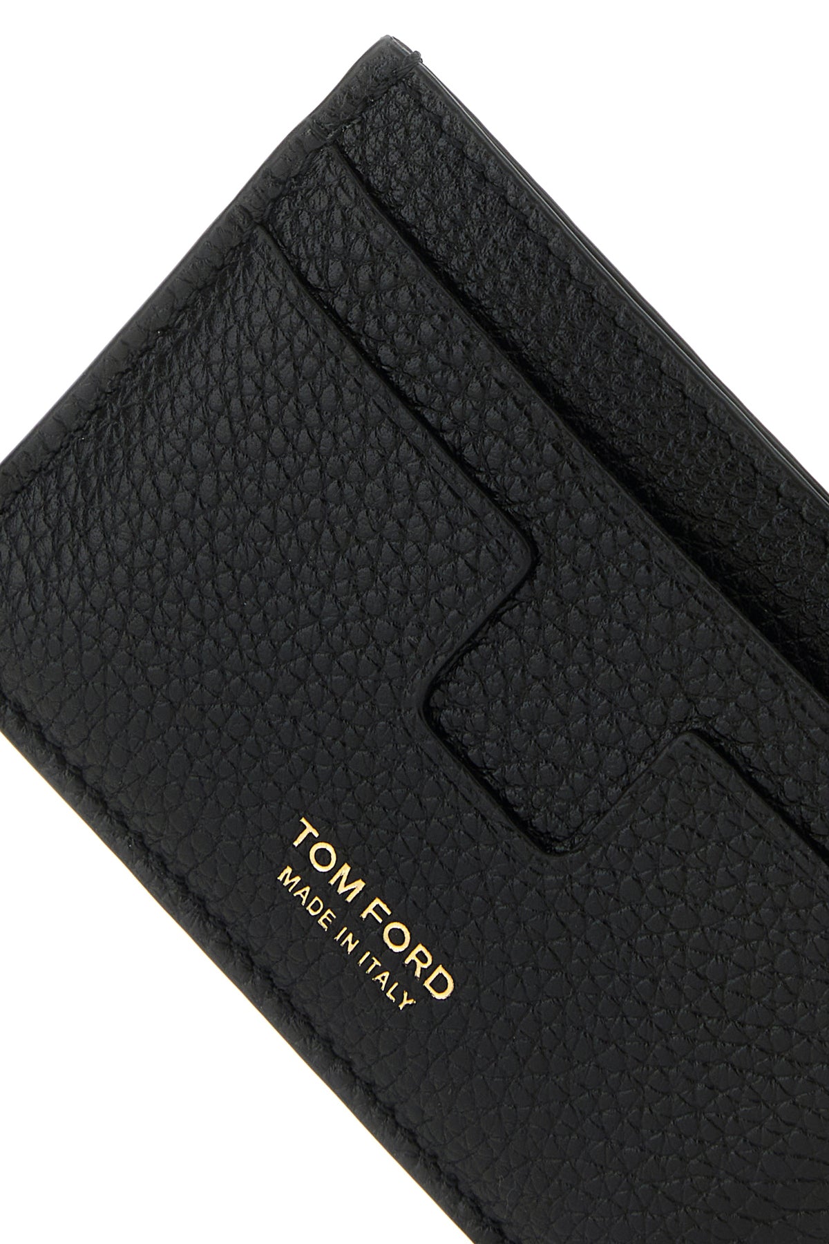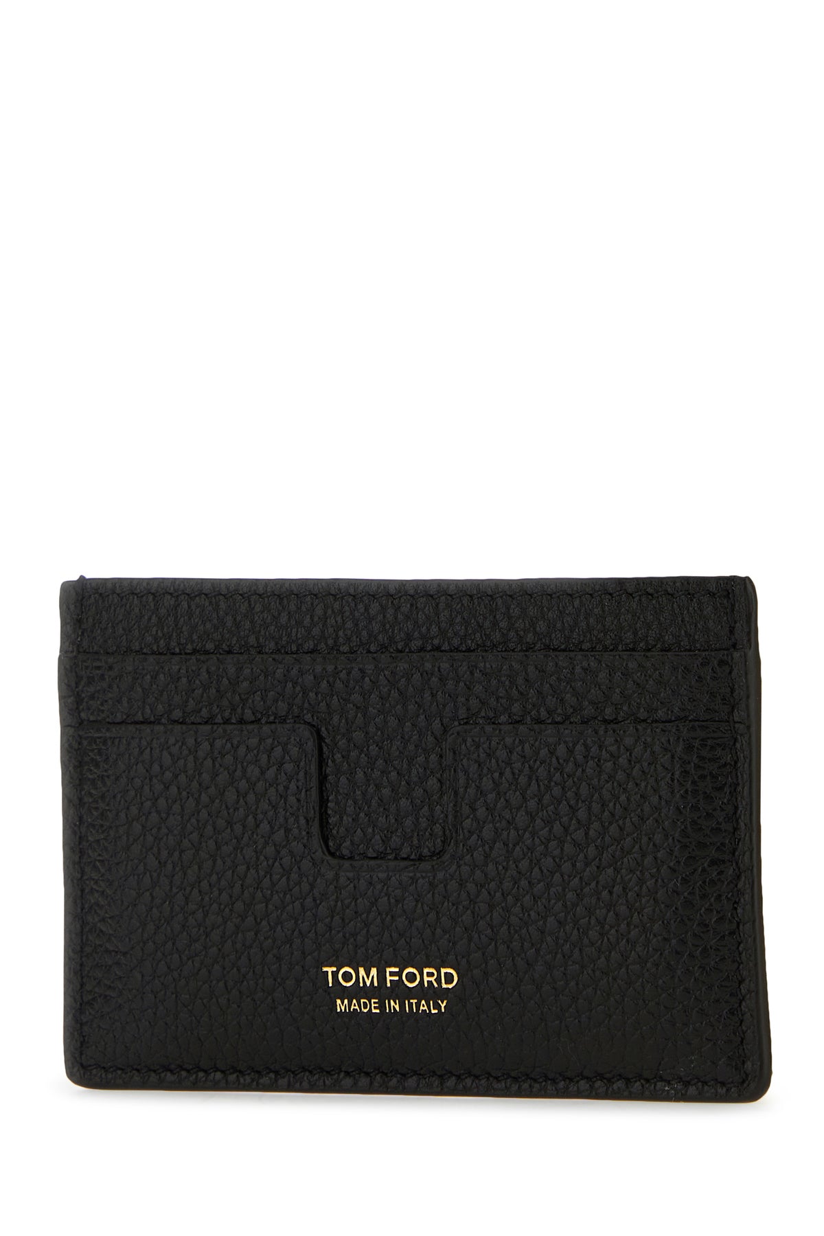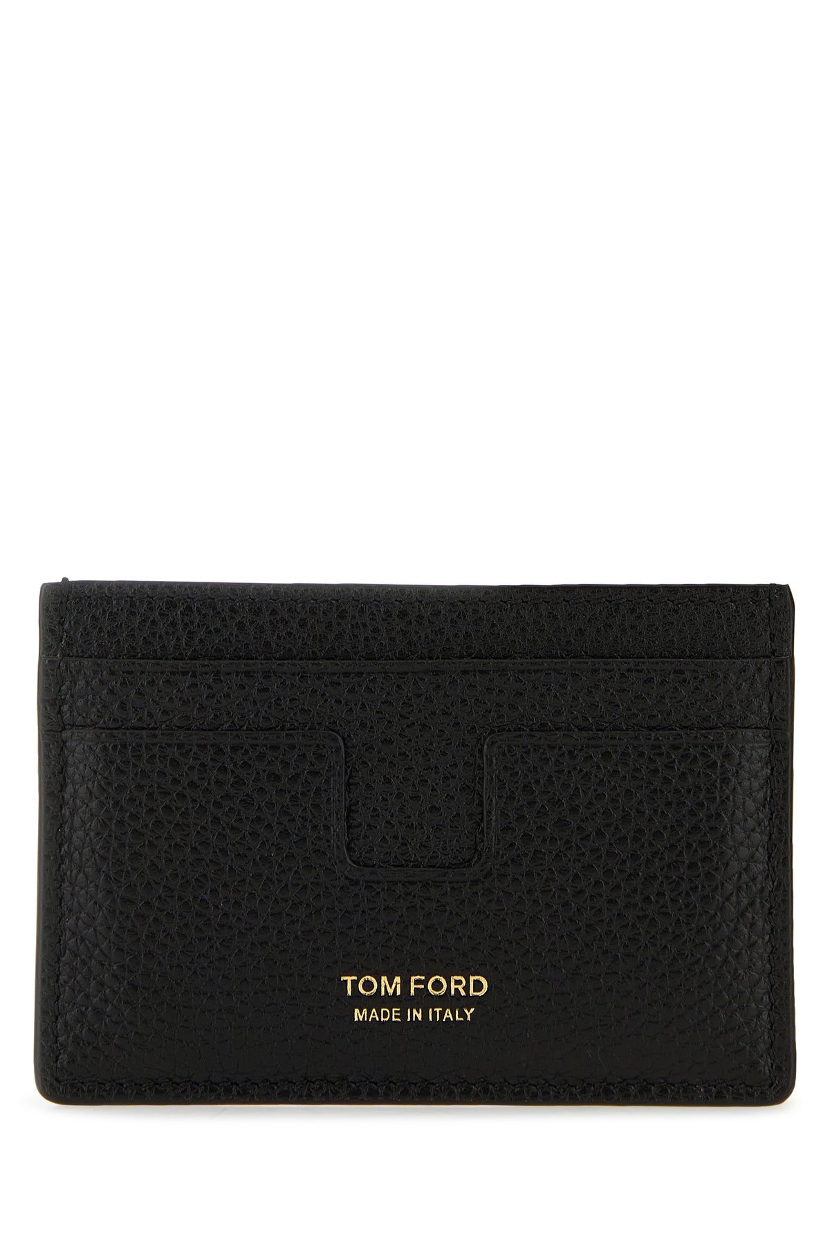 Card holder realized in grained calf leather characterized by contrasting printed logo at the front.
