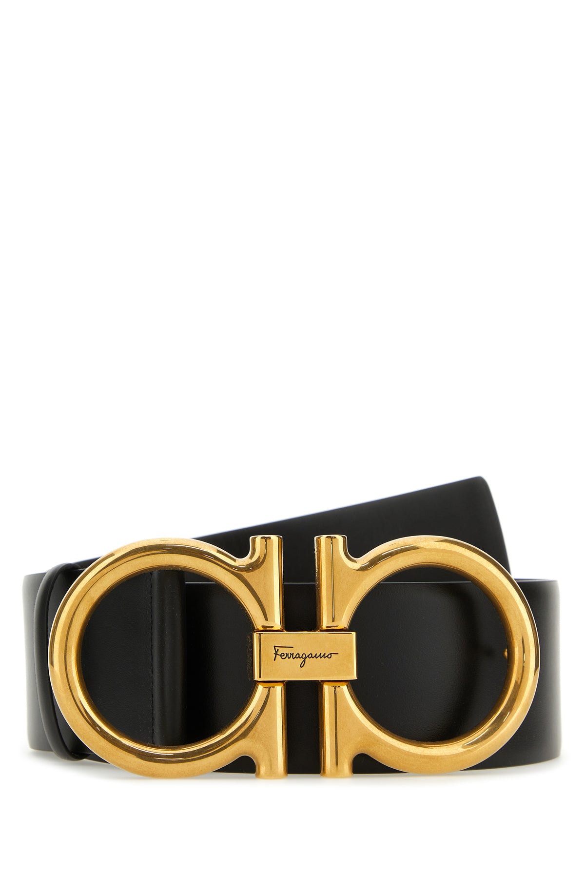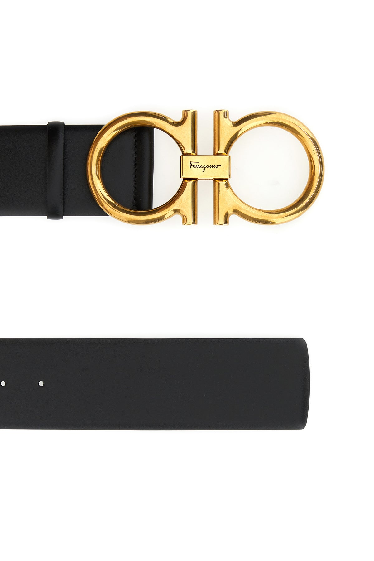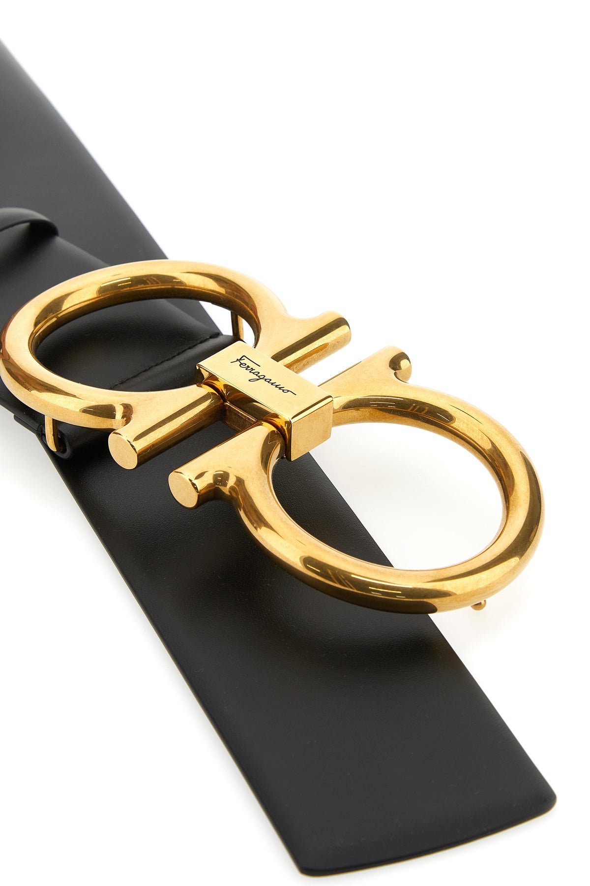 Belt realized in calf leather enriched by metal Gancini buckle.