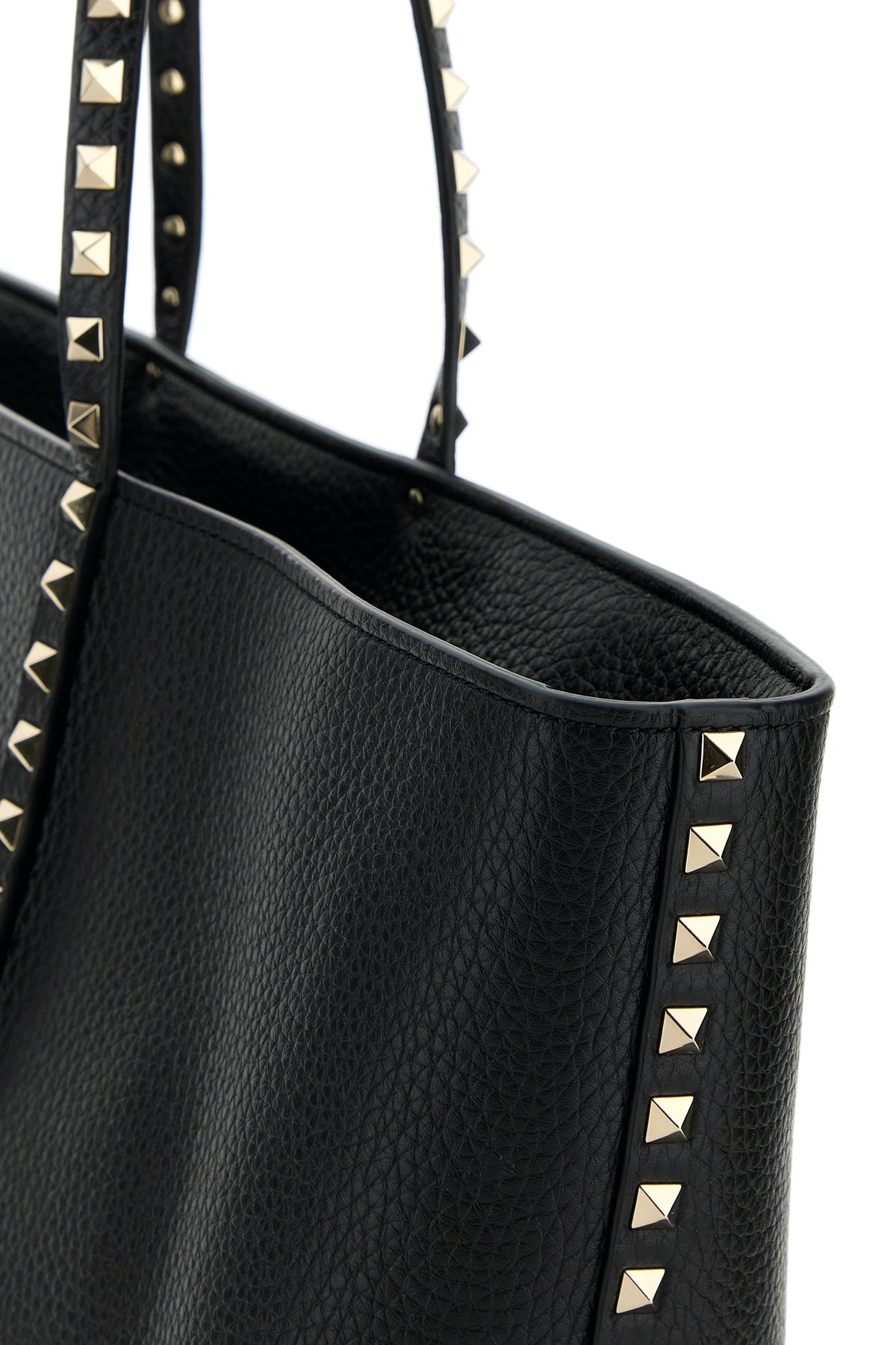 Black leather Rockstud shopping bag