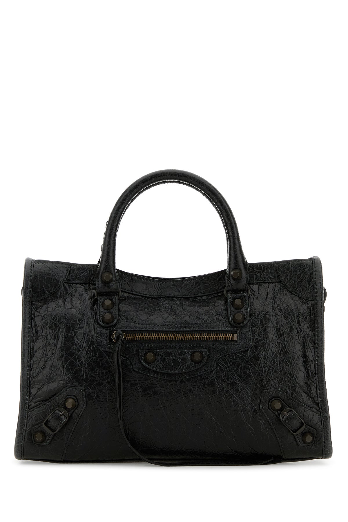 Handbag realized in Arena Storico lamb leather enriched by decorative strap and studs at the front.