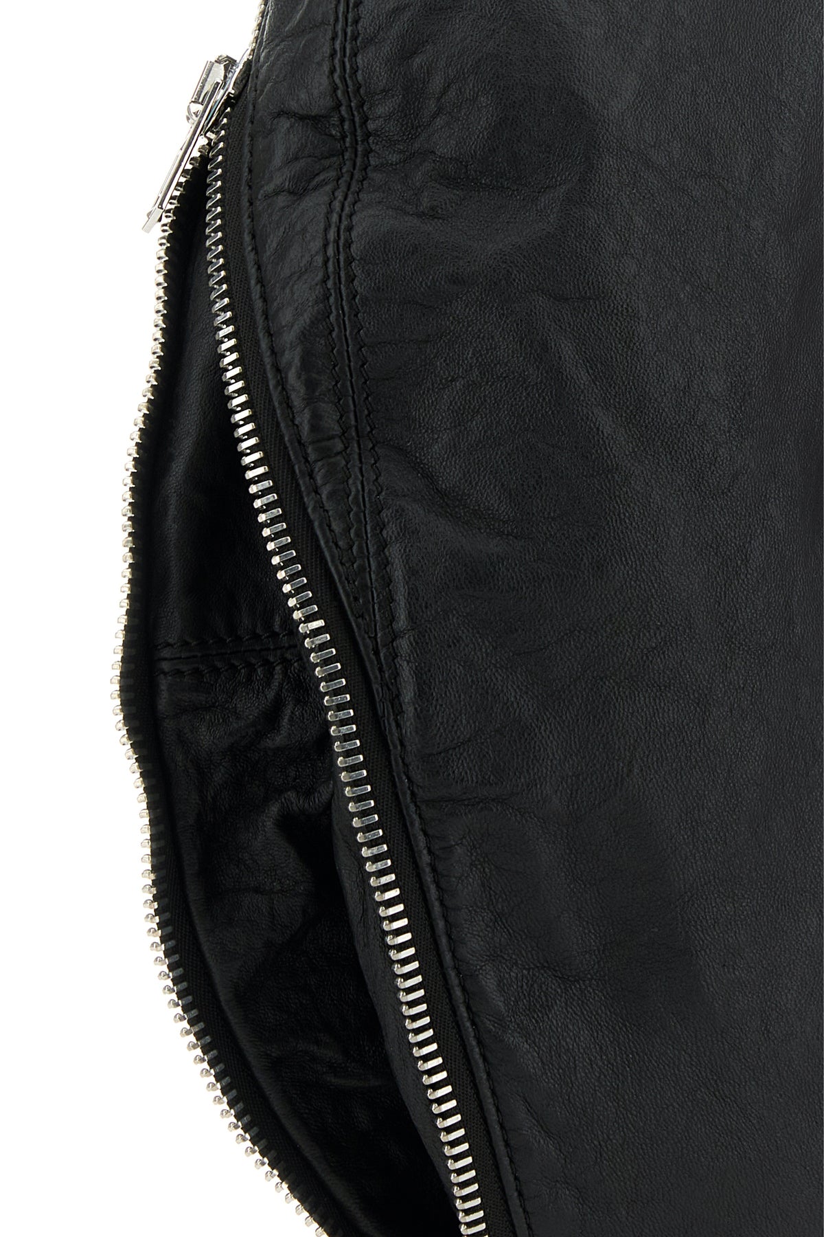 Crossbody bag realized in pebble ovine leather characterized by built-in shoulder strap and expandable sides by zip.