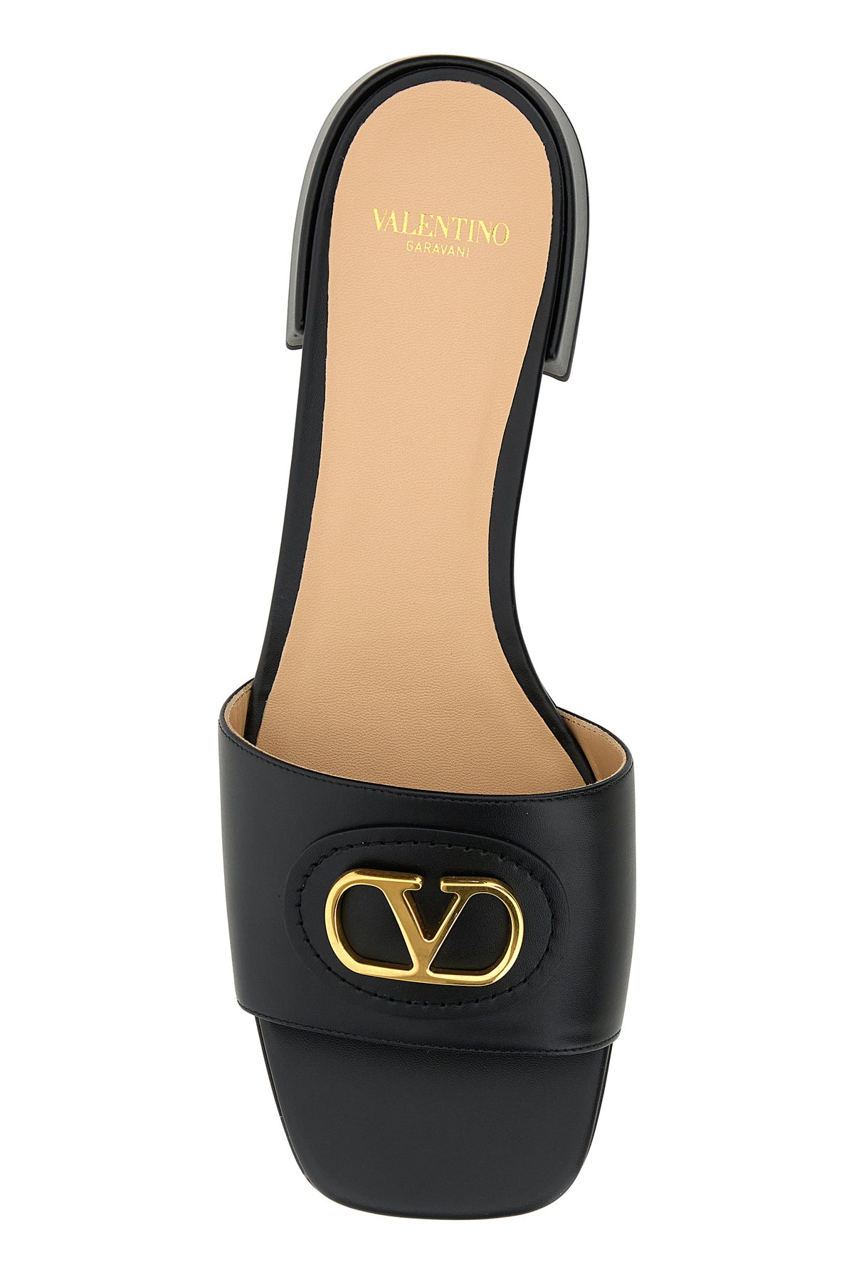 Slippers realized in smooth calf leather enriched by metal VLogo detail on the band.