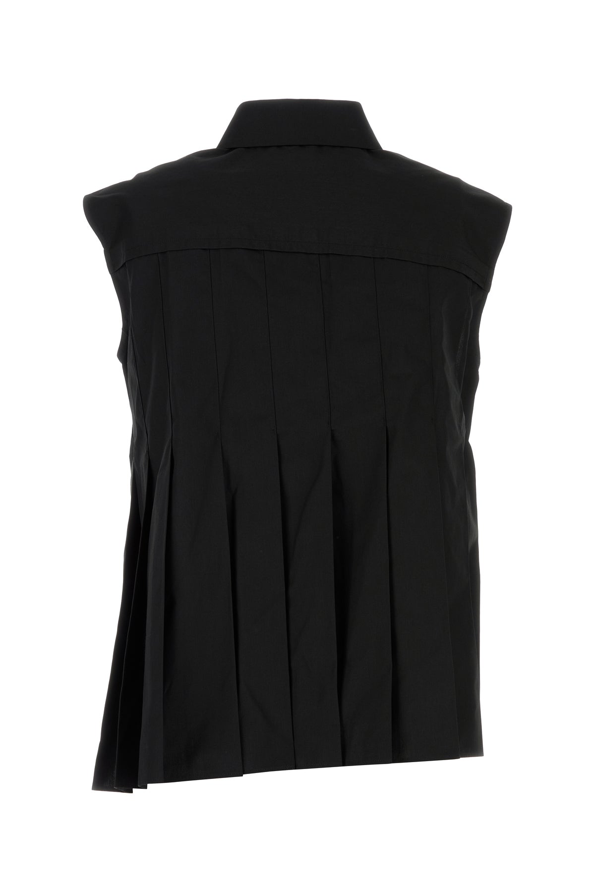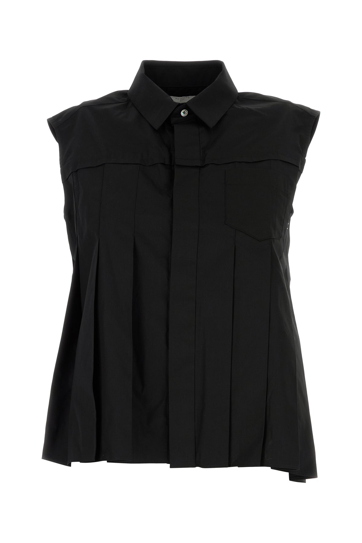Pleated blouse realized in poplin characterized by lateral slits on the hemline.