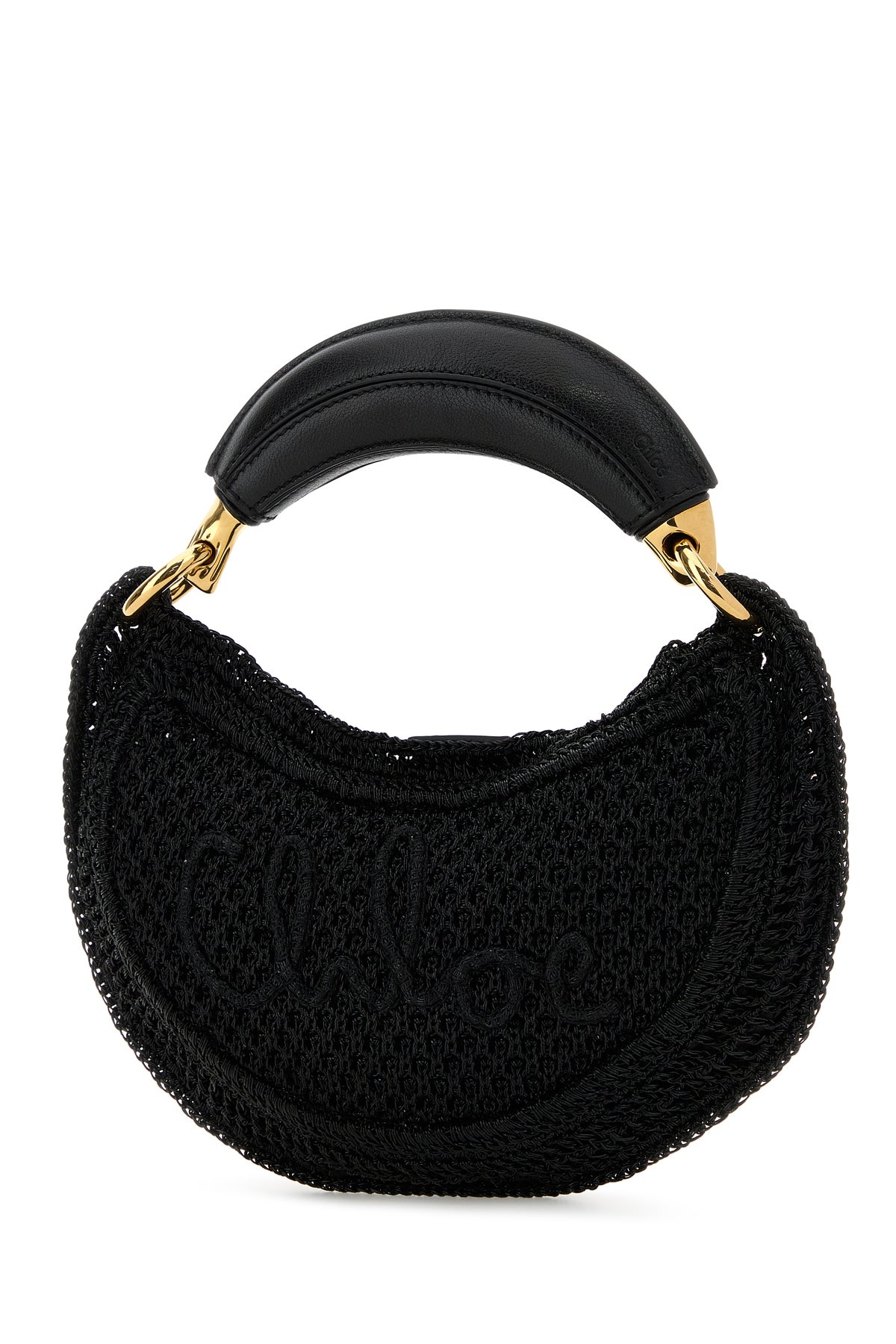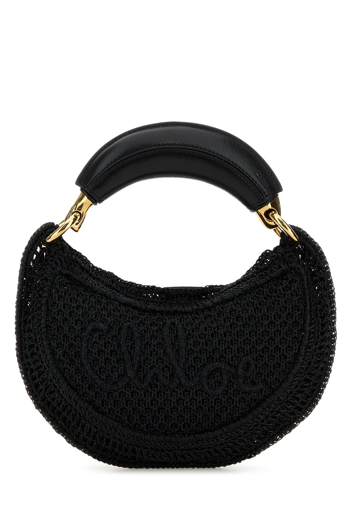 Handbag realized in raffia characterized by tonal embroidered logo at the front.