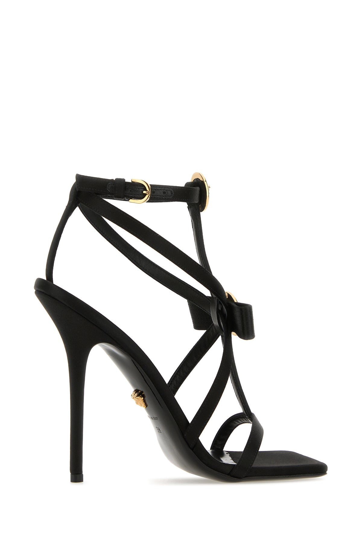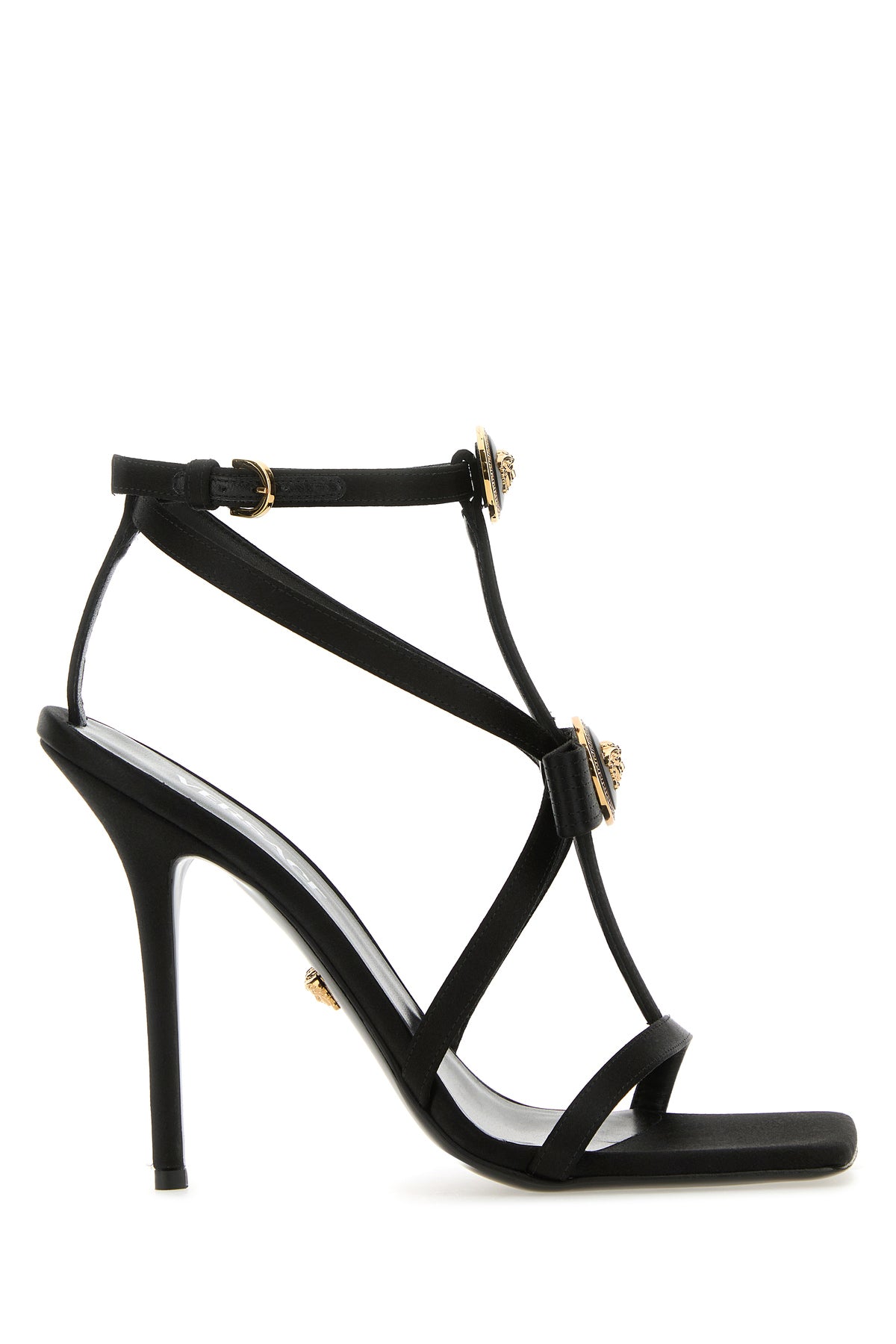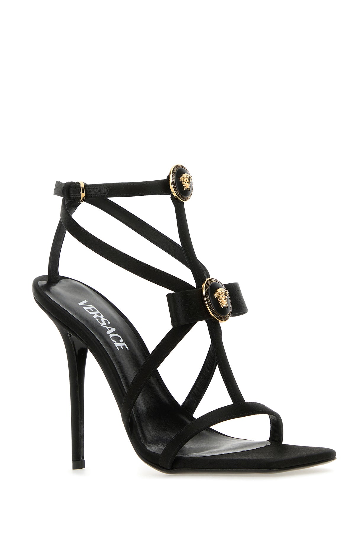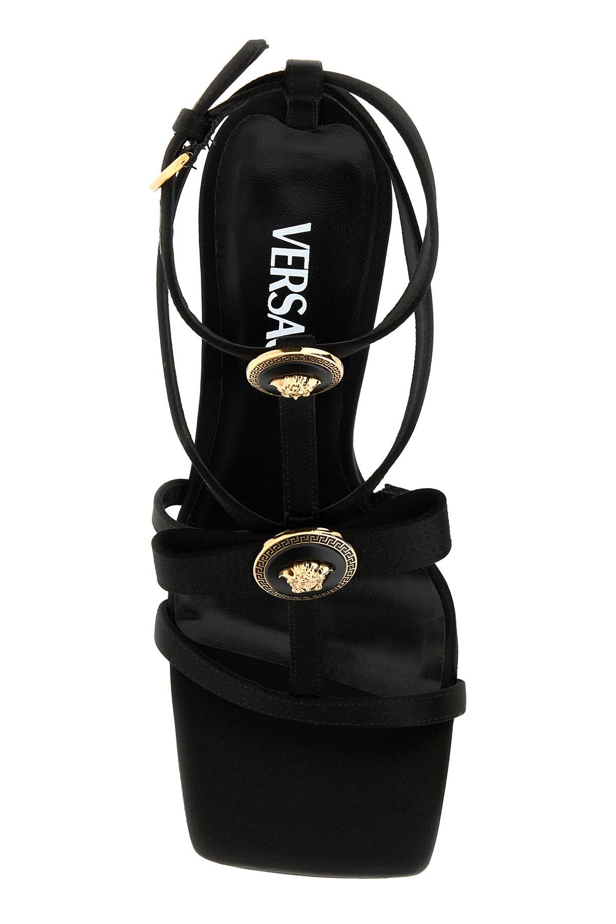 Sandals realized in satin enriched by iconic Medusa Heads details at the front and Gianni Ribbon detail at the front.