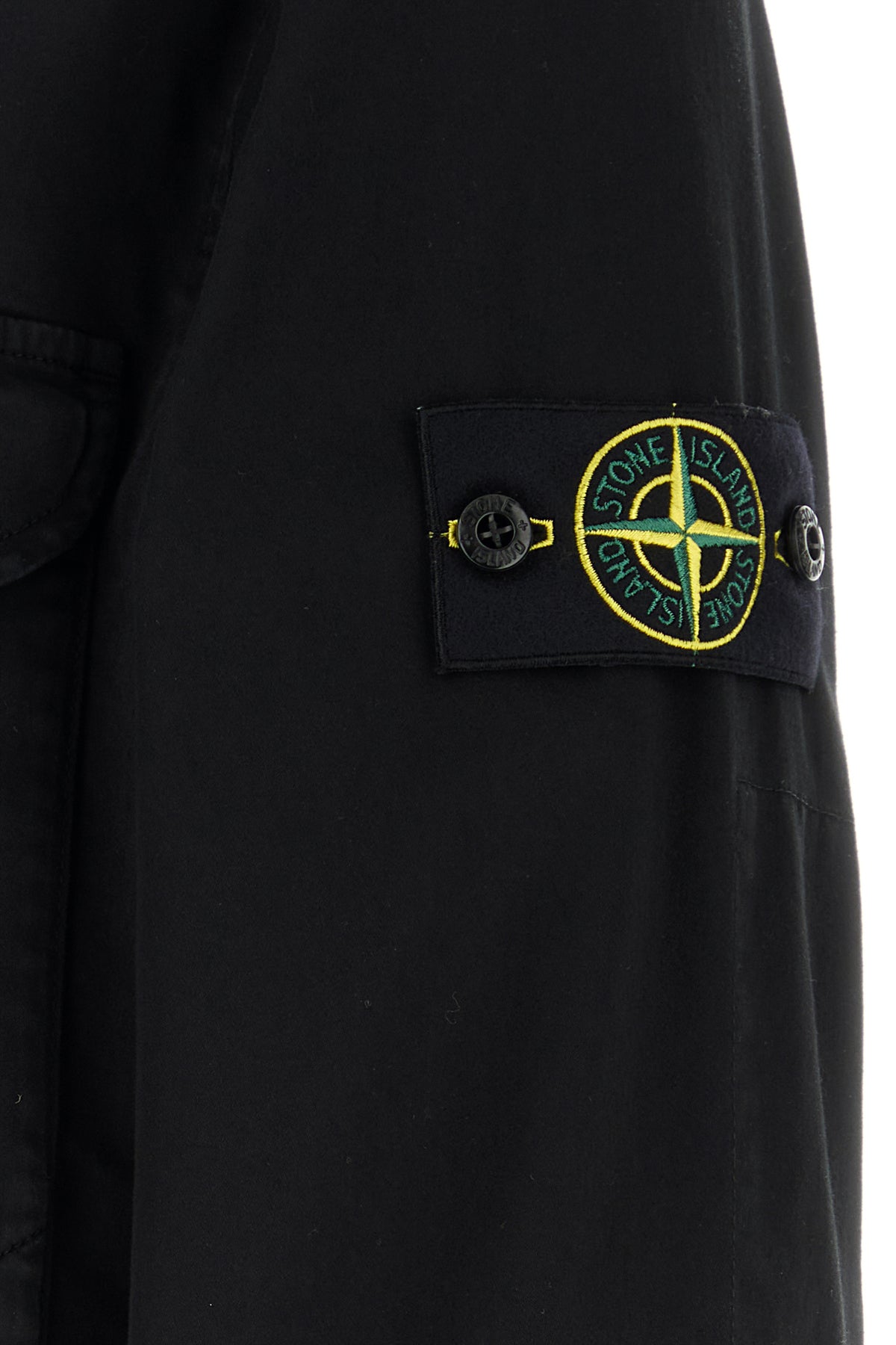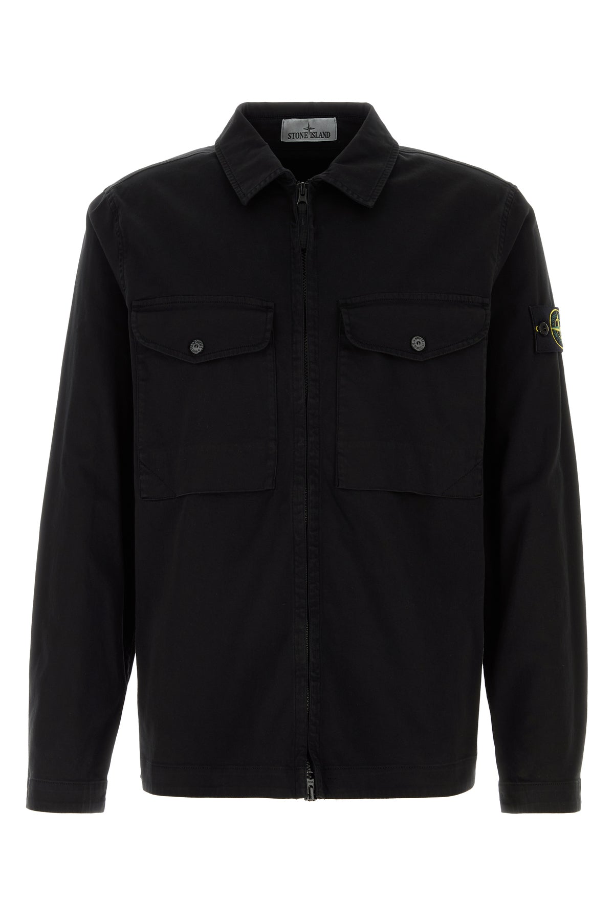 Jacket realized in stretch cotton enriched by detachable logoed label on the sleeve.