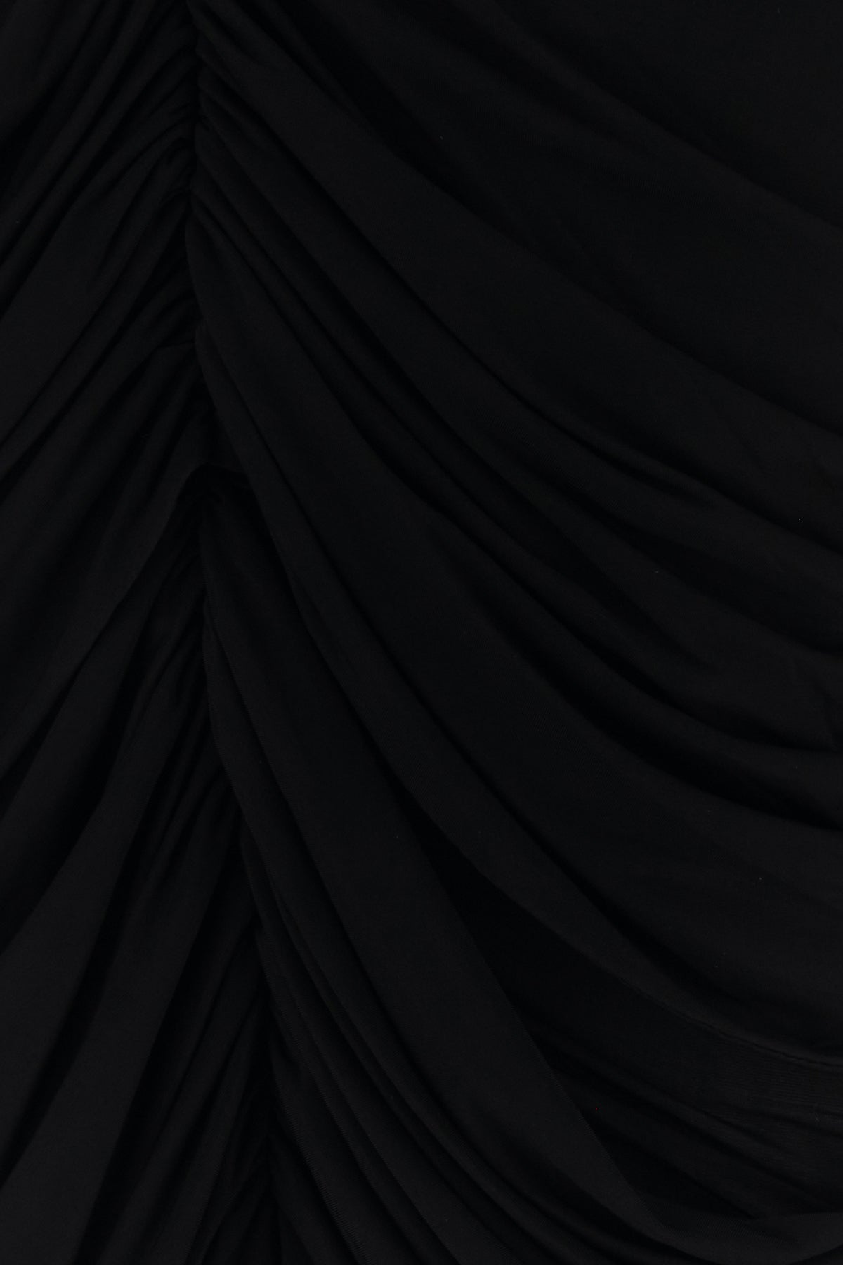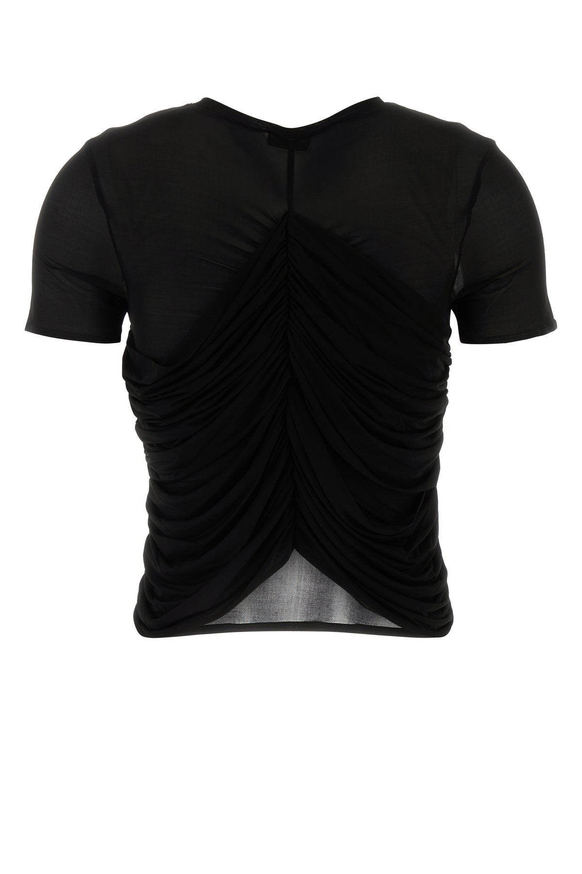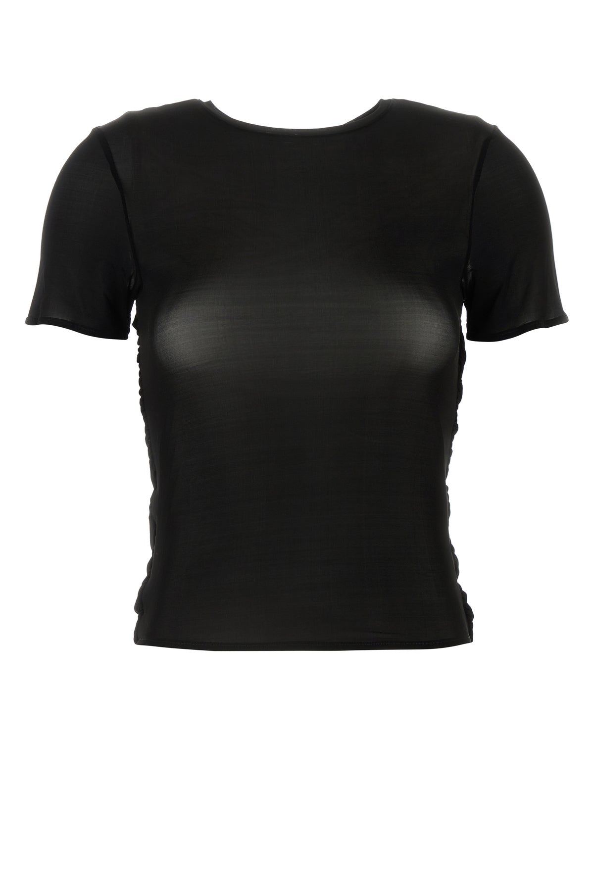 Semi-transparent top realized in stretch mesh enriched by ruffles at the back.