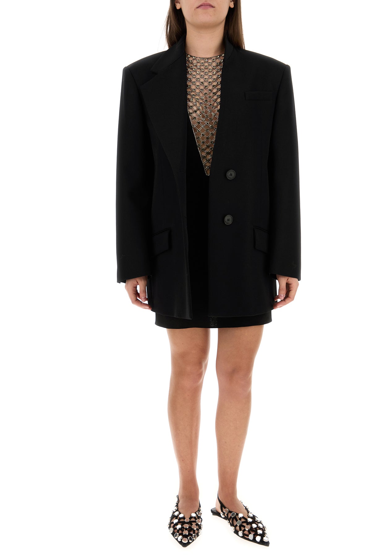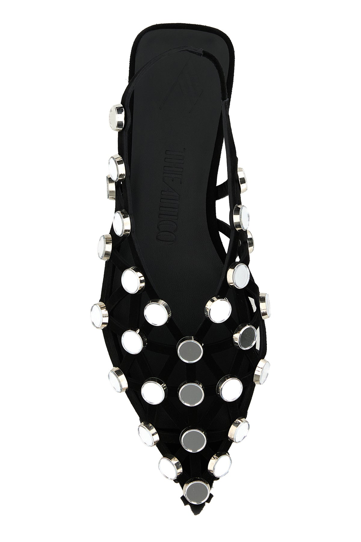 Ballerinas realized in suede characterized by cut-out details on the entire surface enriched by peculiar embellishments on the entire surface.