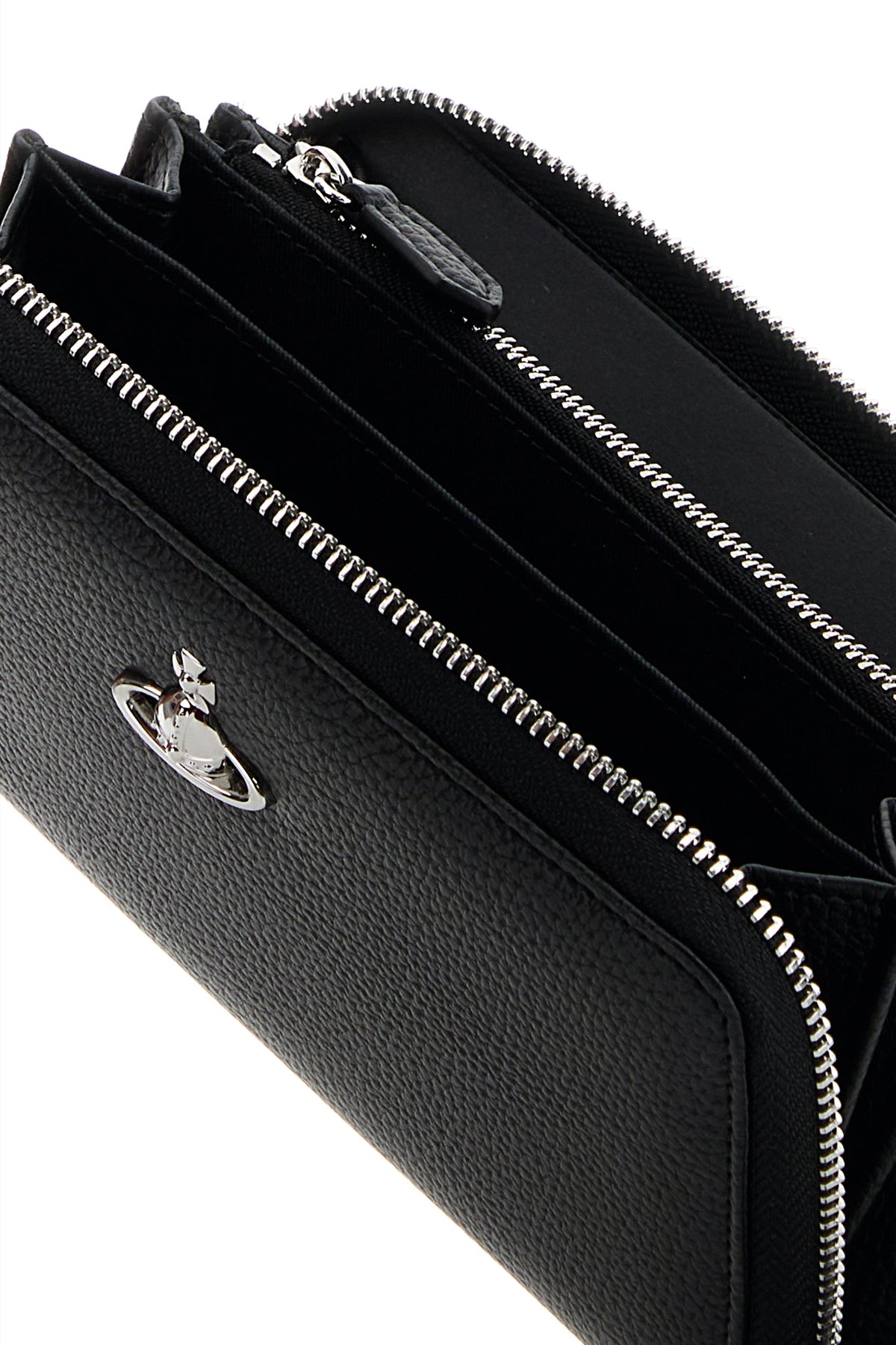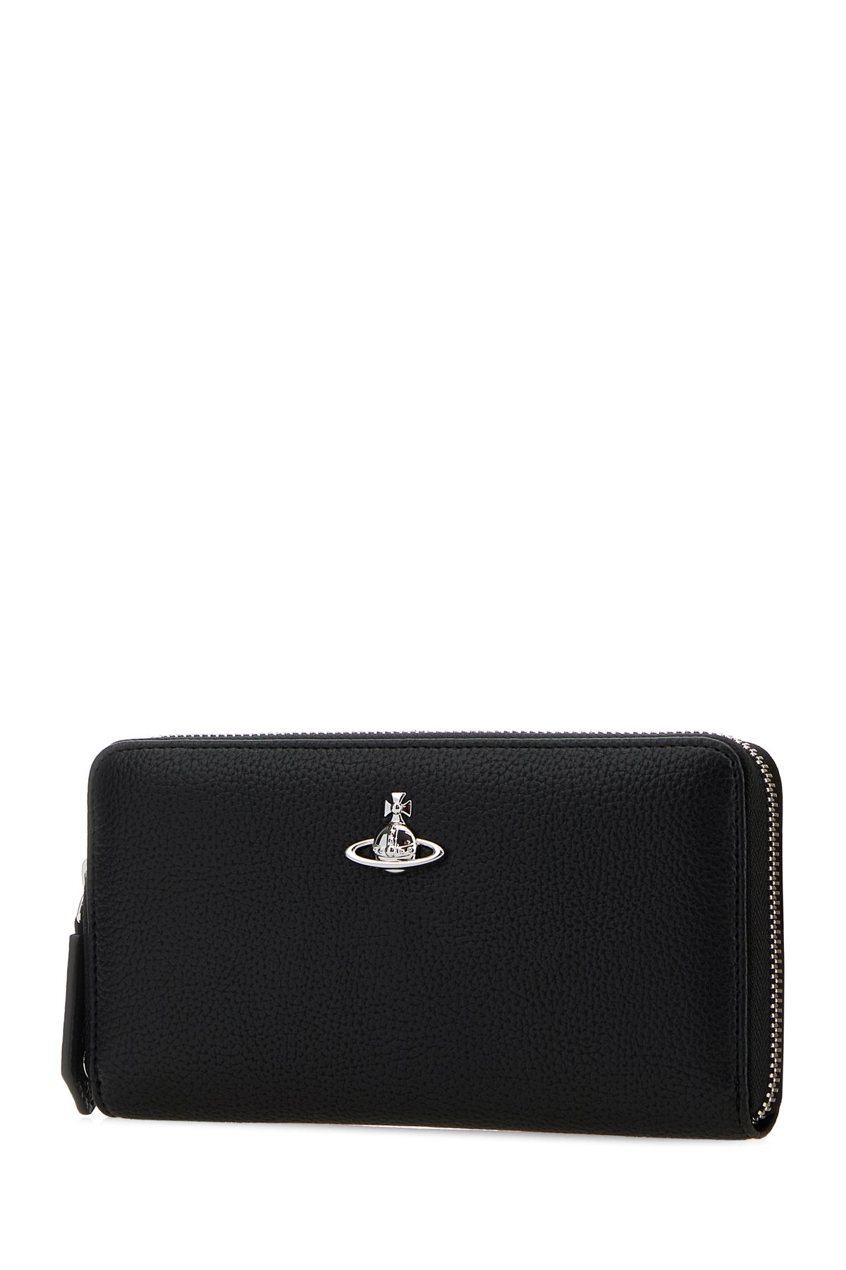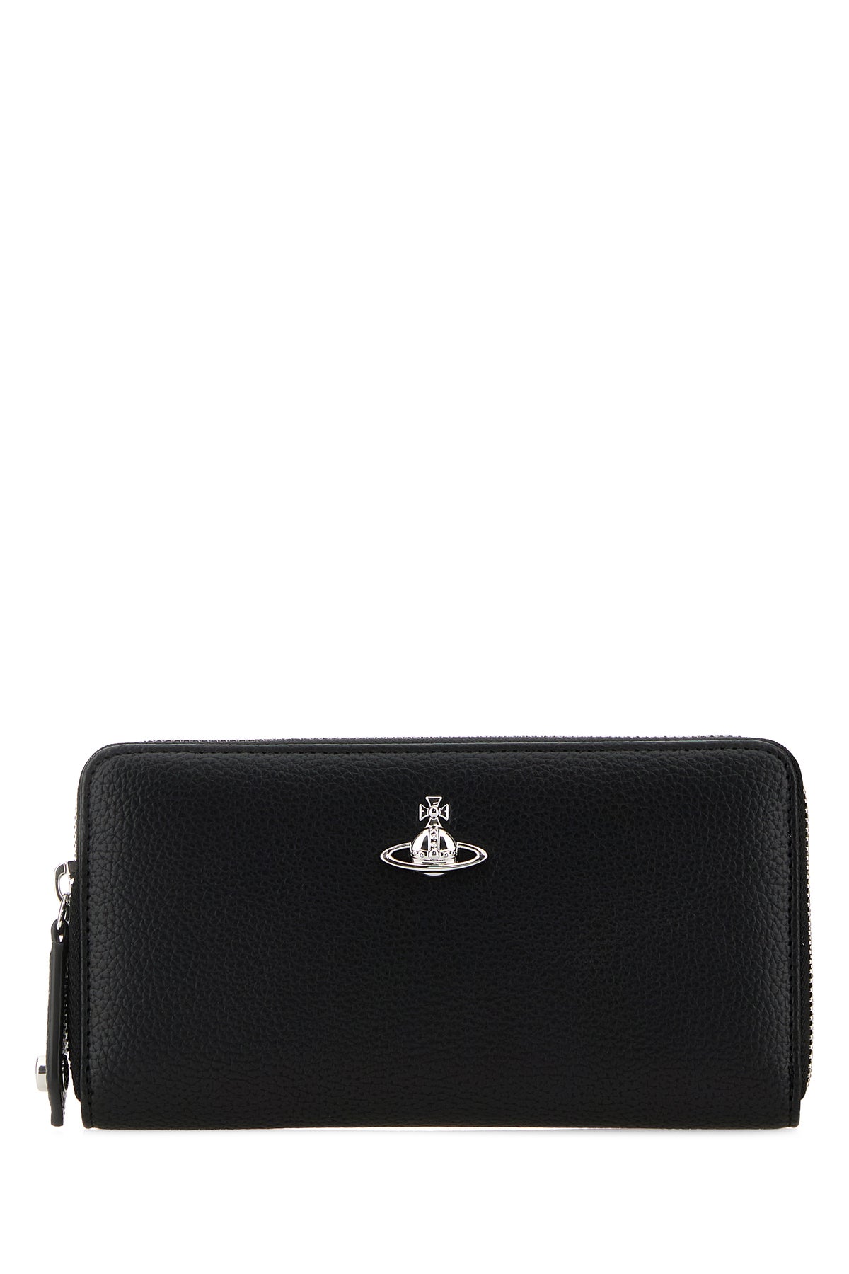 Wallet realized in grained synthetic leather enriched by metal Orb detail at the front.