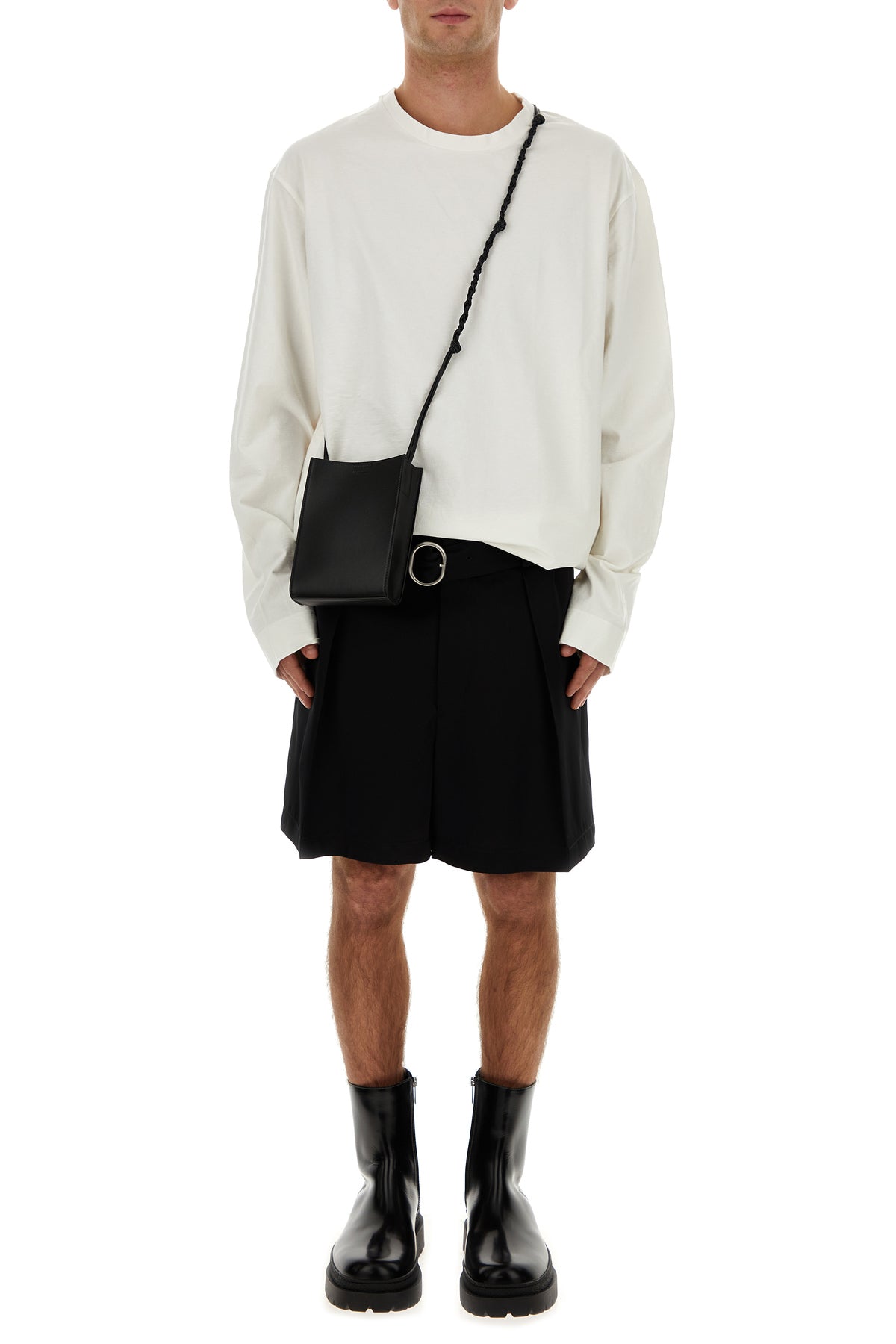 Bermuda shorts realized in viscose and silk characterized by inverted pleats.