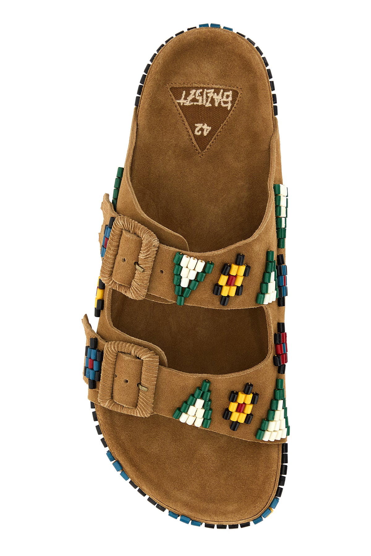 Slippers realized in suede enriched by beads on the entire surface.
