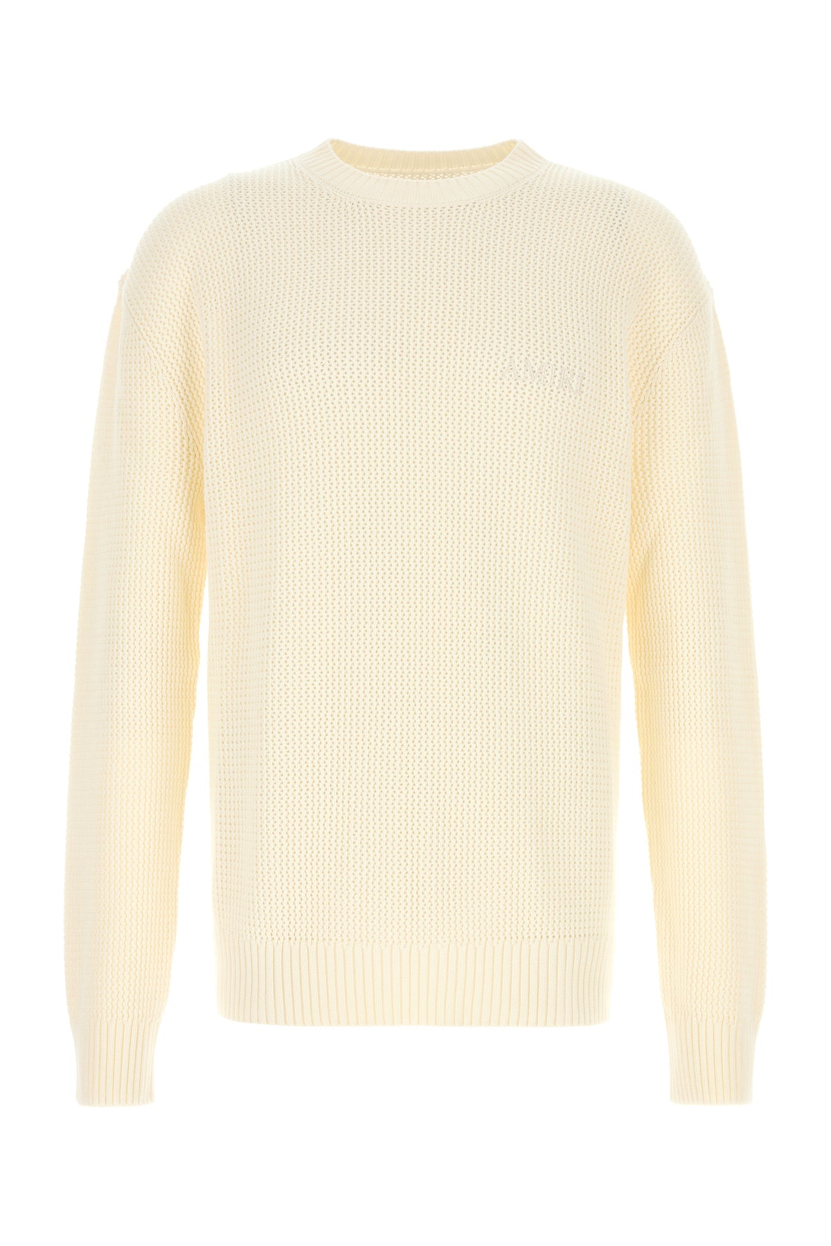 Sweater realized in pure cotton crochet characterized by tonal embroidered logo on the chest and at the back.