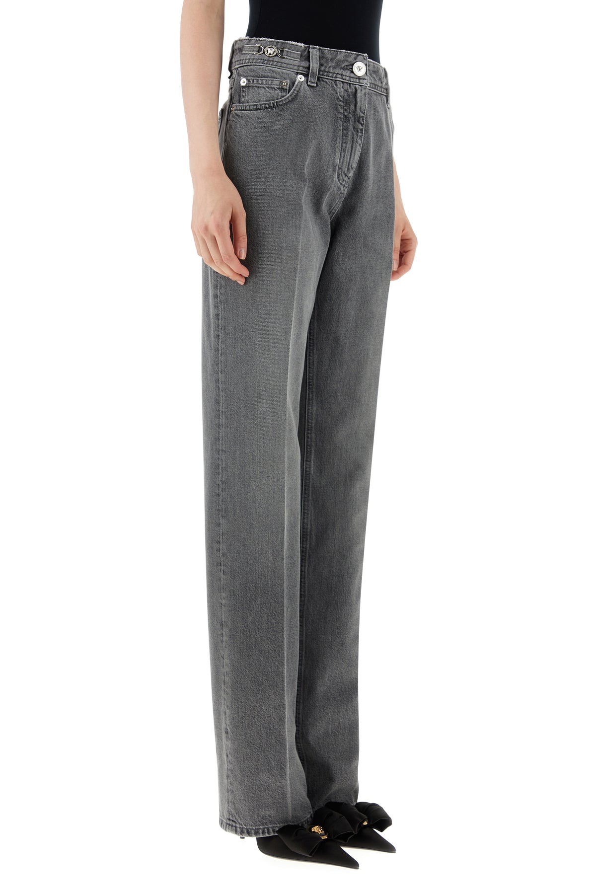 Regular jeans realized in pure cotton denim enriched by Medusa '95 metal detail on the side.