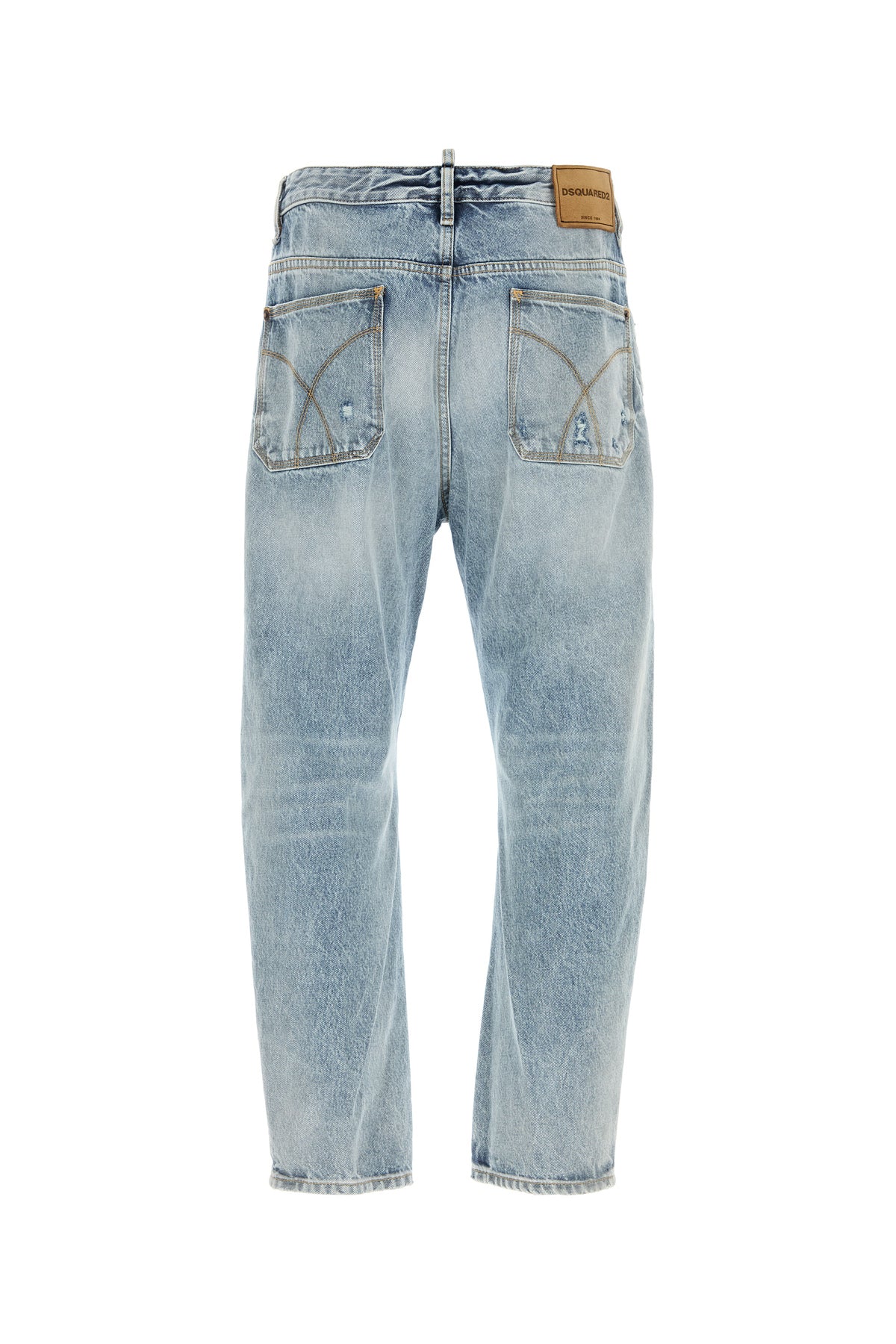 Jeans realized in stonewashed pure cotton denim enriched by logoed label at the back.