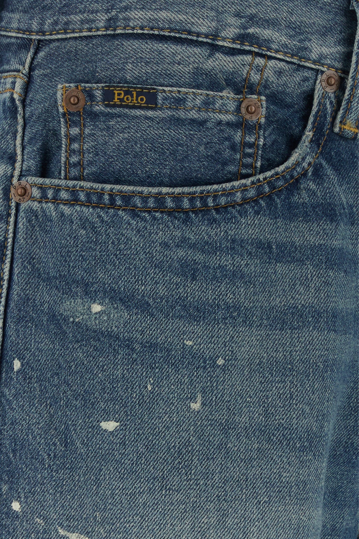 Shorts realized in stonewashed and slightly distressed pure cotton denim characterized by intentional dirties enriched by logoed label at the back.