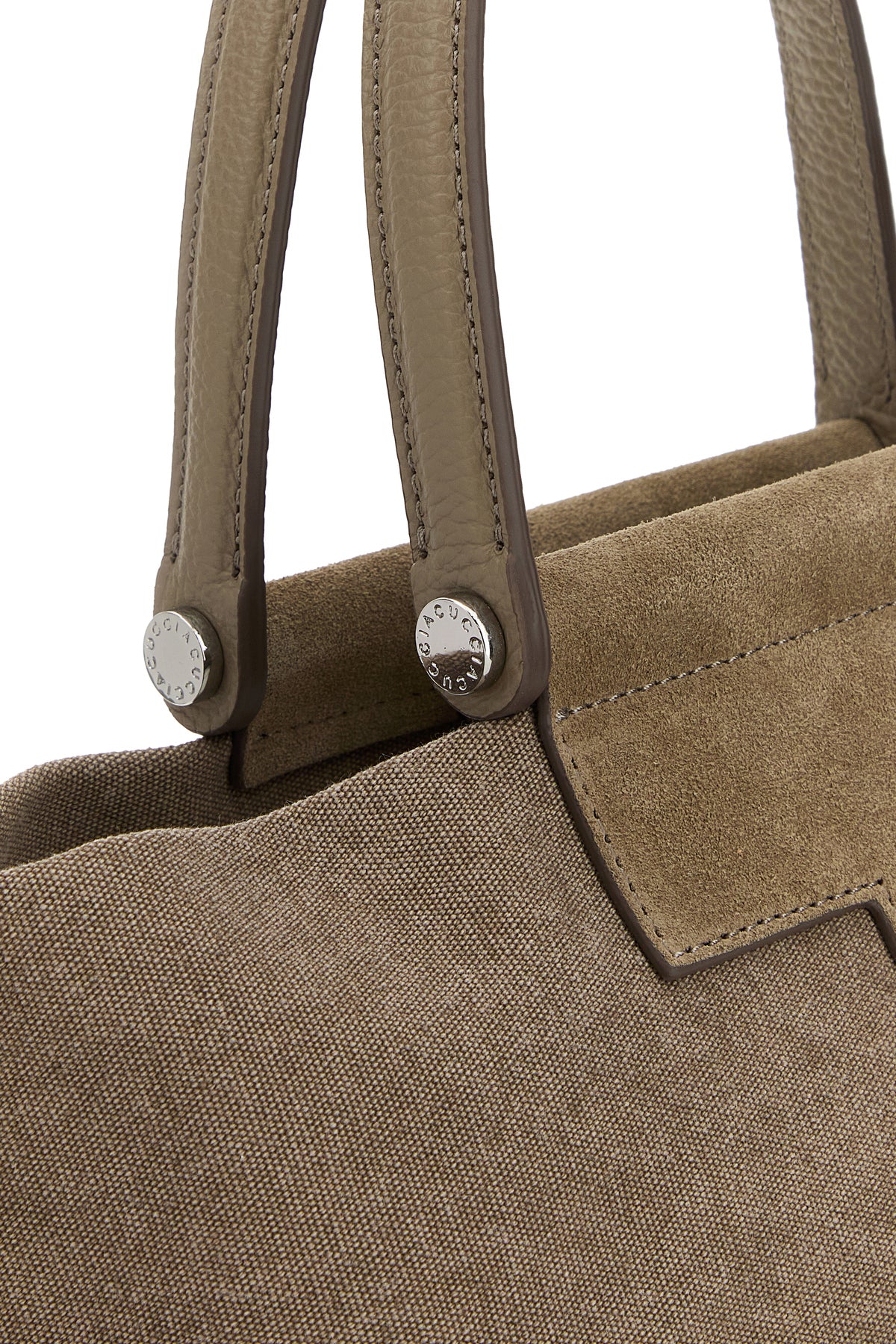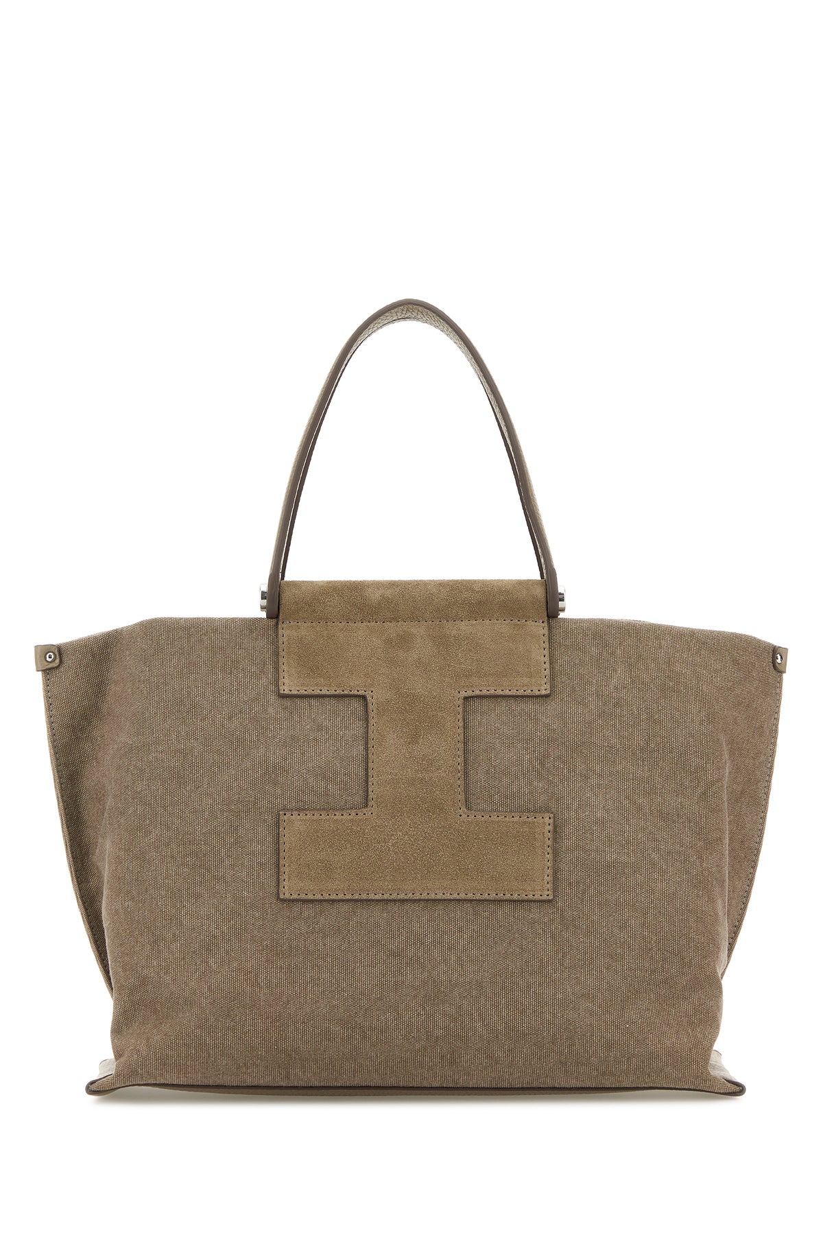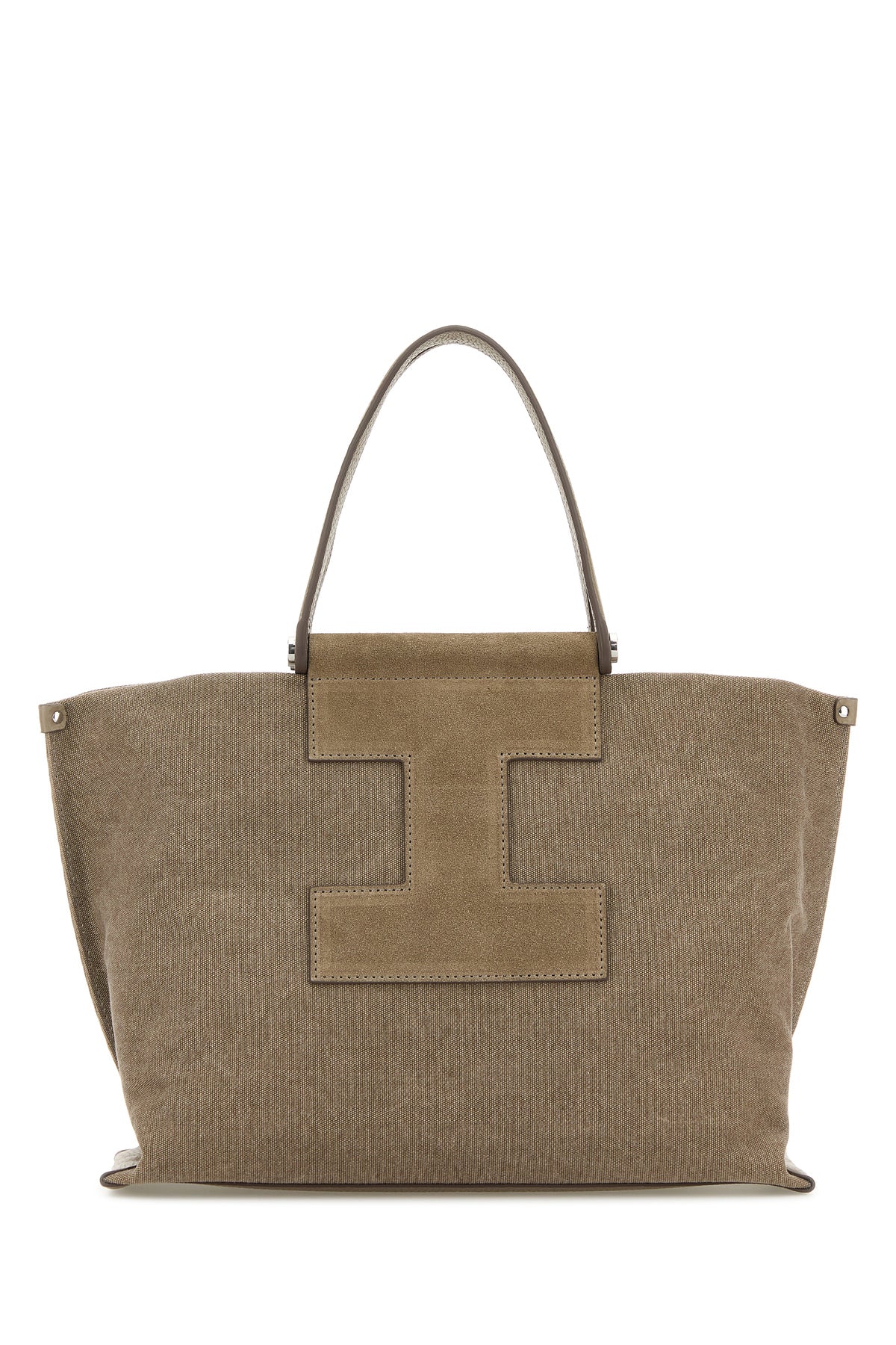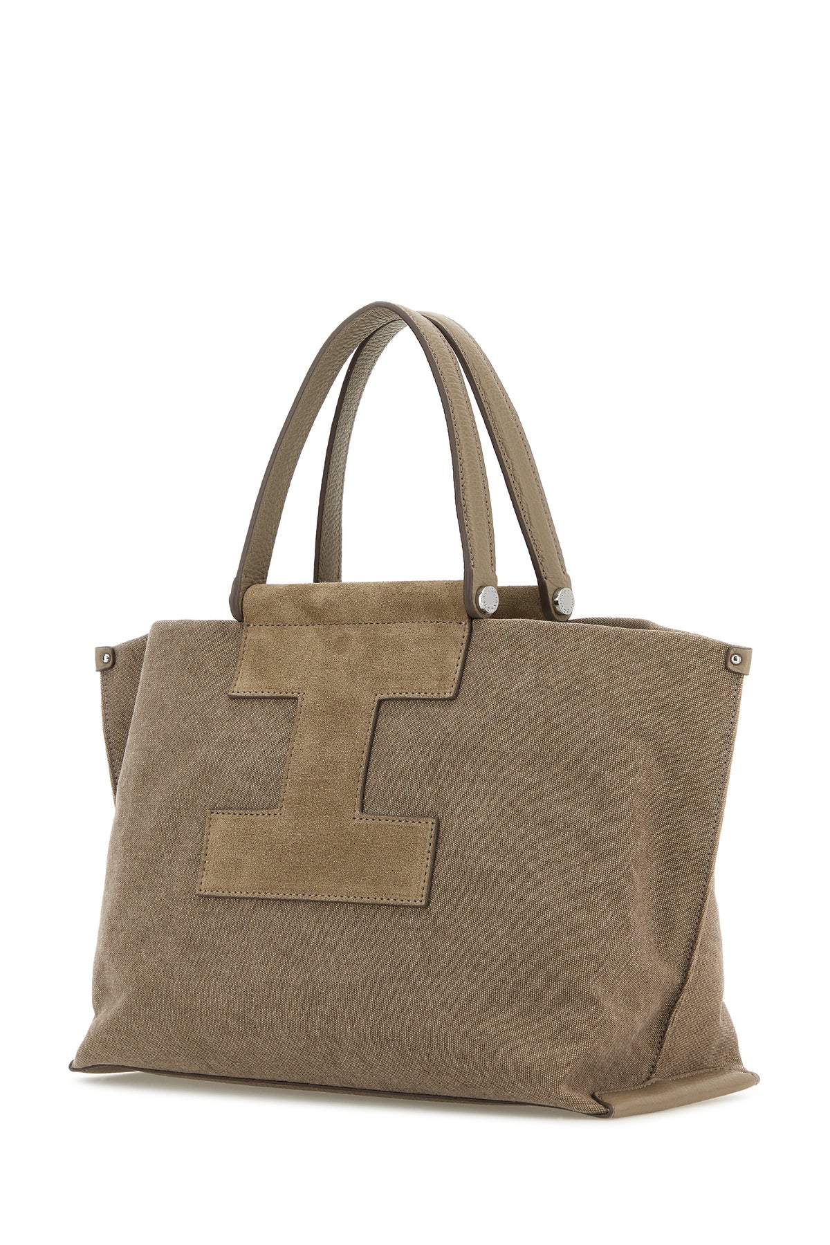 Handbag realized in canvas enriched by suede patch at the front and at the back.