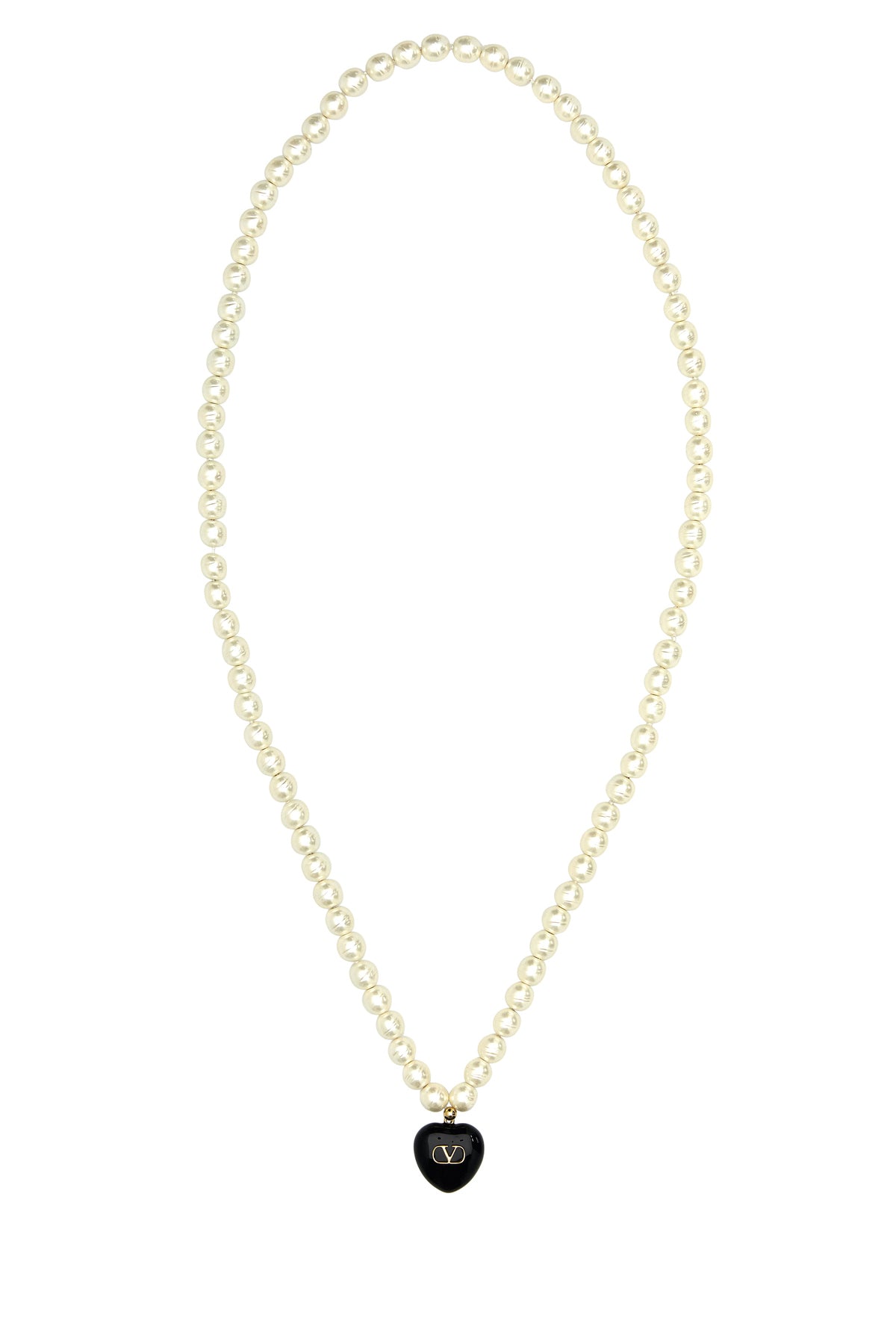 Necklace realized in pearls enriched by heart-shaped charm with metal VLogo detail.