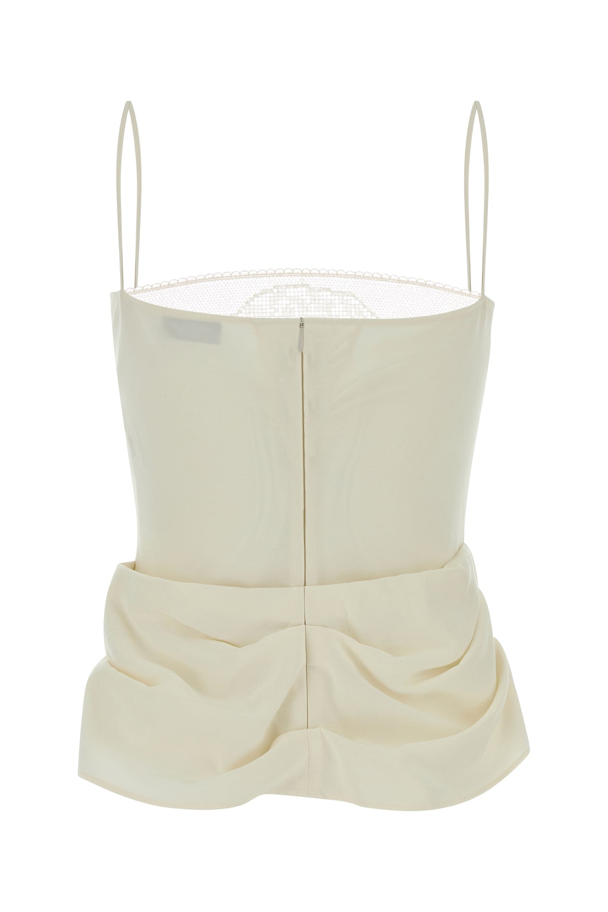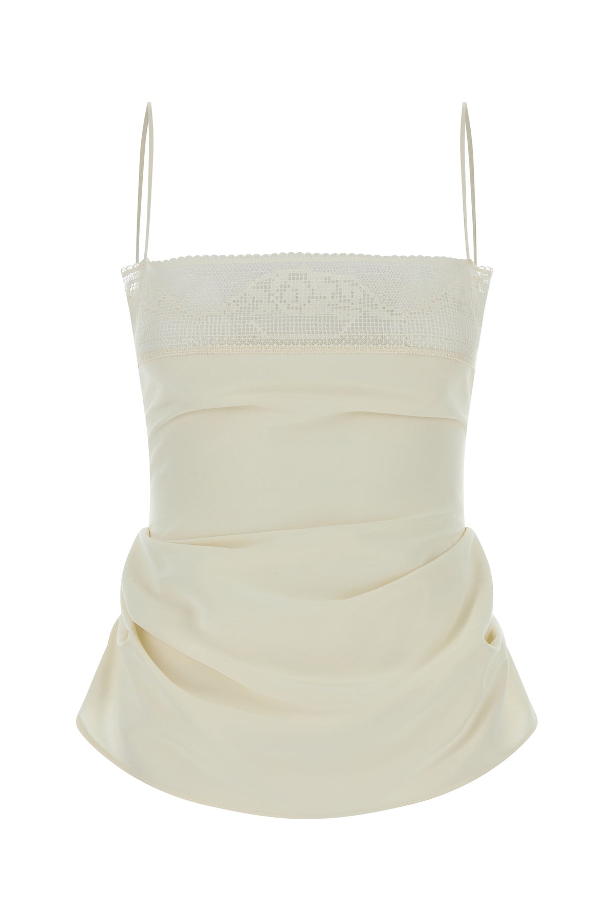 Tank top realized in pure silk with lace insert on the squared neckline.