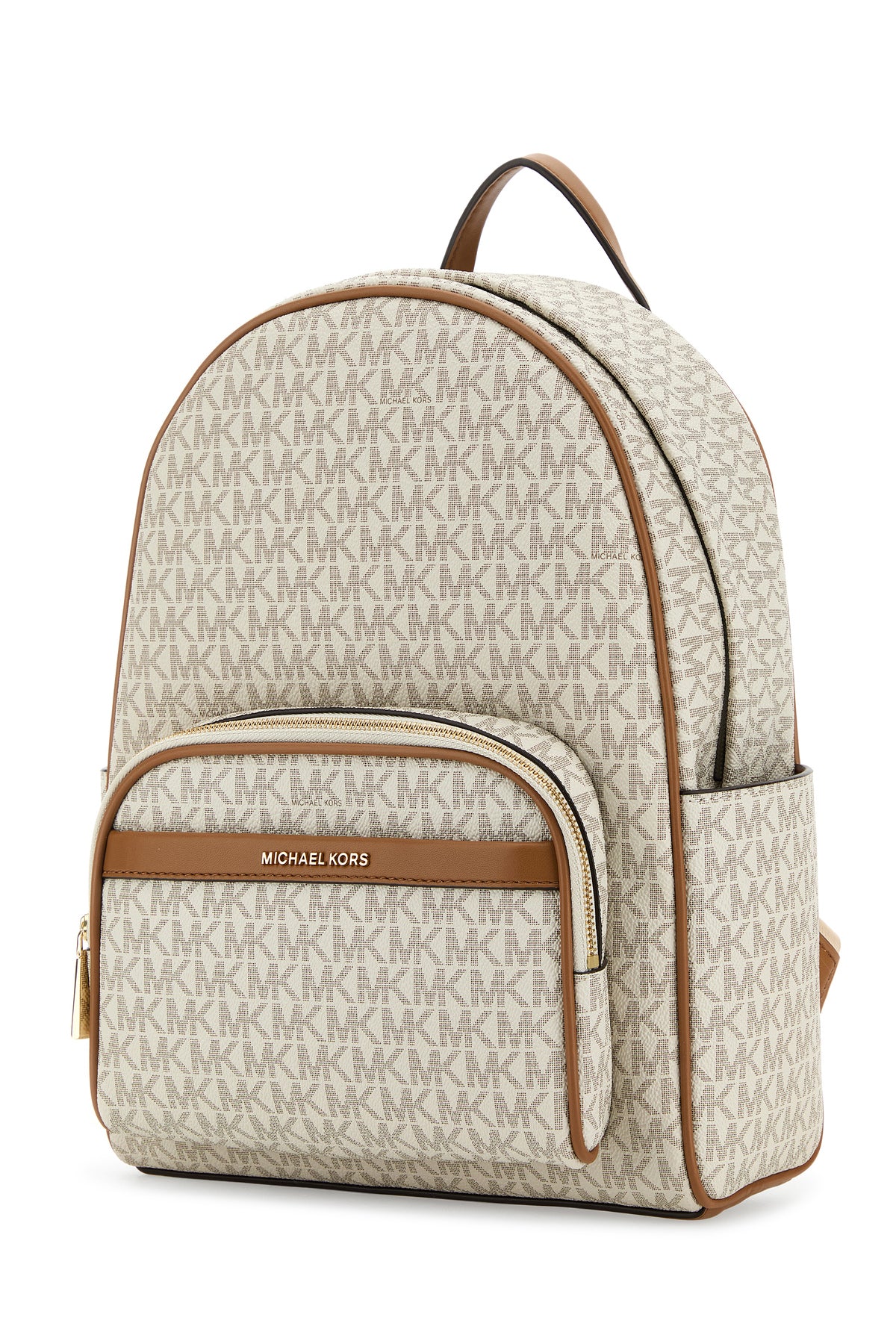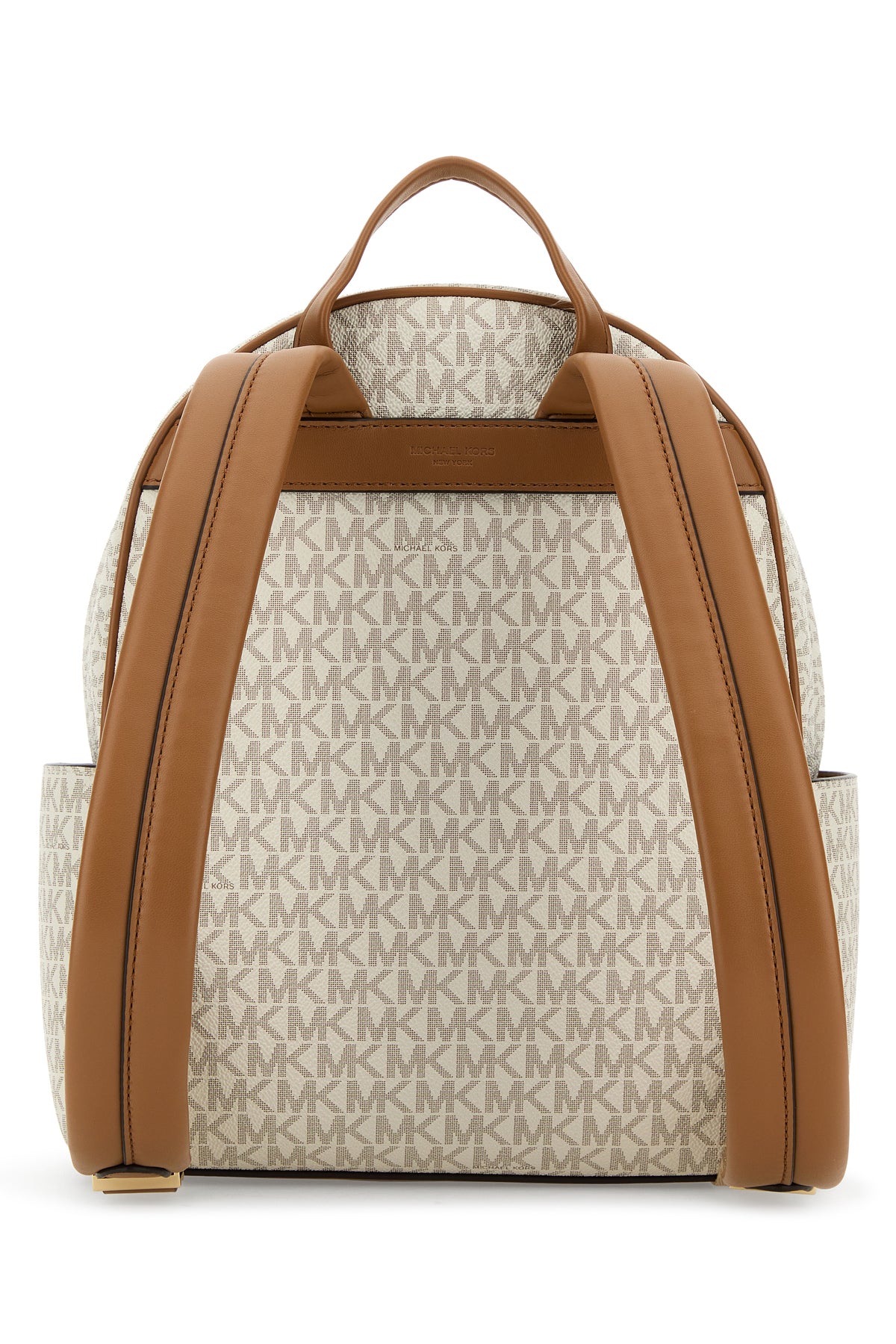 Backpack realized in coated canvas characterized by logoed print on the entire surface enriched by metal lettering logo at the front.