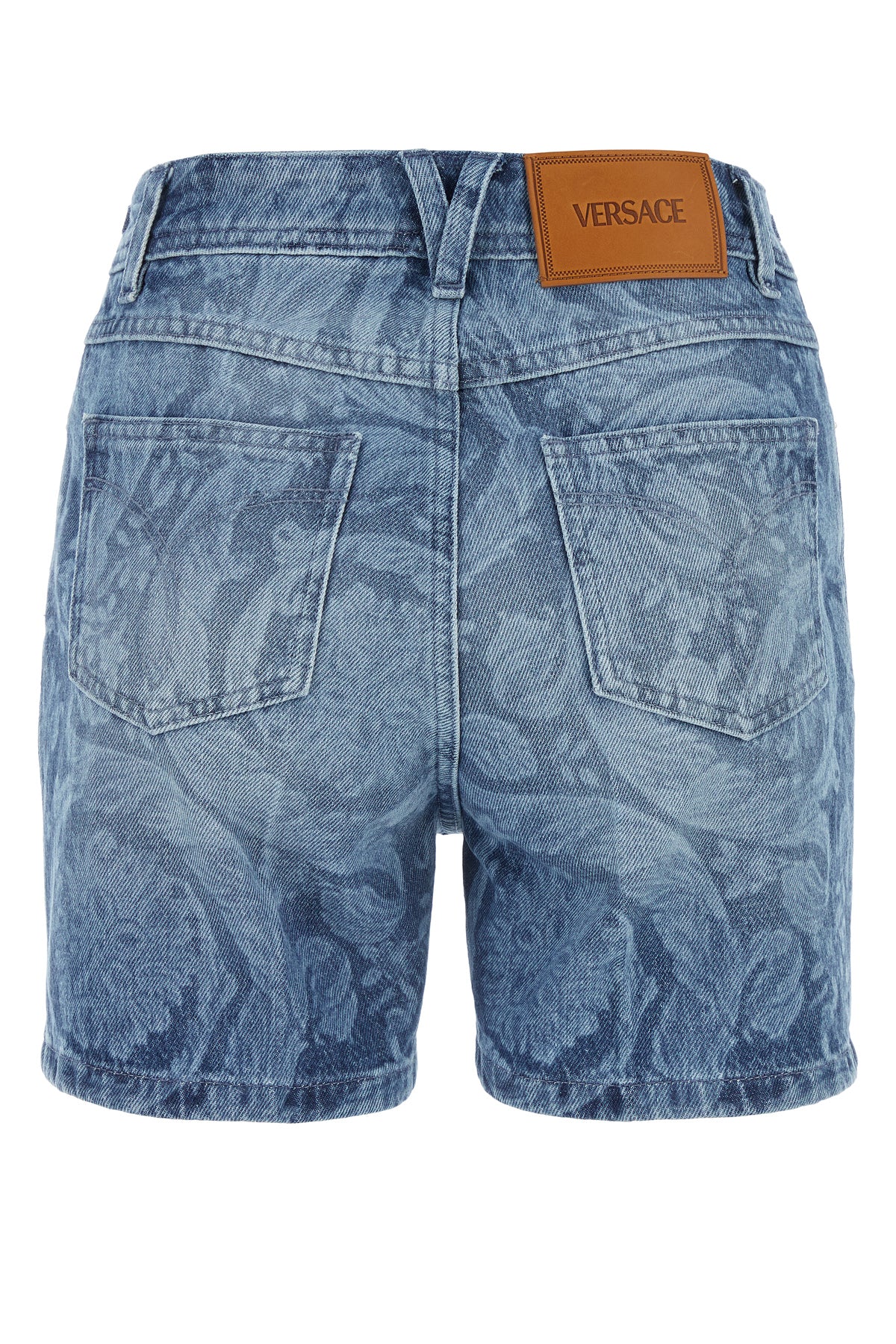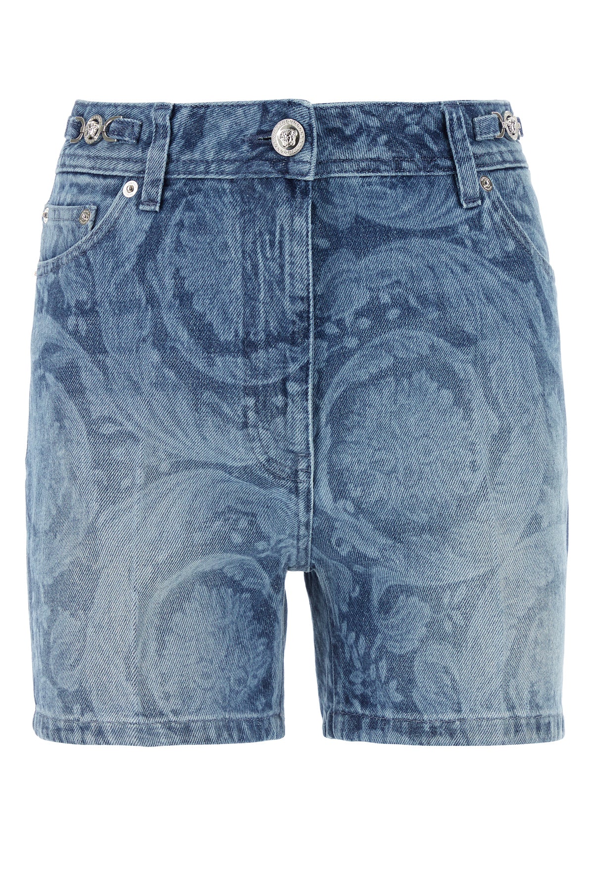 Shorts realized in pure cotton denim characterized by Barocco print on the entire surface enriched by metal Medusa Head on the sides and logoed label at the back.