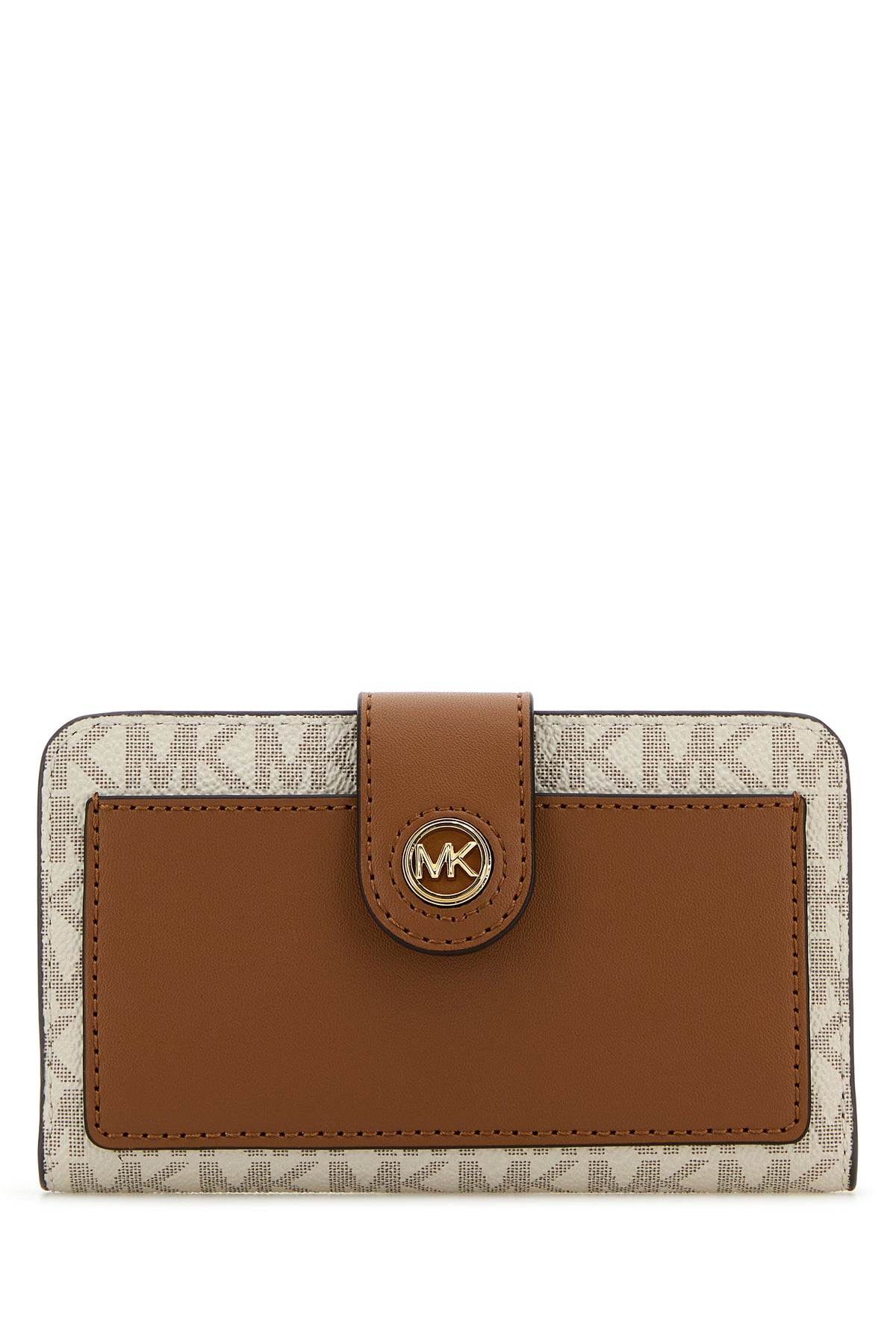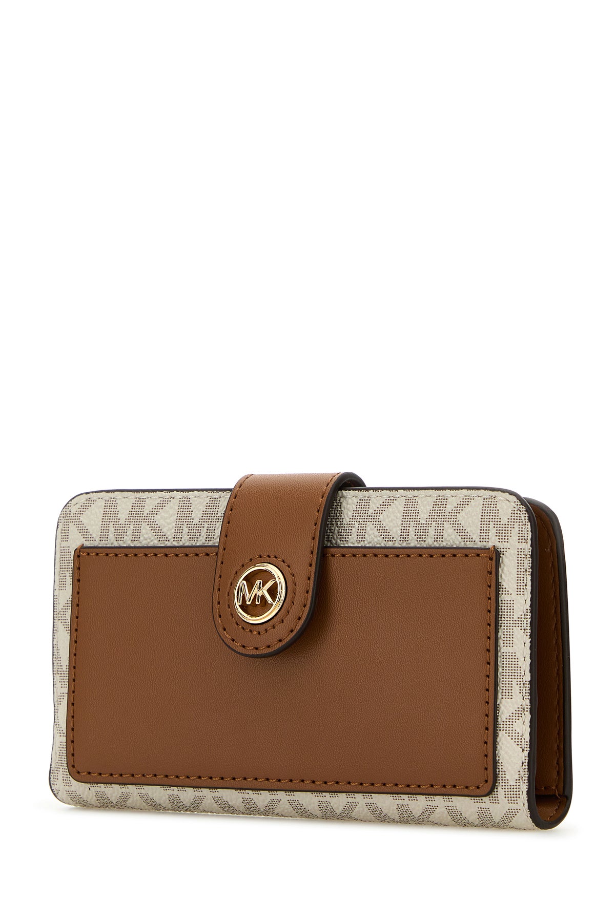 Wallet realized in grained leather with smooth leather insert at the front characterized by peculiar logoed print on the entire surface enriched by metal lettering logo at the front.
