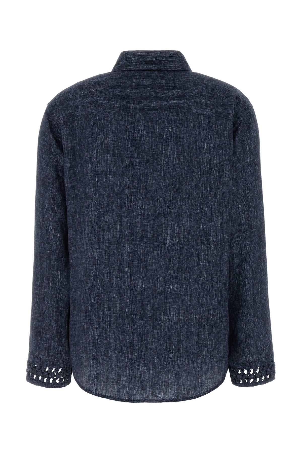 Shirt realized in denim-effect pure silk characterized by striped print on the entire surface enriched by woven detail on the cuffs.