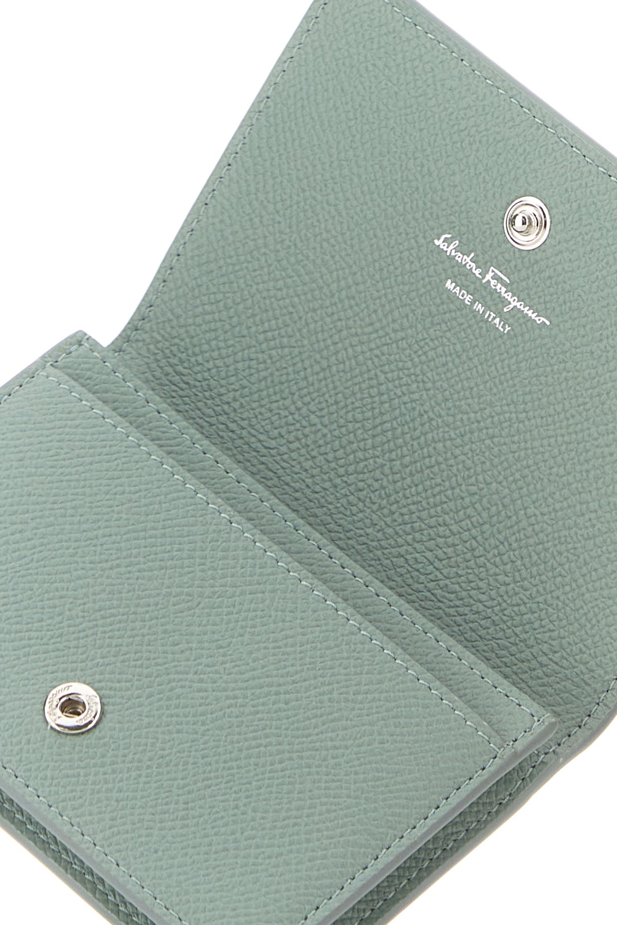 Wallet realized in grained leather enriched by Gancini metal detail at the front.
