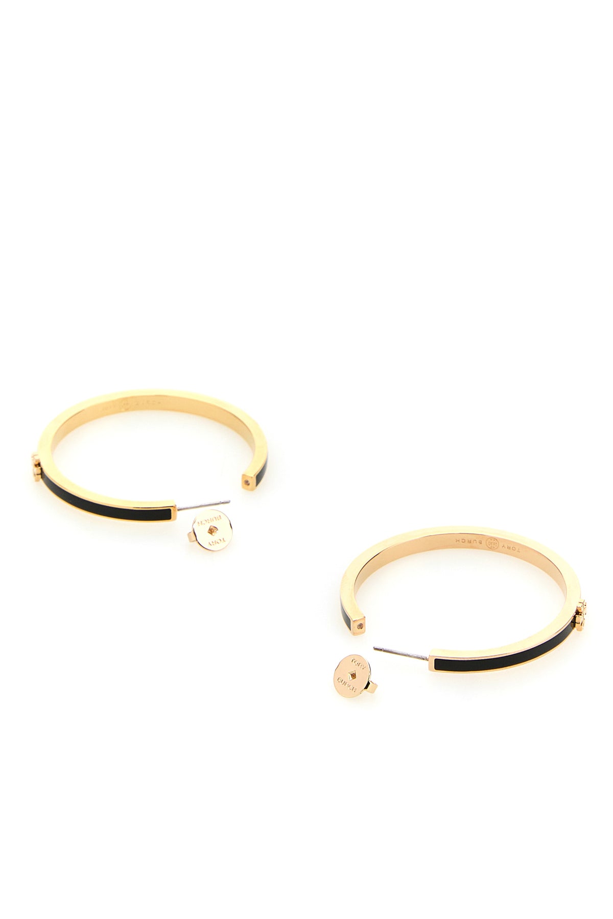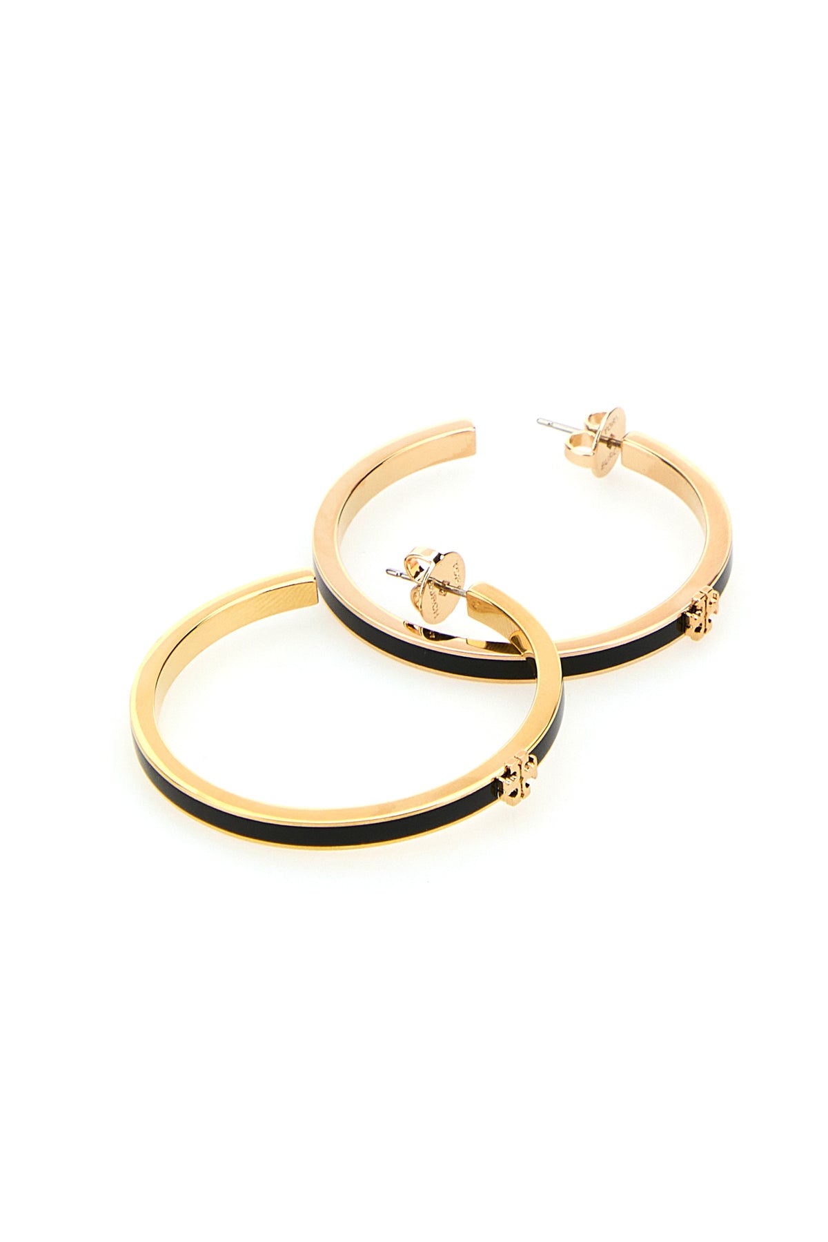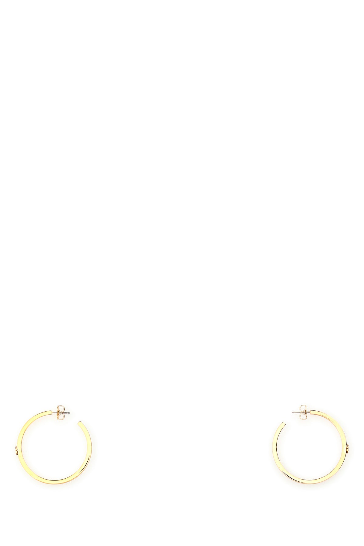 Hoop earrings realized in gold-tone plated metal enriched by metal logoed detail at the front.