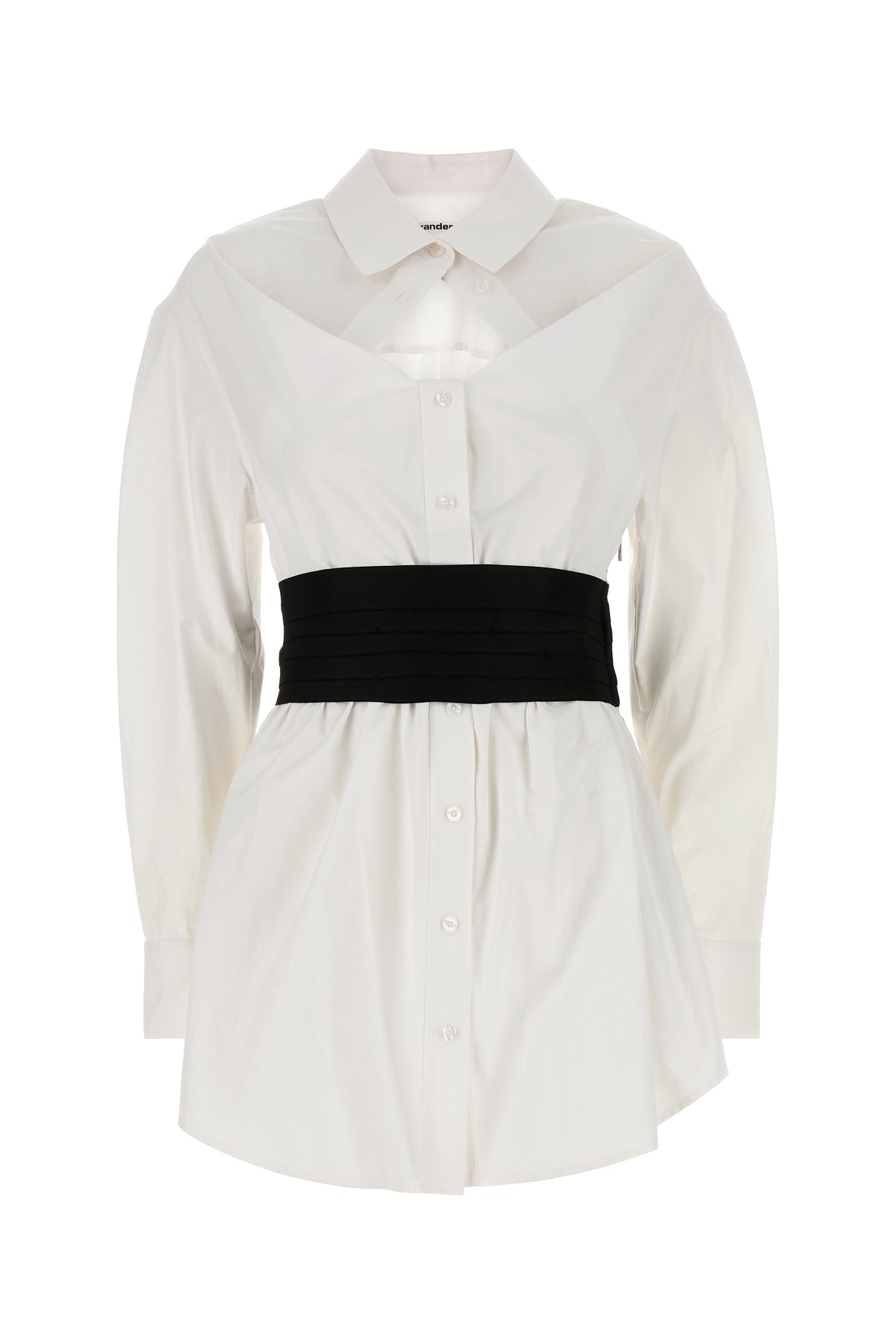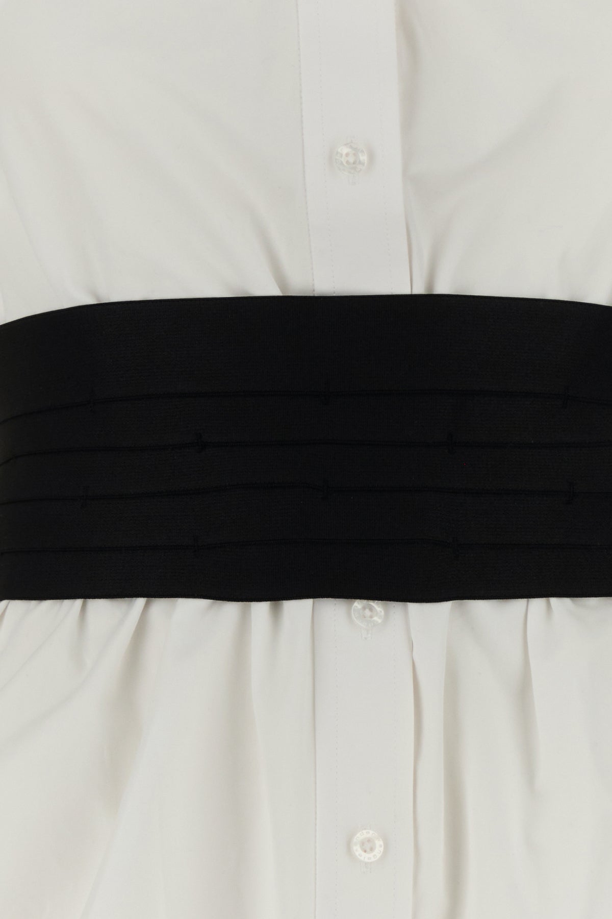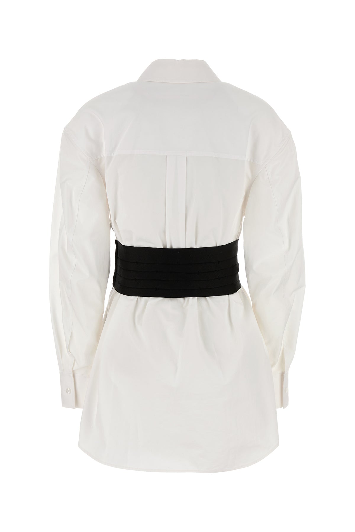 Shirt dress realized in pure cotton poplin enriched by contrasting band at the waist.