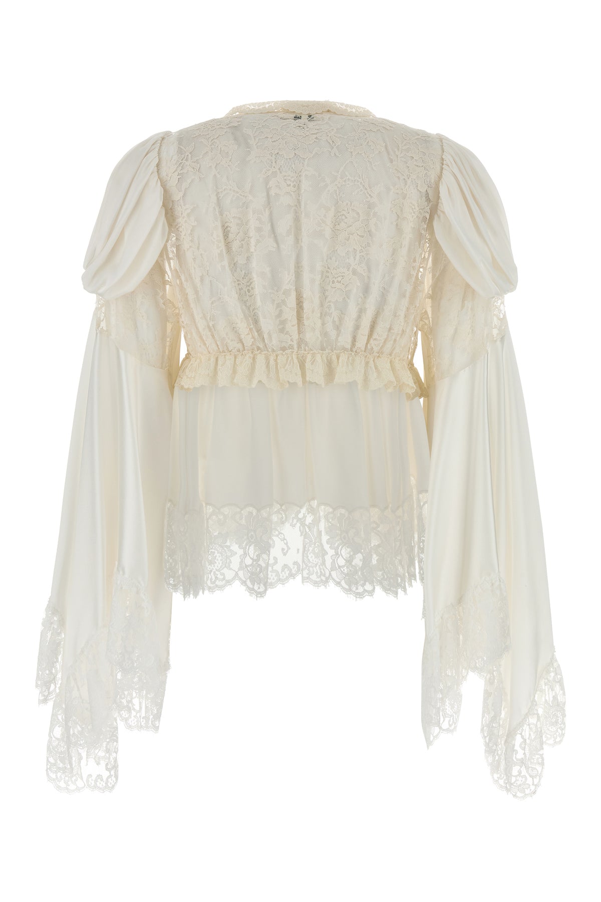 Blouse realized in pure silk satin with tonal lace inserts.