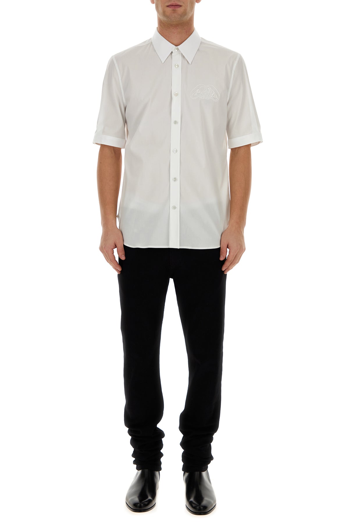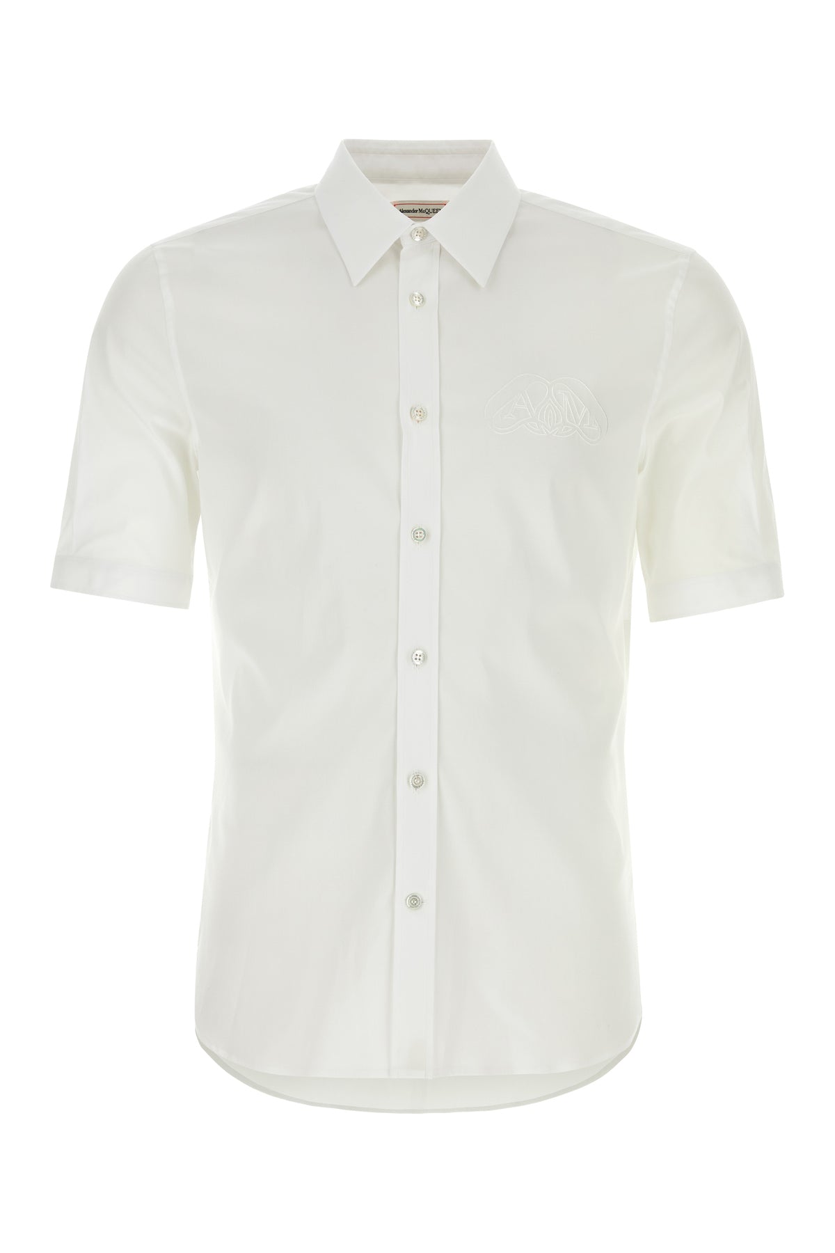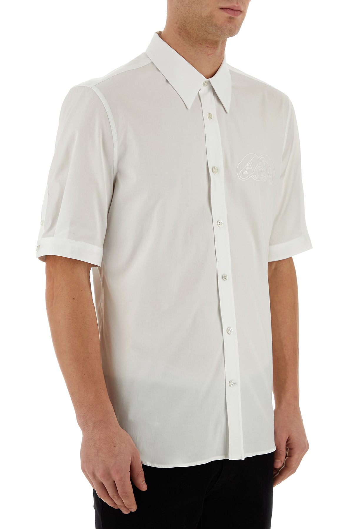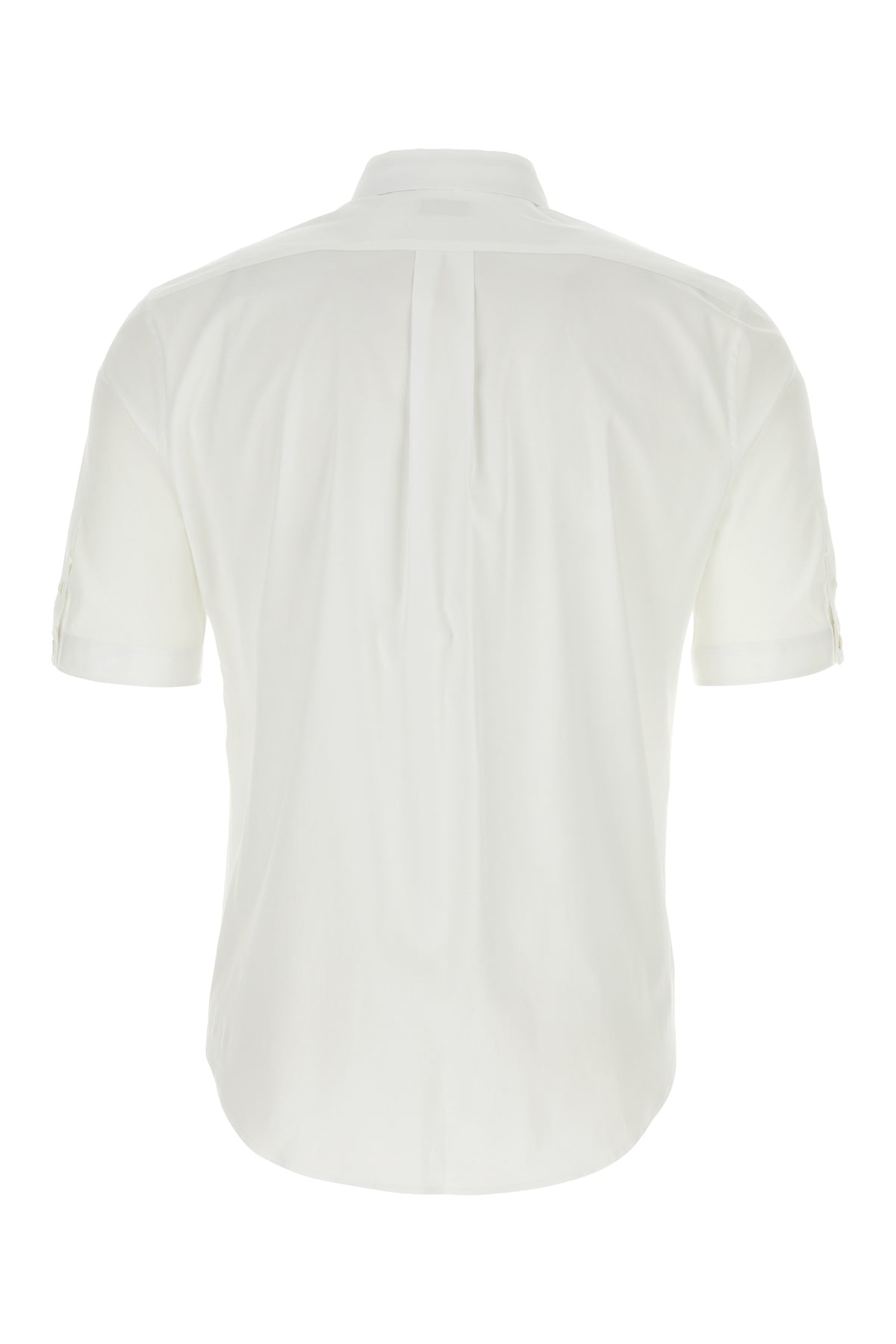 Short-sleeves shirt realized in stretch cotton poplin characterized by tonal Logo Seal embroidery on the chest.
