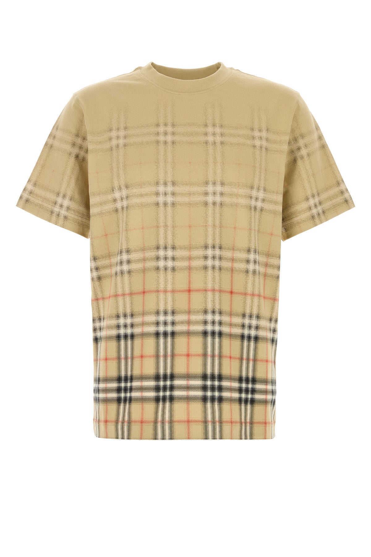 T-shirt realized in pure cotton characterized by shaded effect Burberry Check embroidery on the hemline.