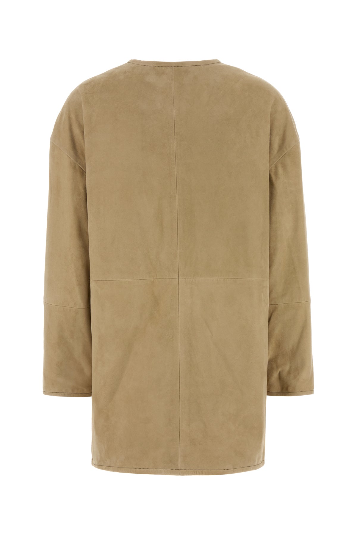 Jacket realized in lamb suede characterized by crew-neck.