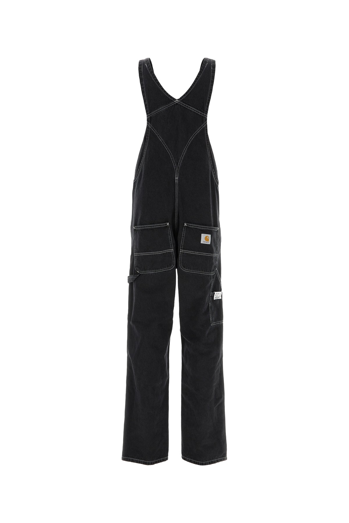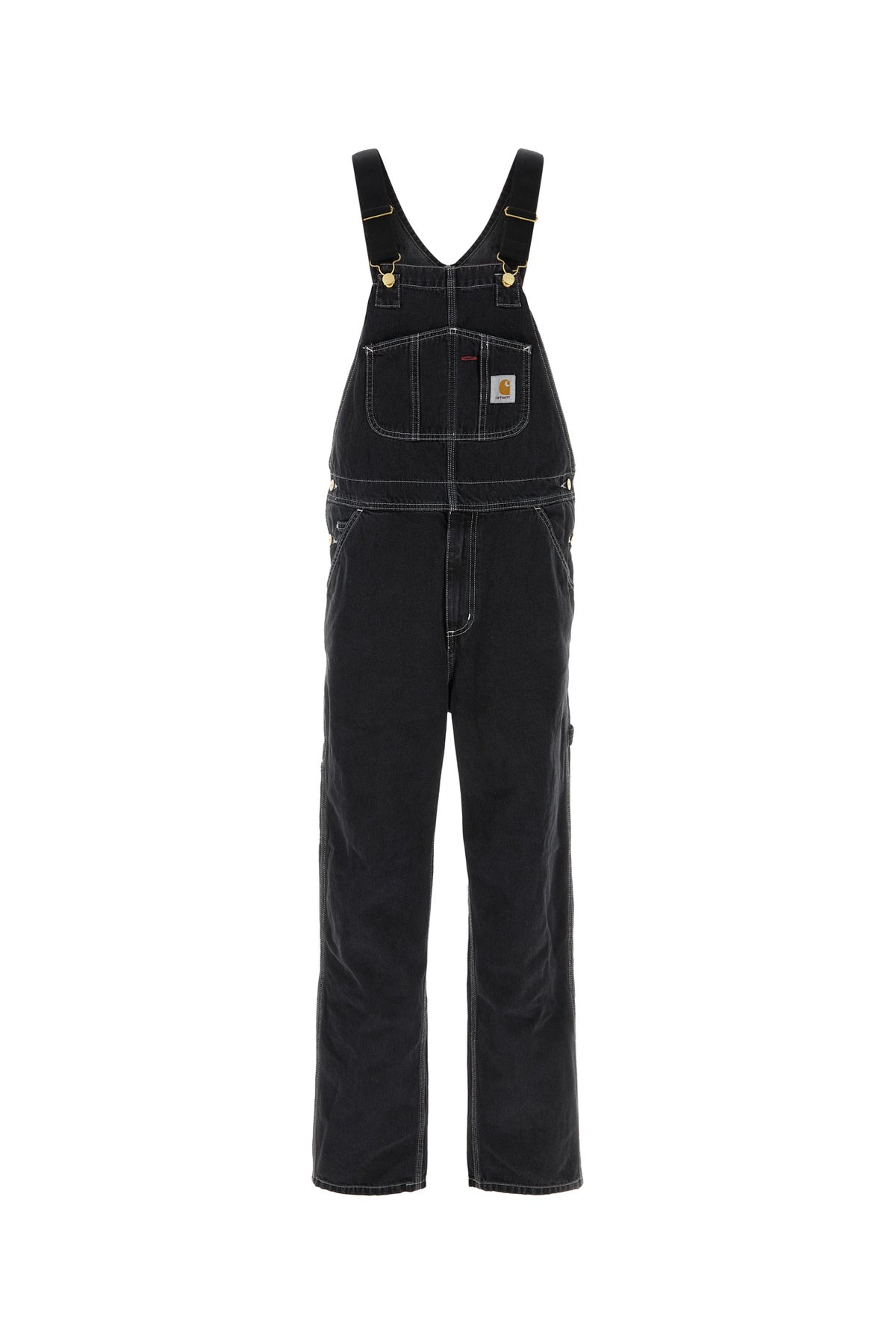 Dungarees realized in pure cotton denim enriched by contrasting logoed label on the chest and at the back.