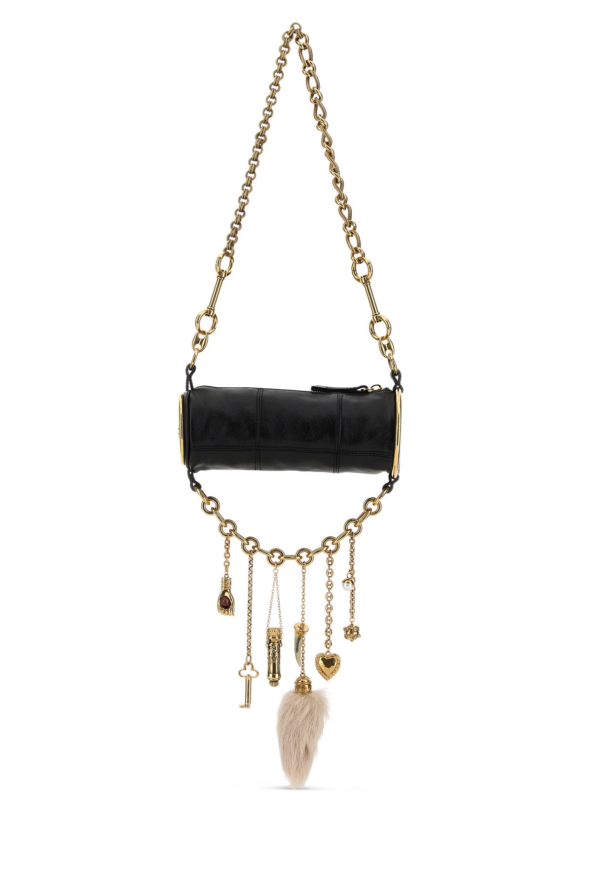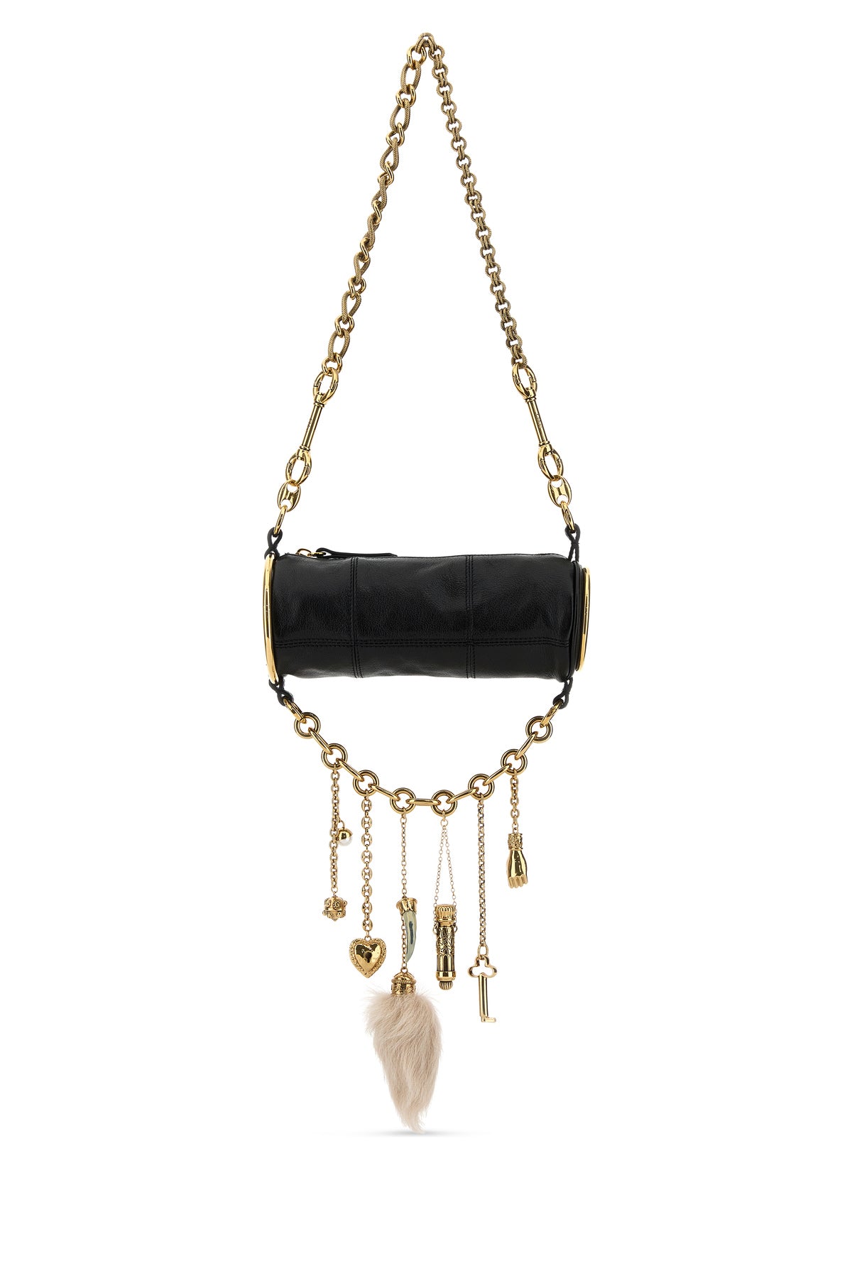 Shoulder bag realized in bovine leather enriched by Horse Gold metal detail on the sides and metal chain with charms on the hemline.
