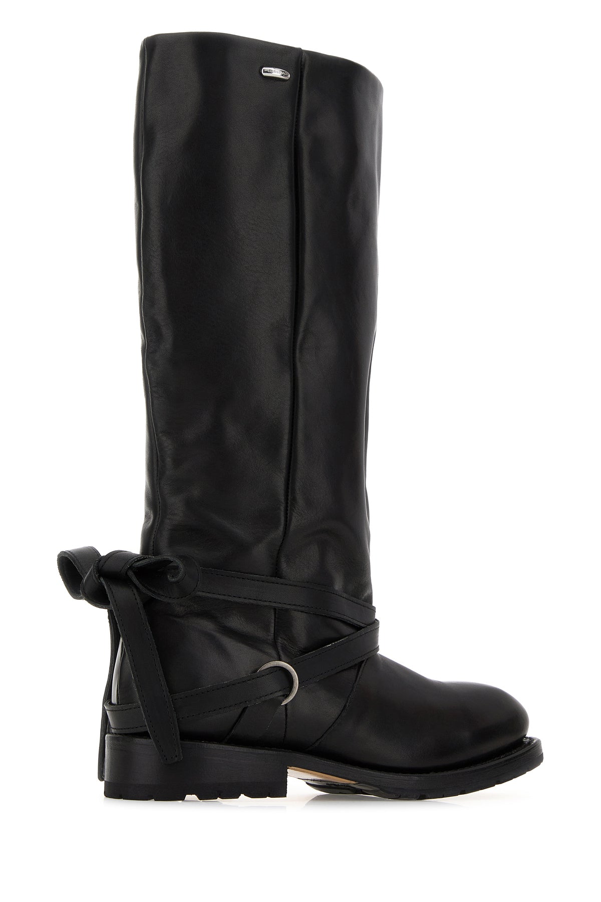 Boots realized in smooth leather enriched by decorative bow at the back and metal logoed detail on the side.