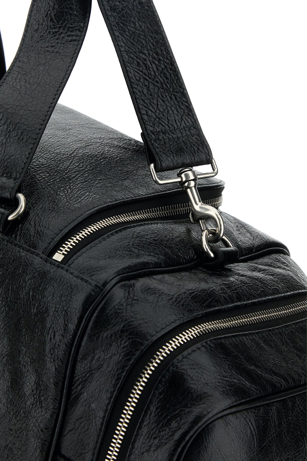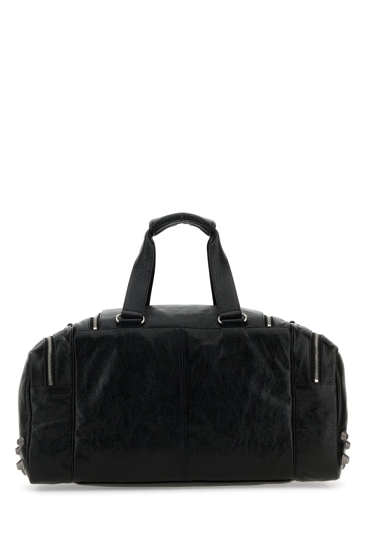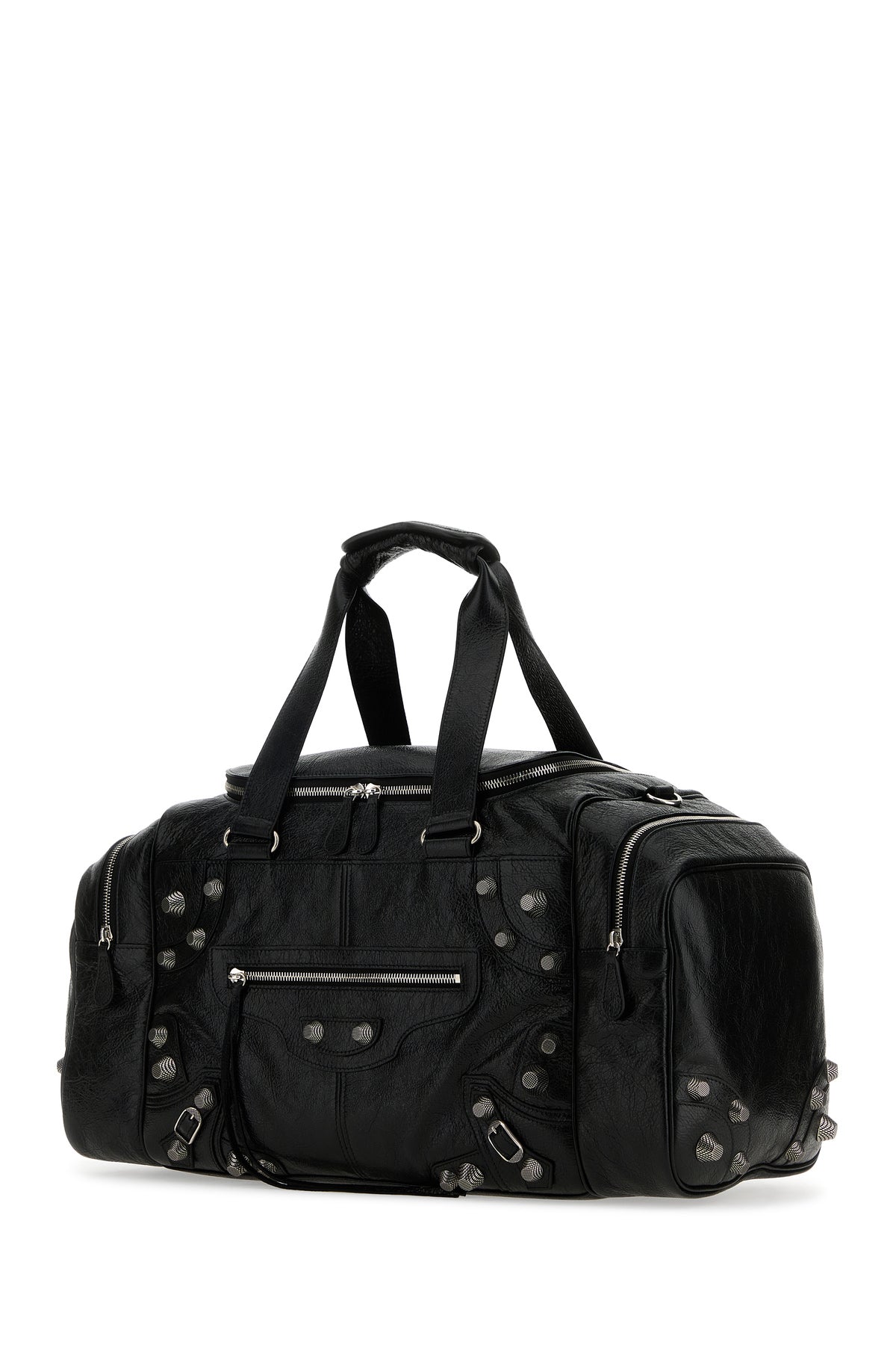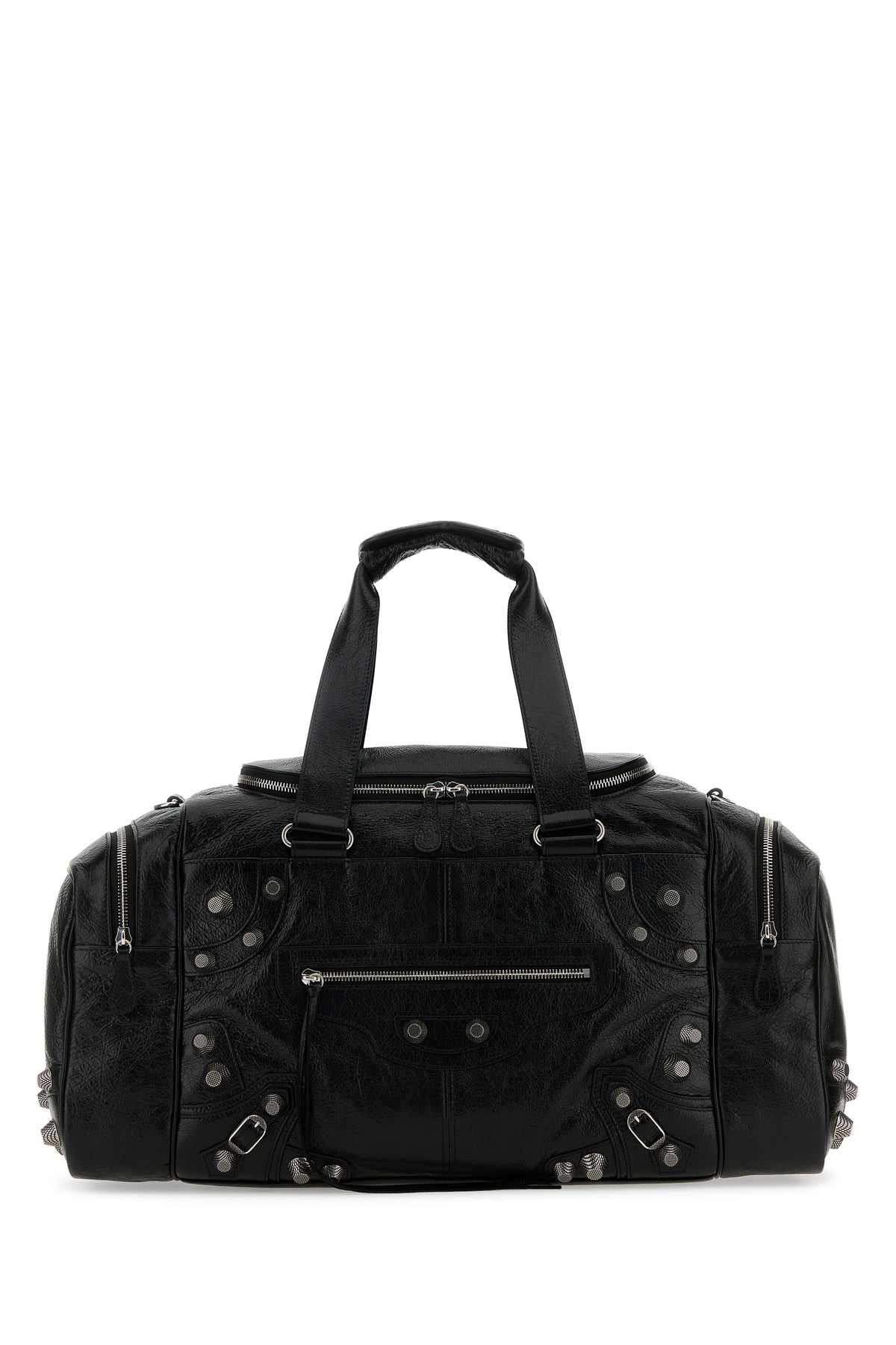 Travel bag realized in Arena lamb nappa leather enriched by metal studs at the front and on the sides.