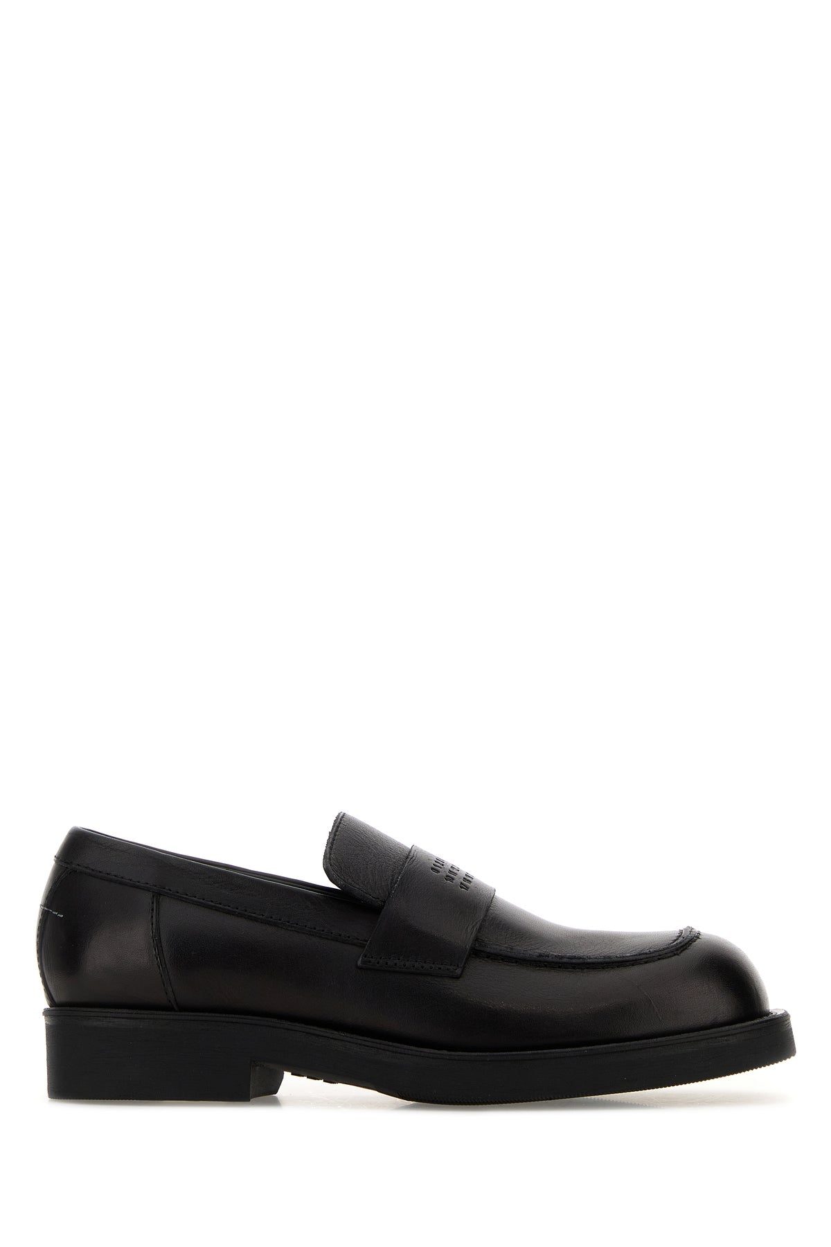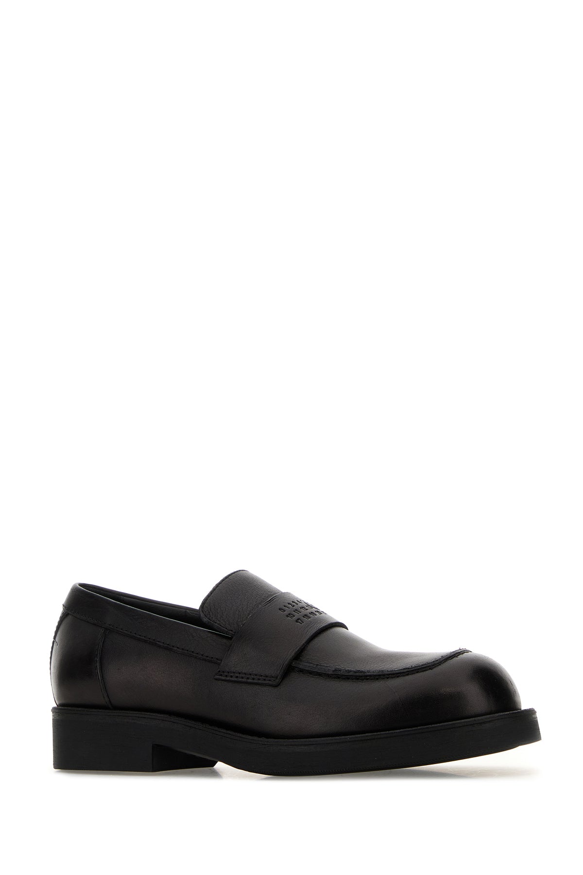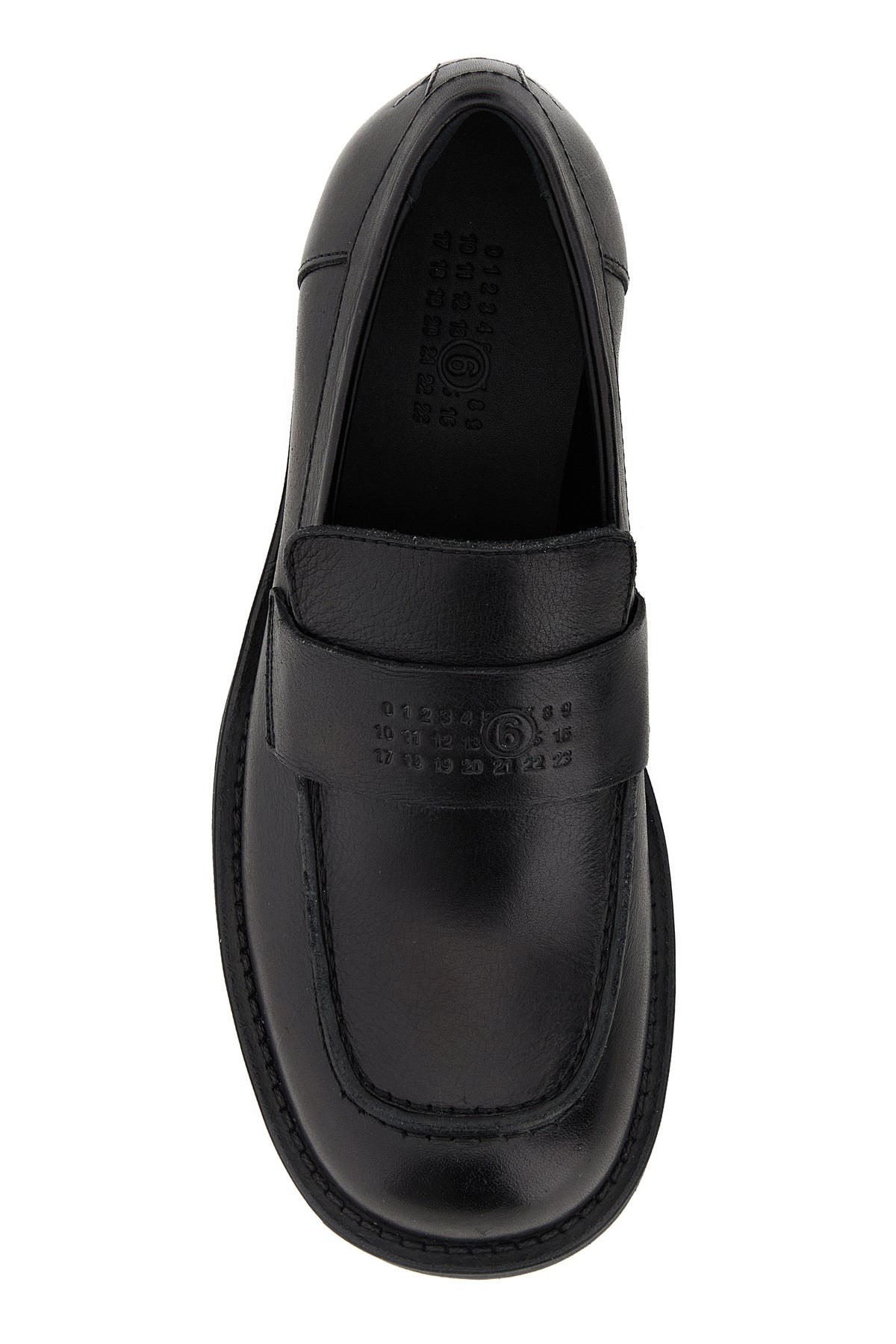 Loafers realized in pebble leather characterized by embossed logo on the vamp.