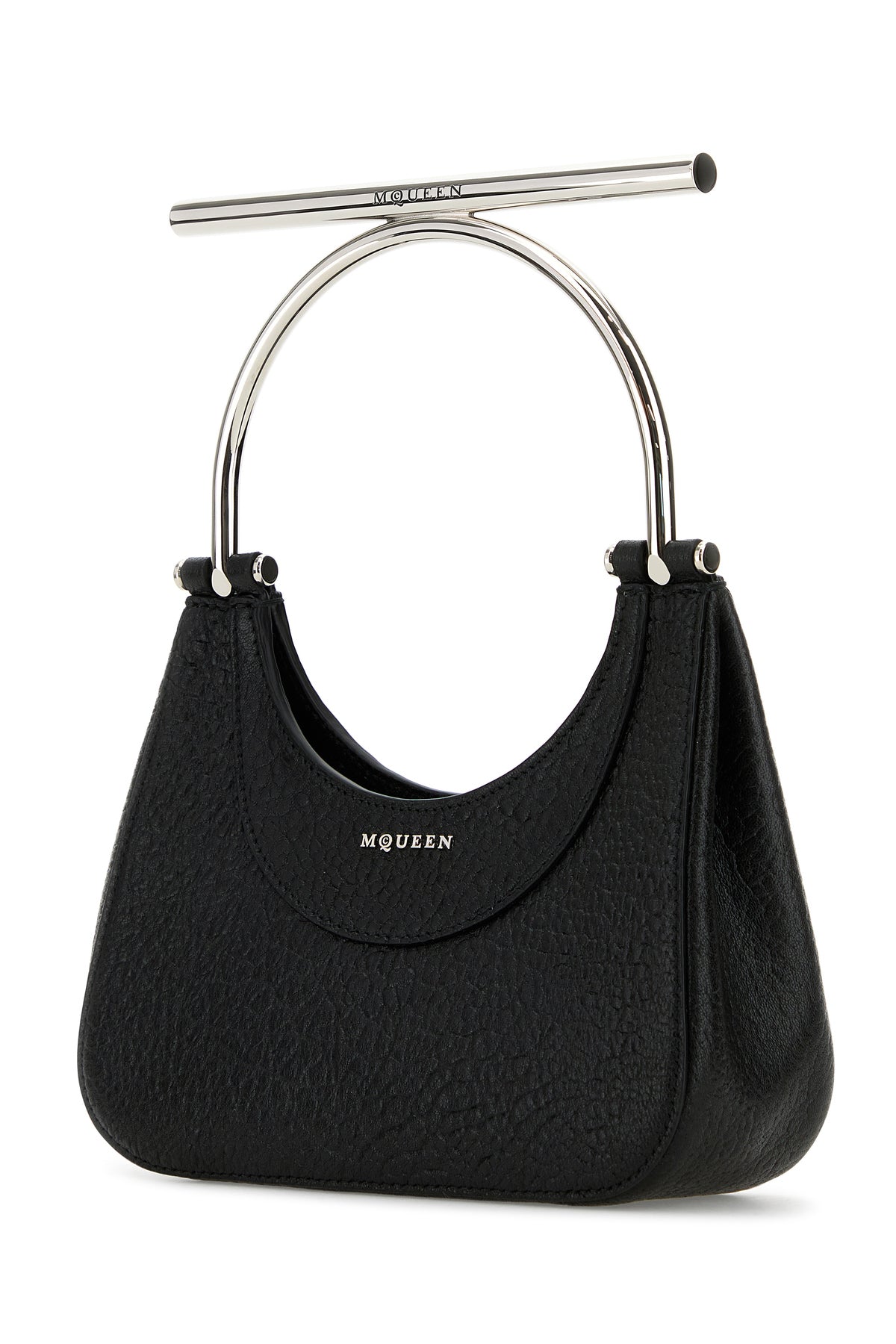 Handbag realized in pebble lamb leather enriched by metal lettering logo at the front.