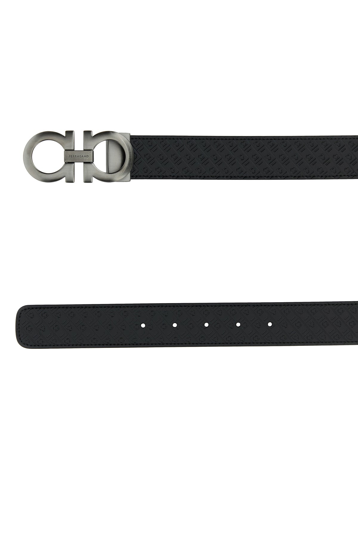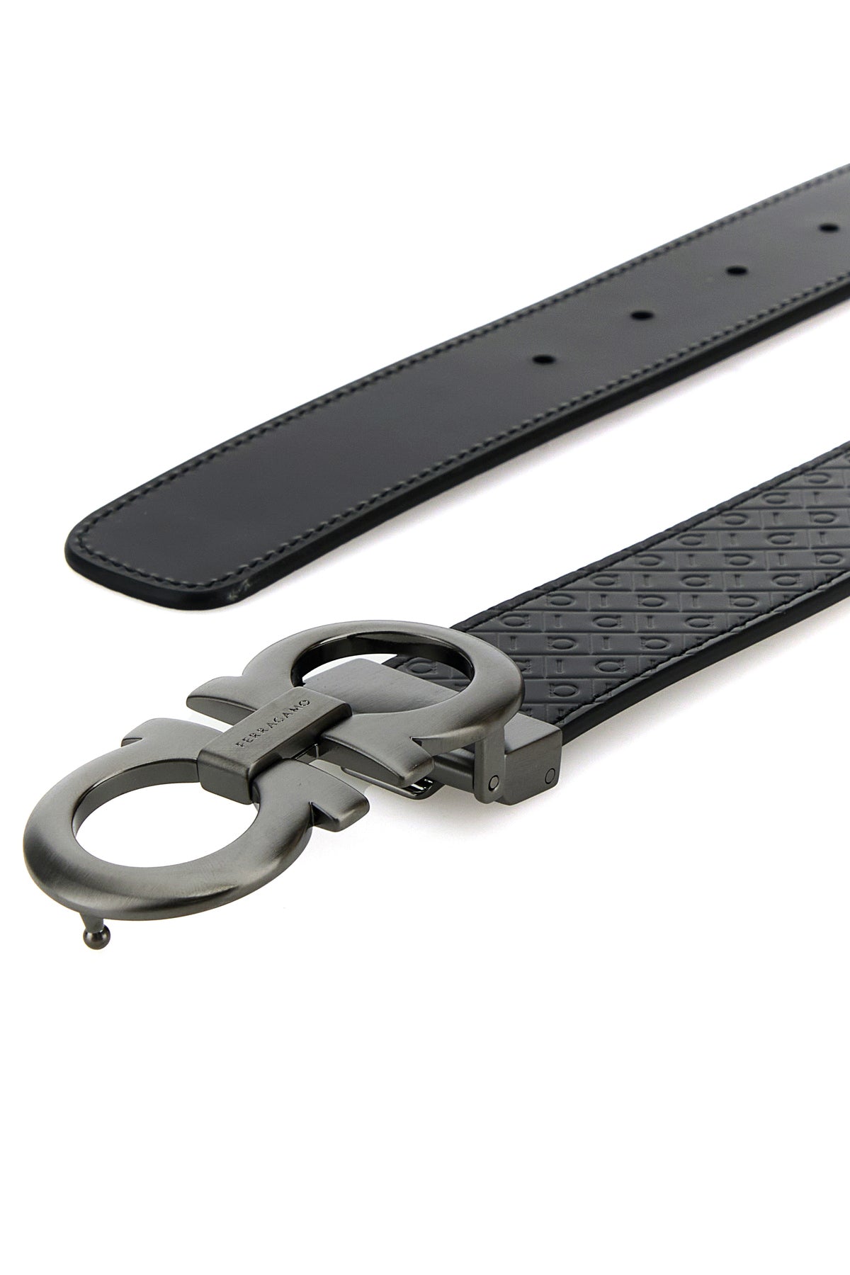 Reversible belt realized in smooth leather characterized by Gancini metal buckle.