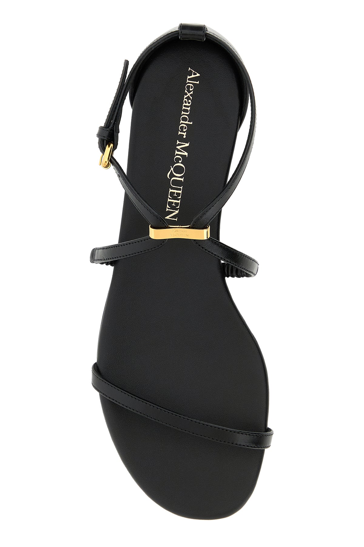 Sandals realized in smooth leather enriched by metal logoed detail on the instep.