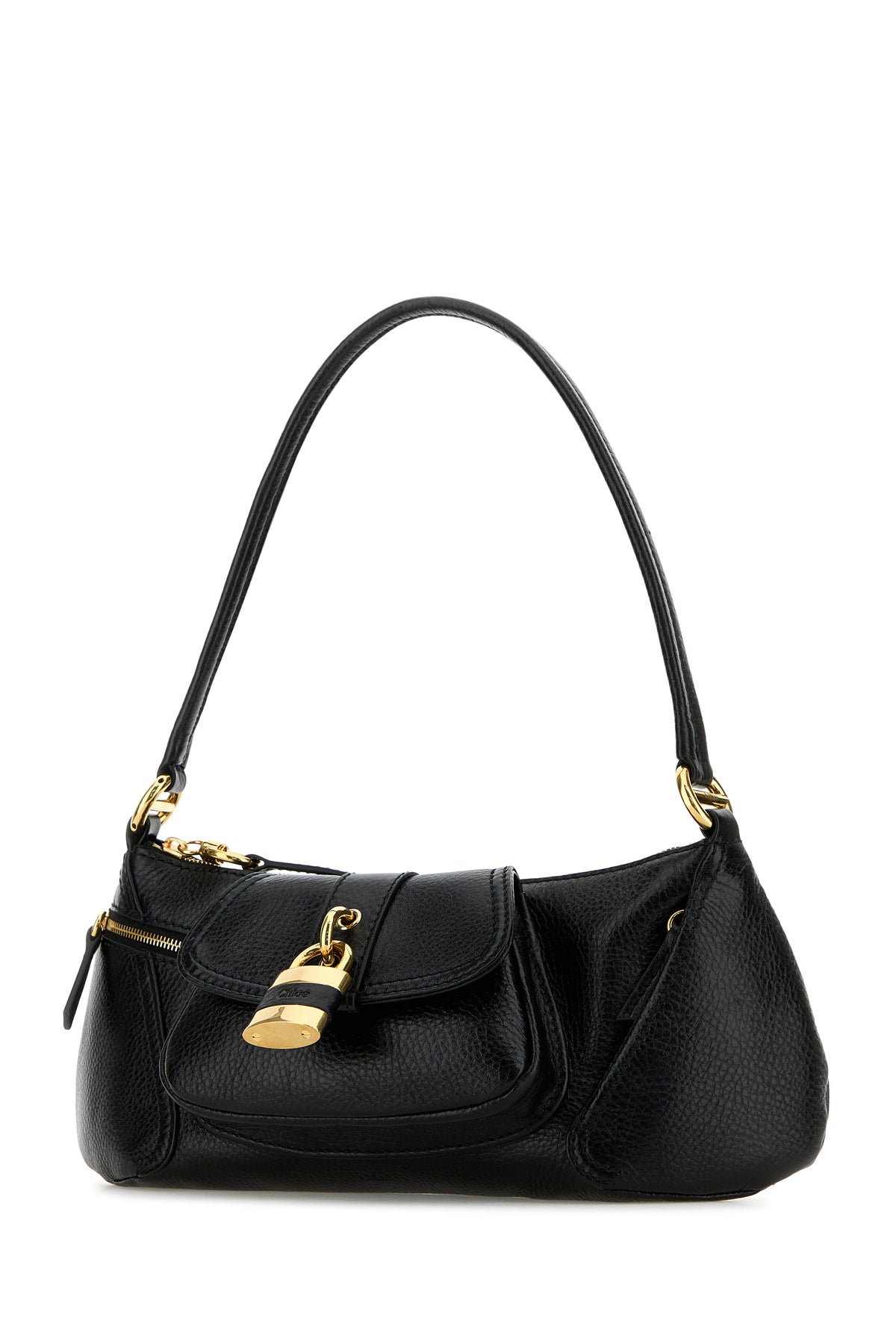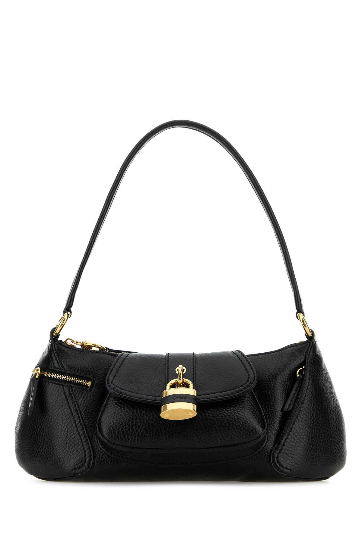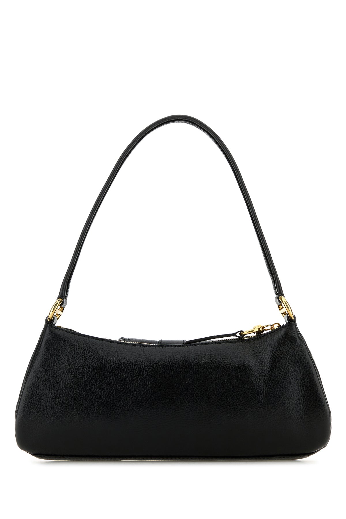 Shoulder bag realized in pebble calf leather characterized by embossed logo at the front enriched by decorative metal detail at the front.