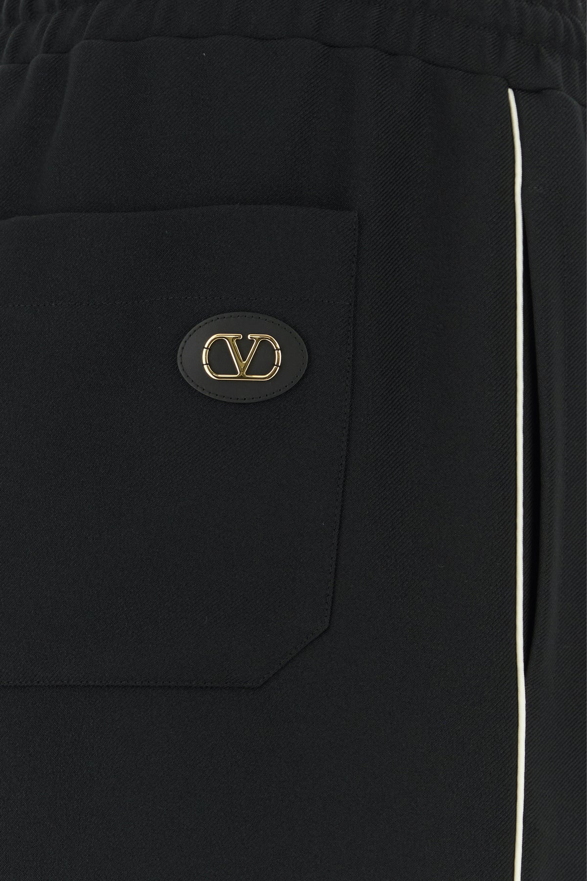 Pant realized in polyester enriched by contrasting bands on the sides and metal VLogo detail at the back.